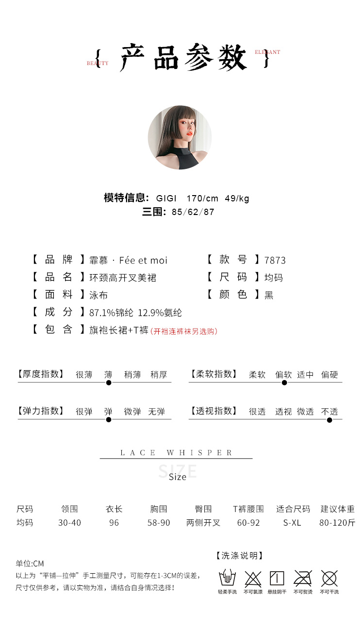 【孤身纵马,刺破云霞】情趣内衣 女式 制服 冰丝泳布 镂空 高腰 开叉 性感 旗袍 型号 7873