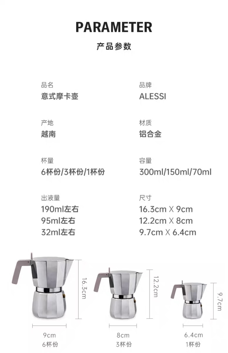 意大利Alessi摩卡壶单阀意式浓缩萃取壶户外煮咖啡壶手冲器具