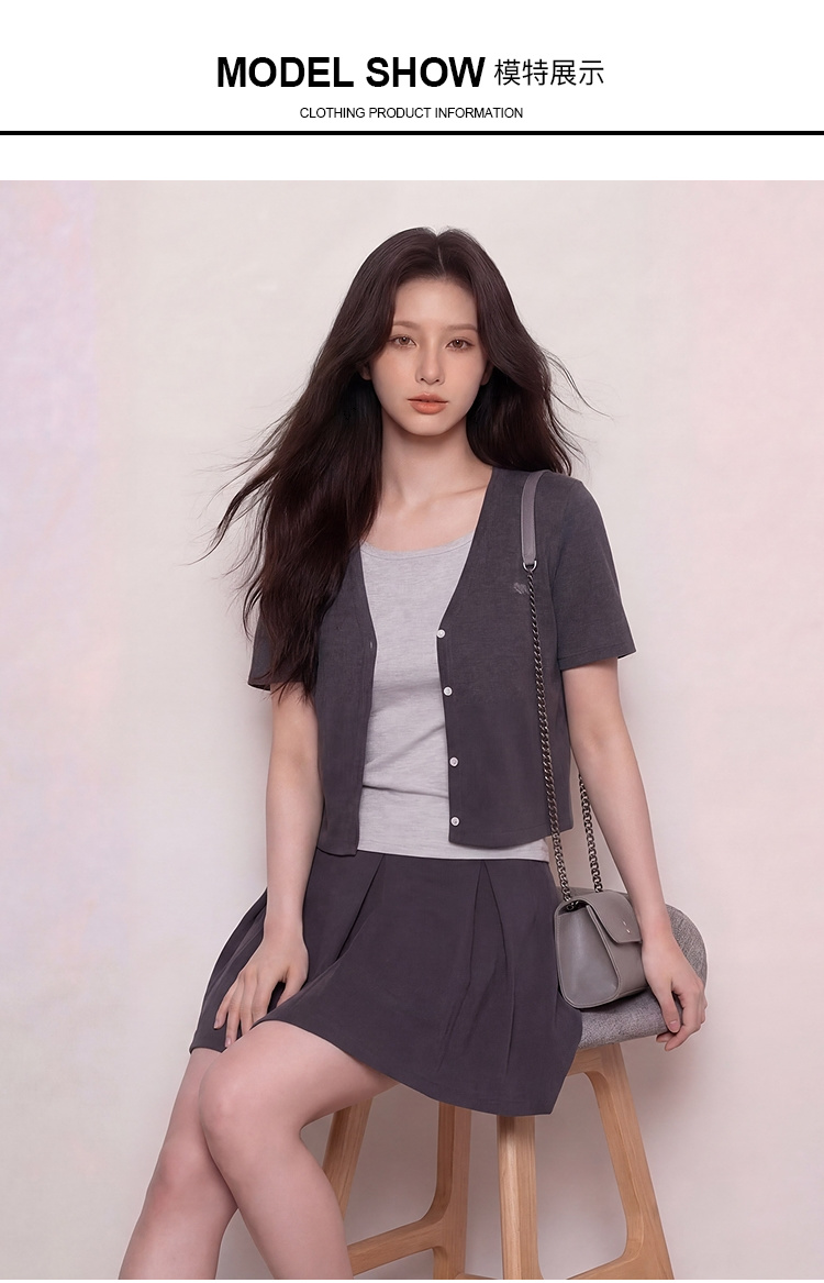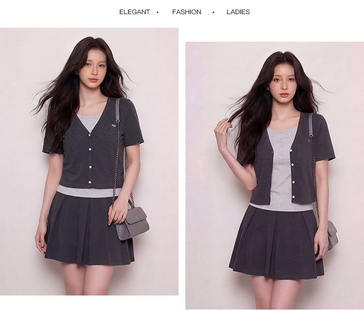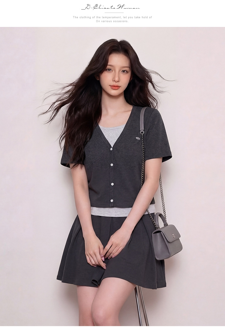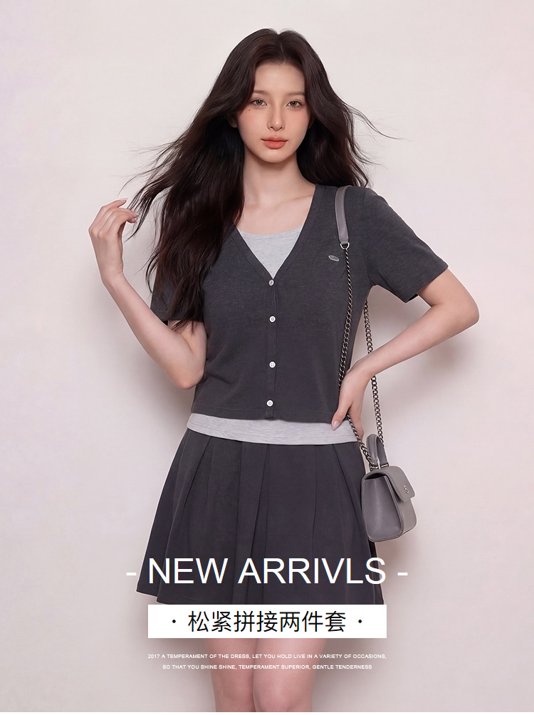奢姿大码女装2026夏季拼接V领两件套胖妹妹松紧腰时尚休闲套装9962954668