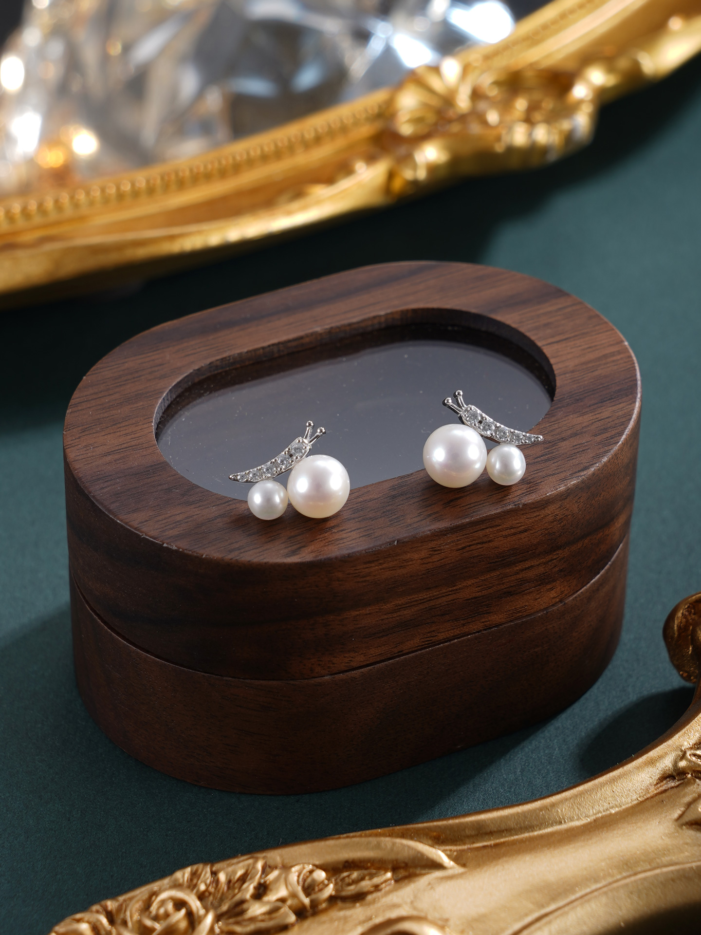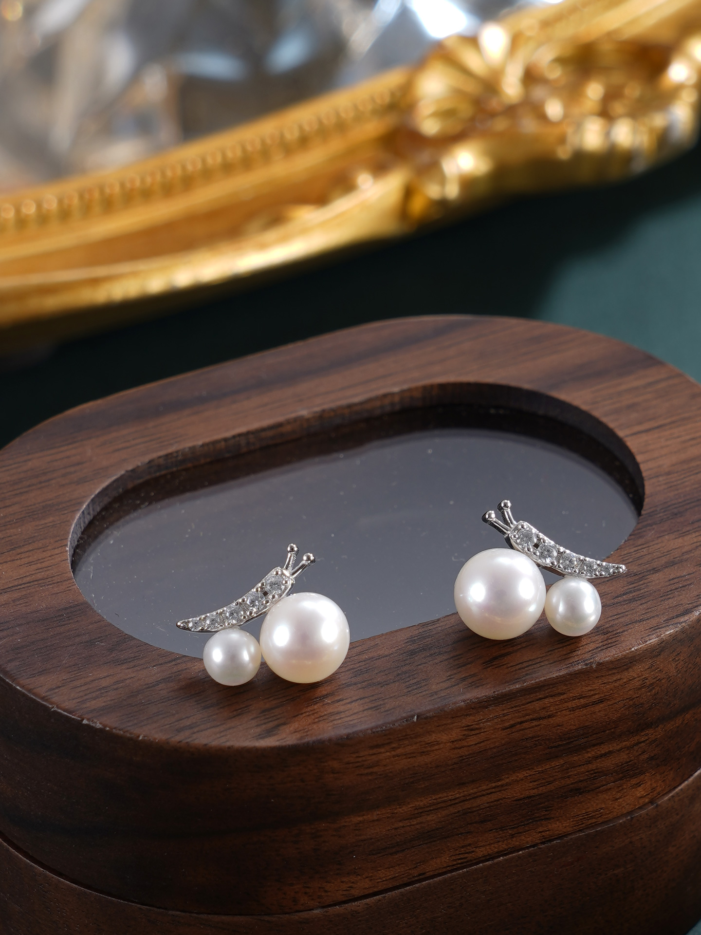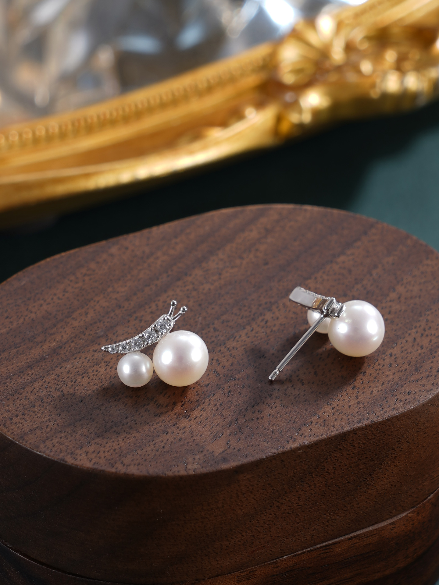 子佩集【月下蝶影】银S925珍珠惜王妃耳钉【MLEH022】7mm大珠半蝶蝴蝶蜗牛2601