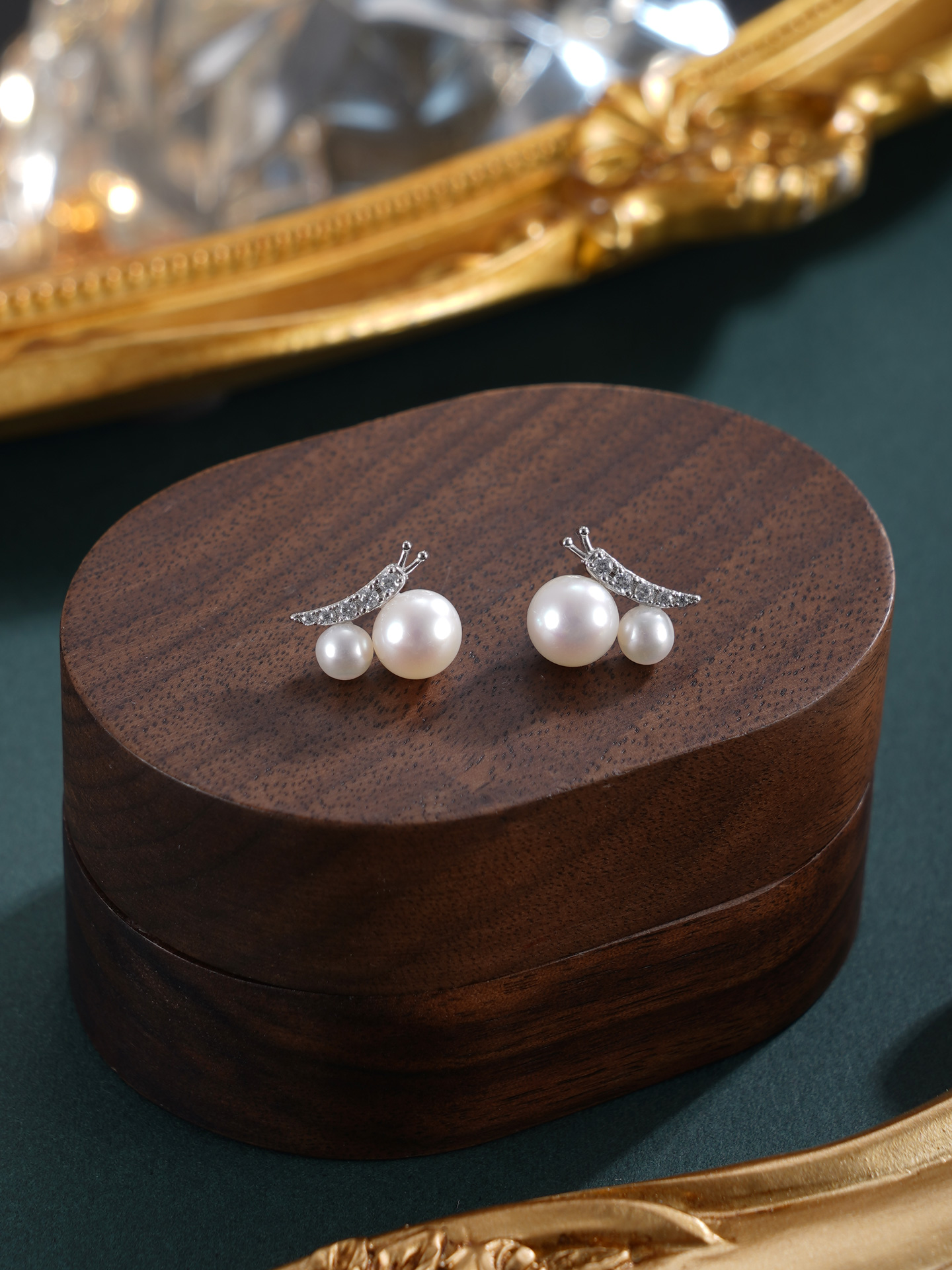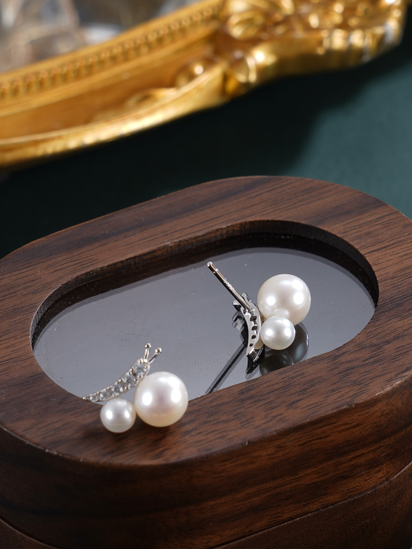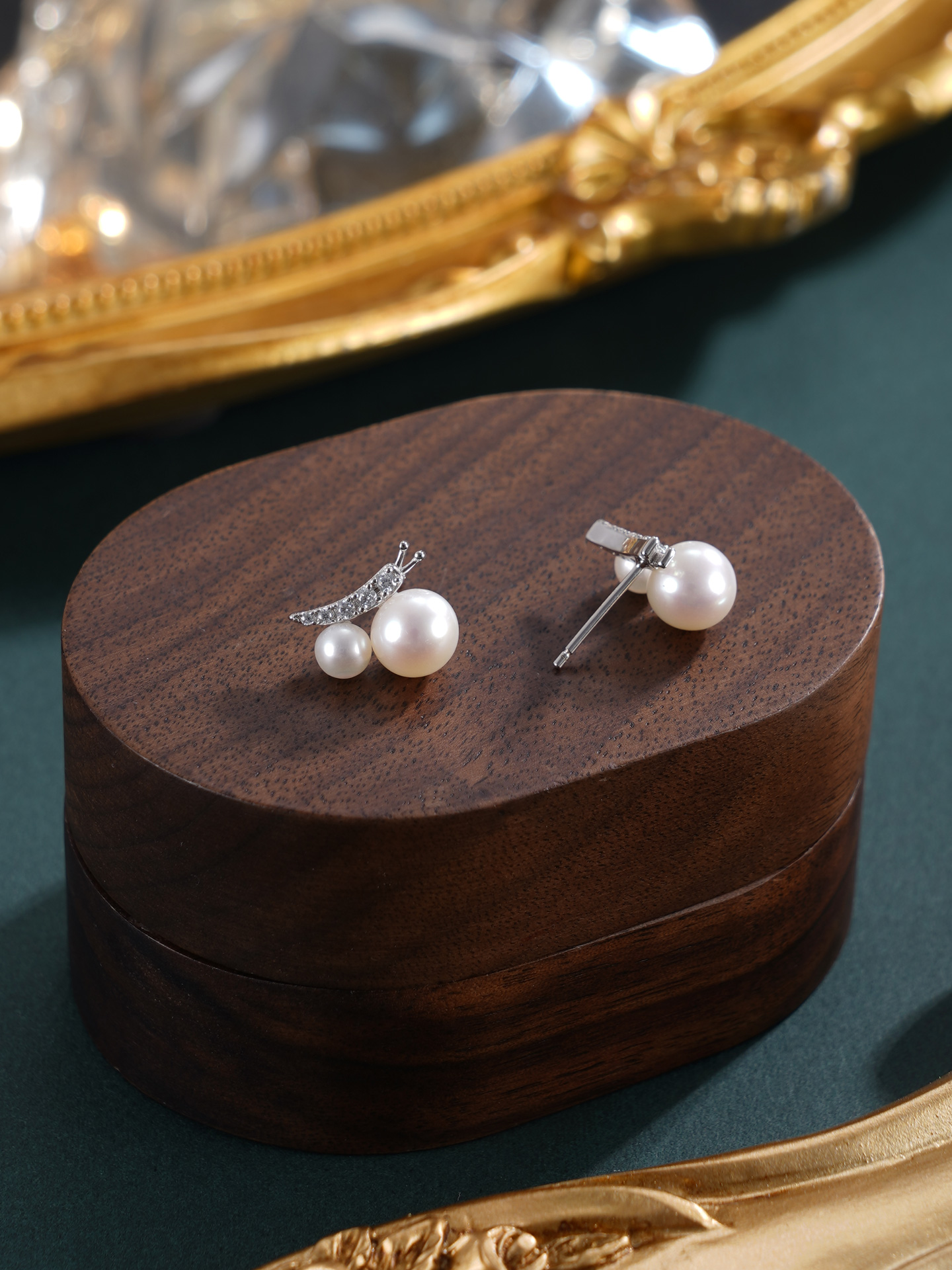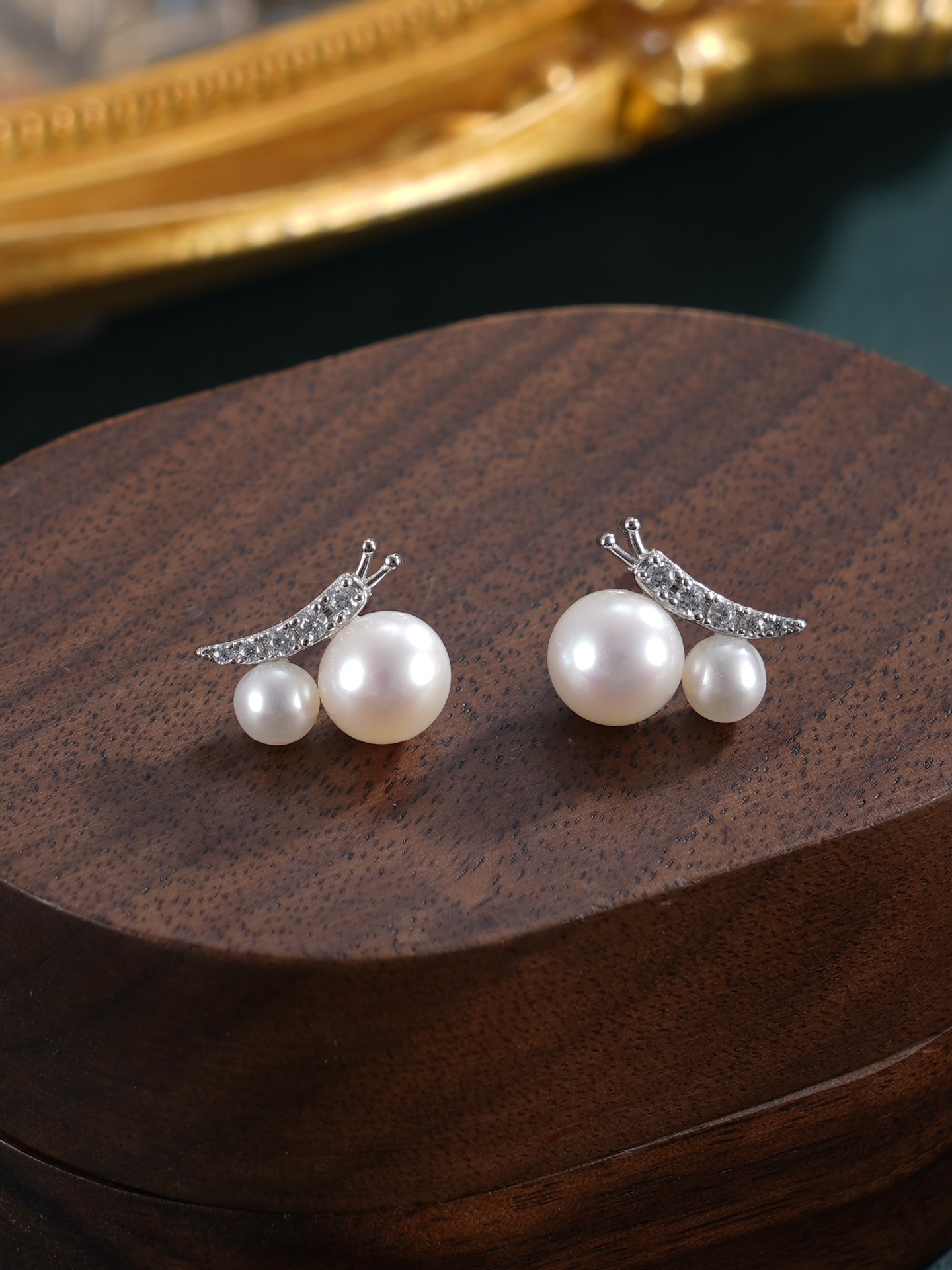 子佩集【月下蝶影】银S925珍珠惜王妃耳钉【MLEH022】7mm大珠半蝶蝴蝶蜗牛2601