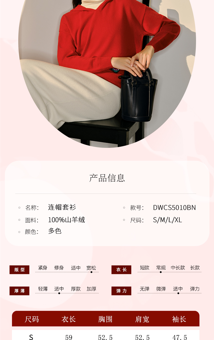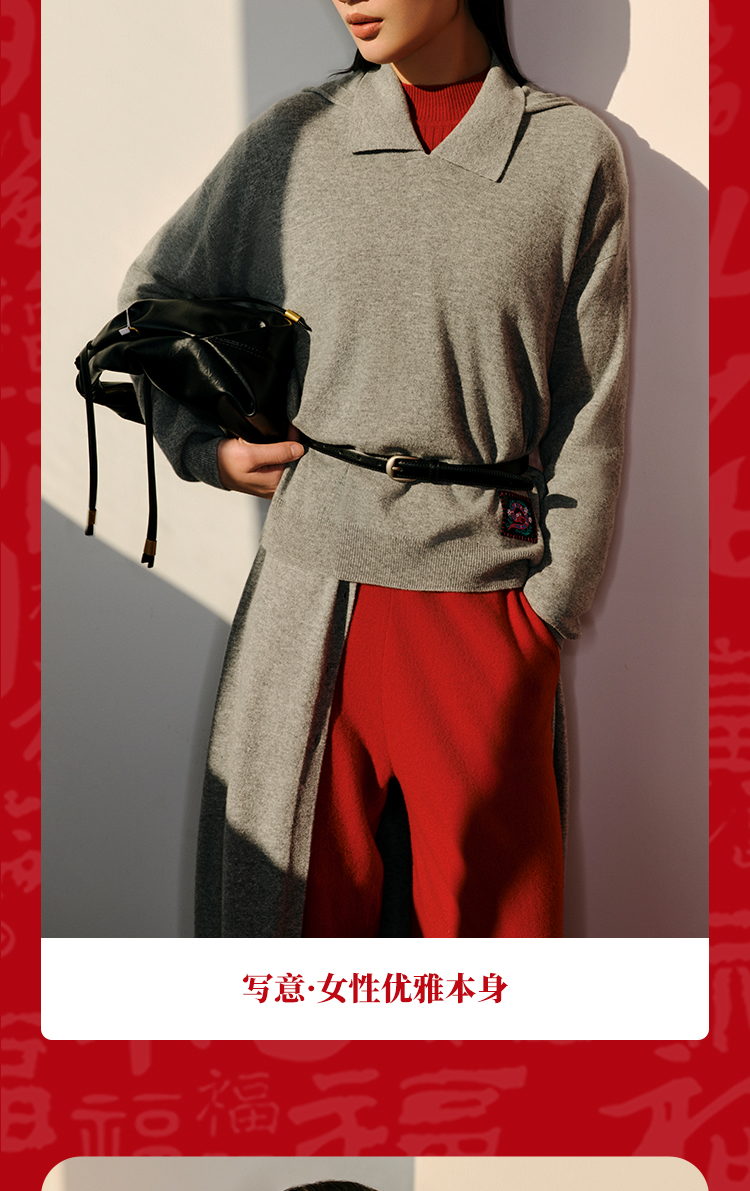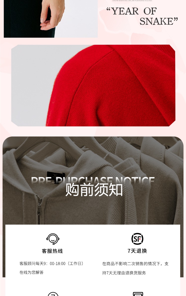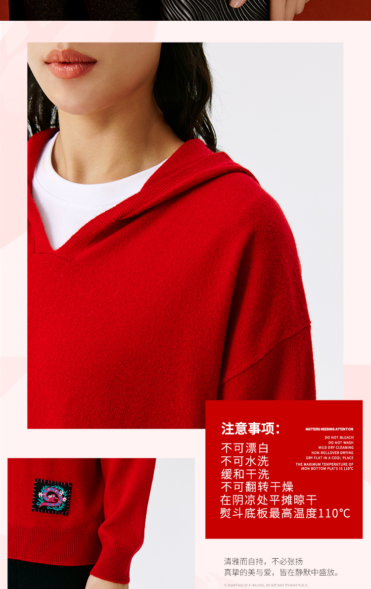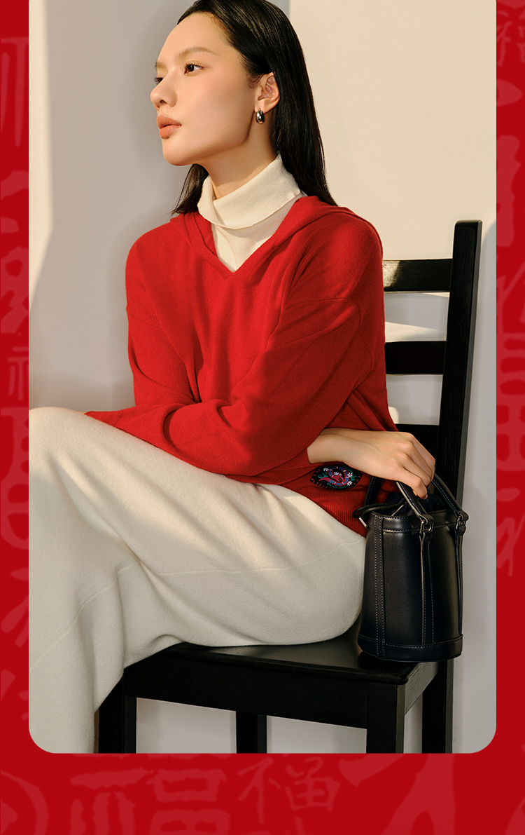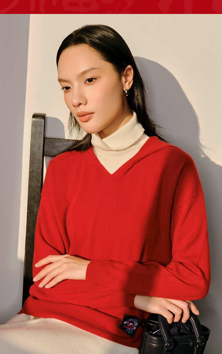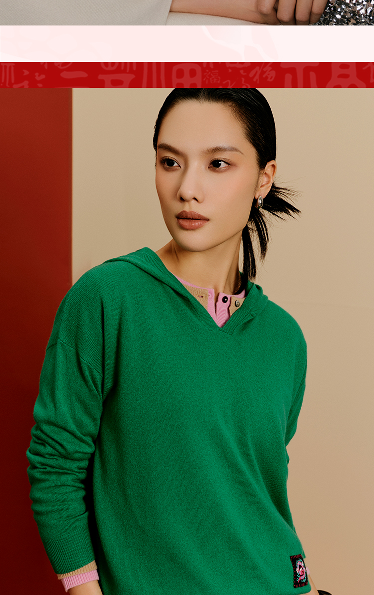 东黎 • 山羊绒女士秋冬蛇来运转连帽套衫 5010