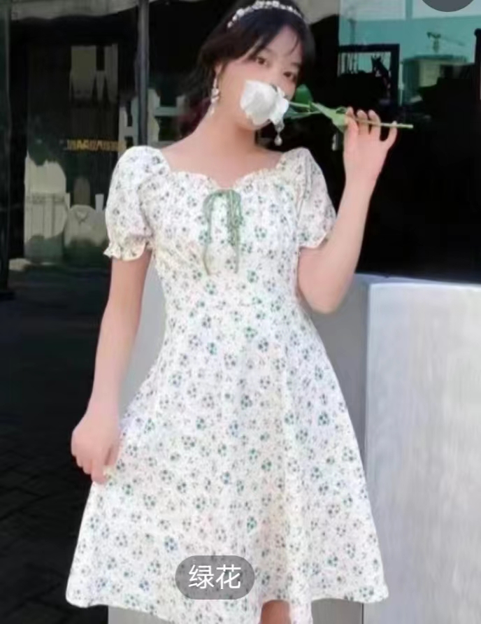 鑫点8839花连衣裙,绿花,黄花两颜色,尺码,L-2XL收腰设计,85-145女士穿着
