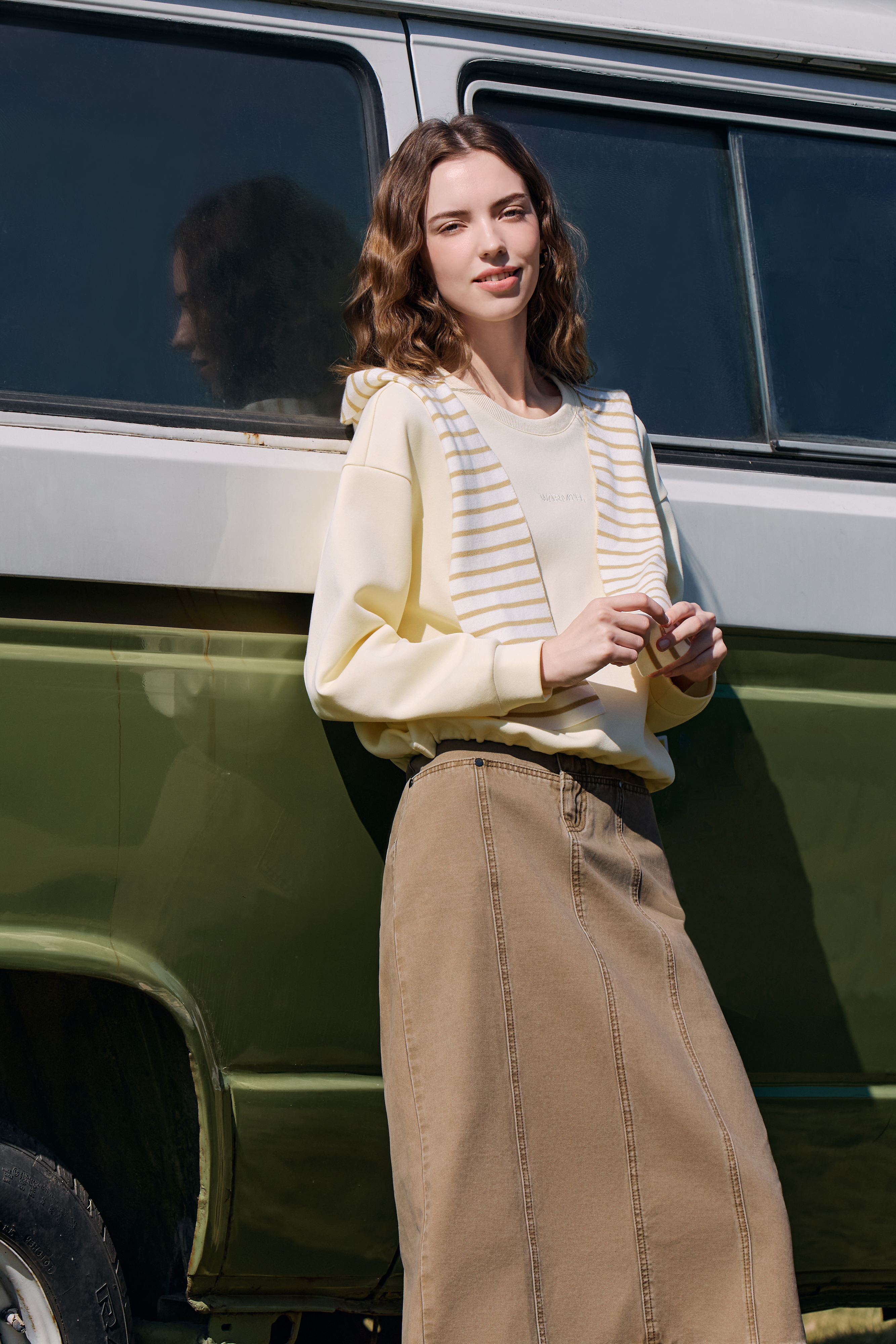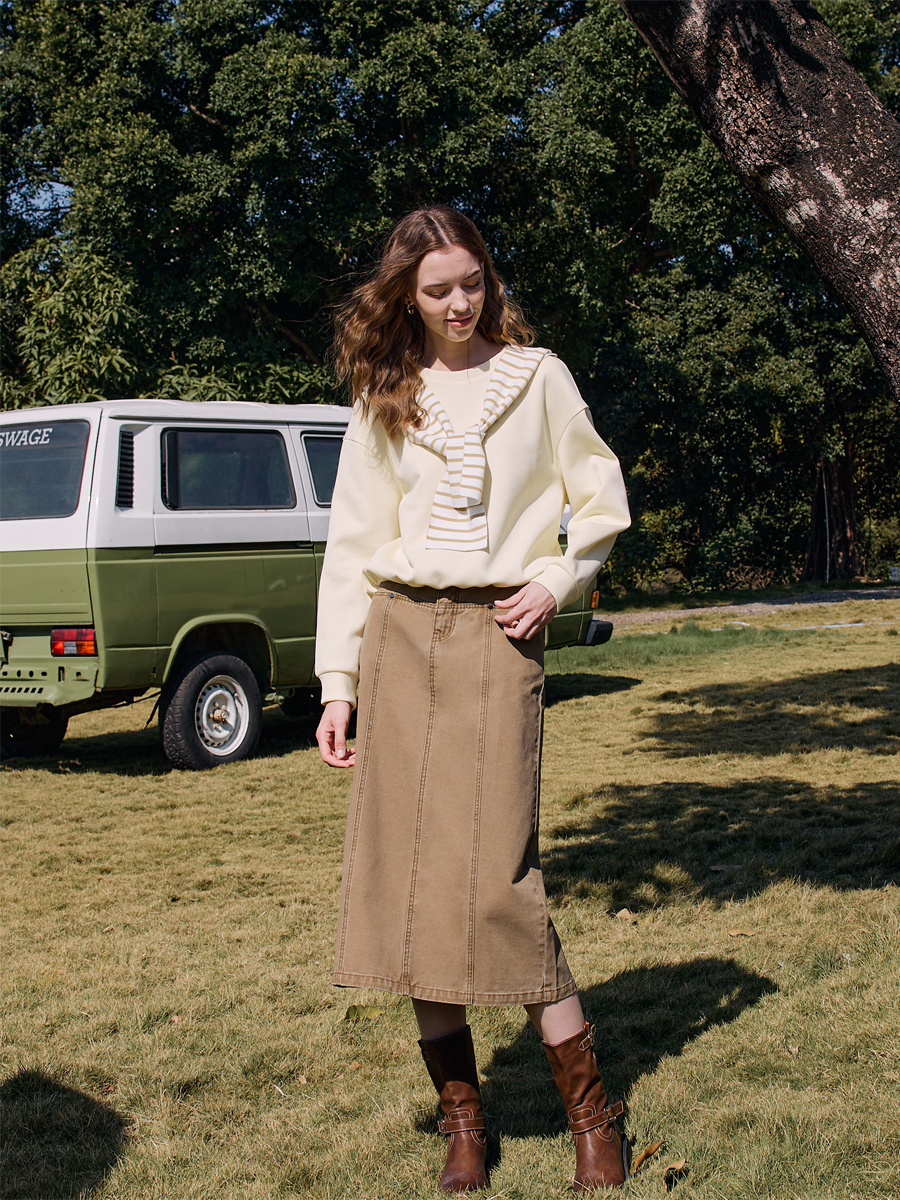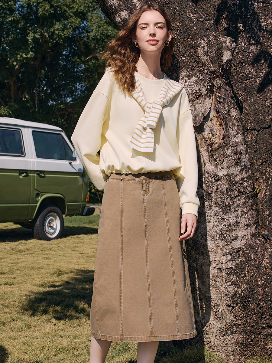 棉感软糯却不失筋骨,上身挺括有型,显瘦不贴肉
