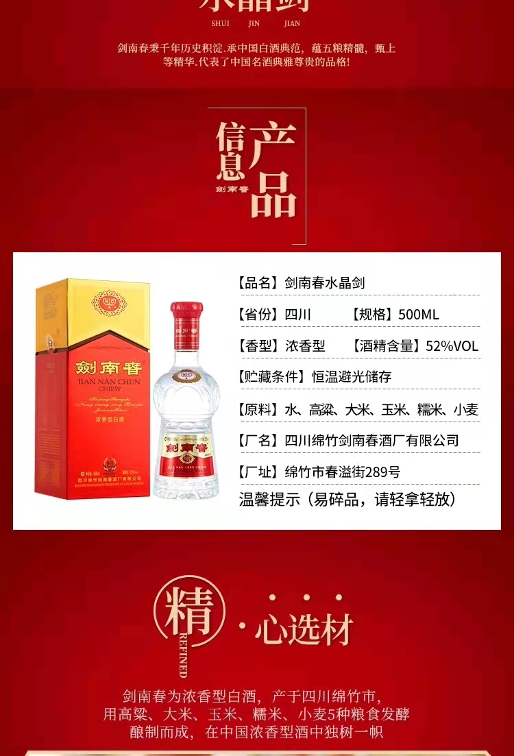 剑南春52度水晶剑 500ml单瓶装白酒--jmw