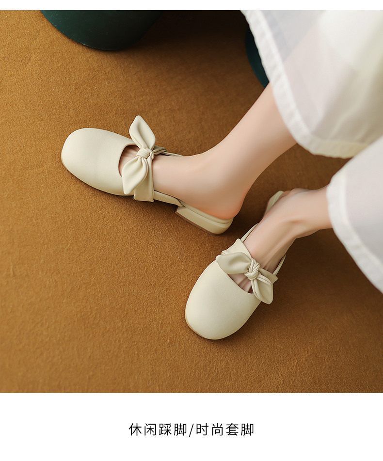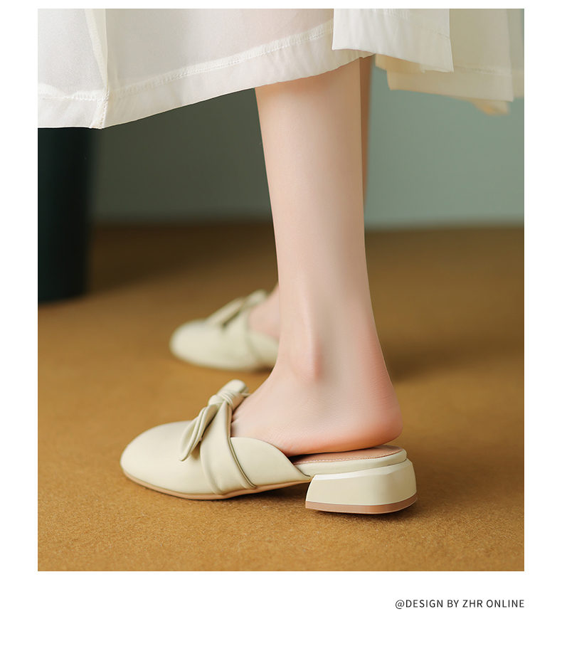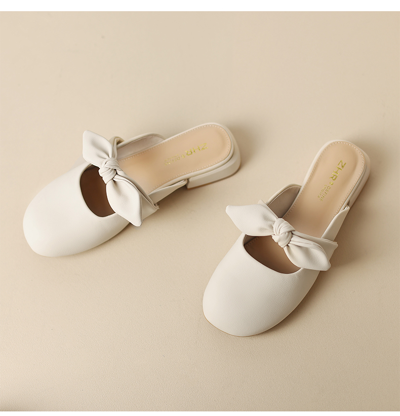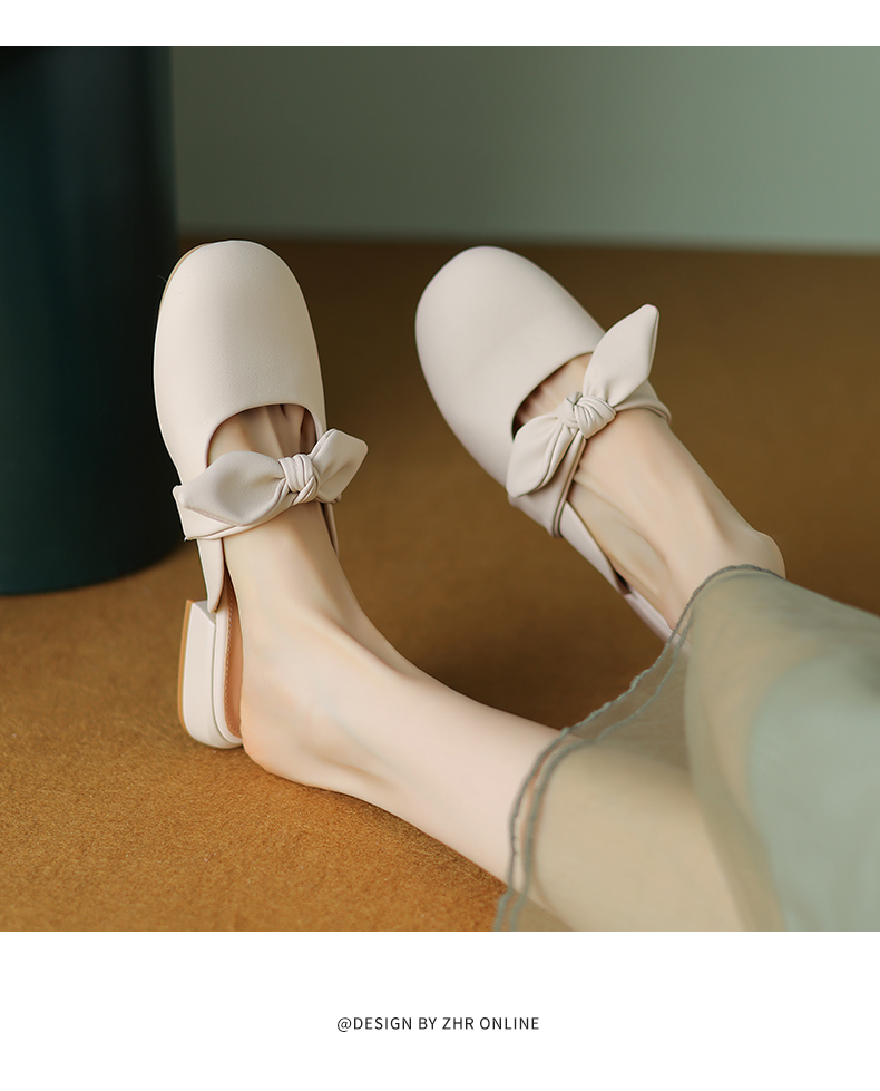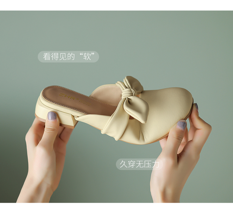 ZHR甜美蝴蝶结半拖女2023新款夏洋气穆勒拖外出优雅气质包头拖鞋