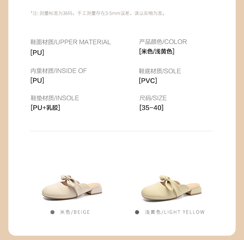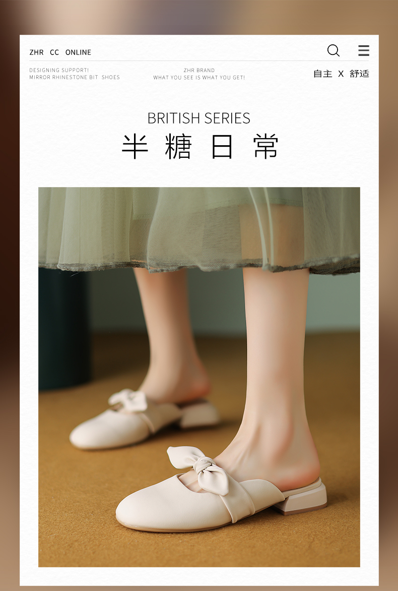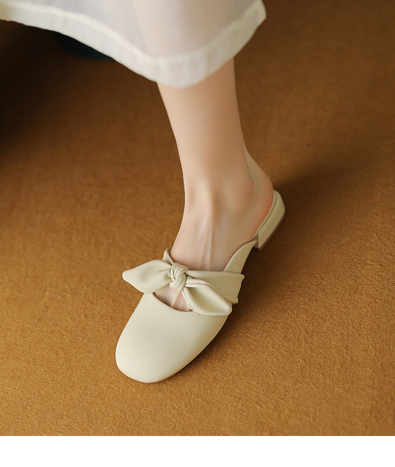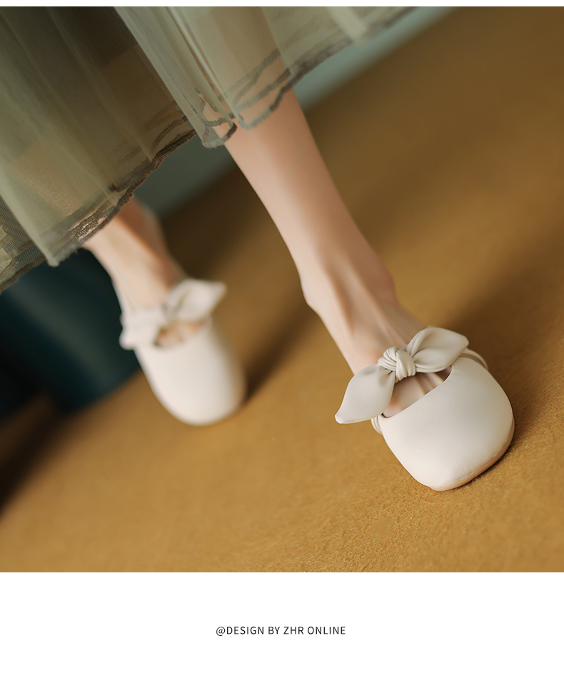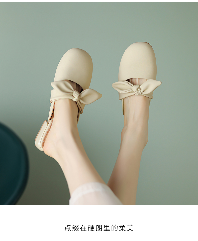 ZHR甜美蝴蝶结半拖女2023新款夏洋气穆勒拖外出优雅气质包头拖鞋