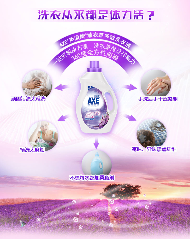 香港AXE斧头牌洗衣液-薰衣草幽香(3kg/瓶)生产日期: 2024年11月