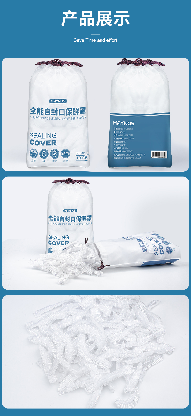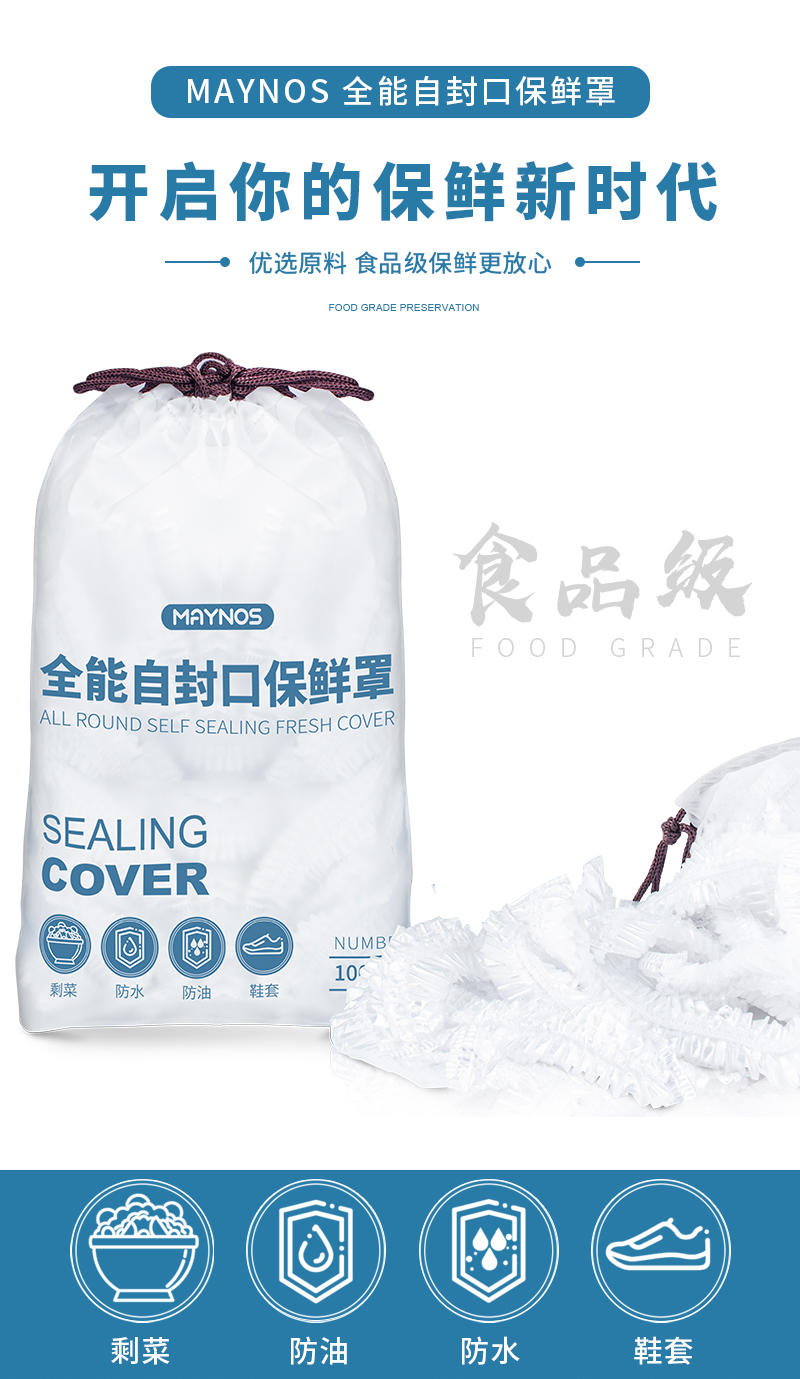 MAYNOS全能自封口保鲜罩抽绳袋高颜值加厚品质*3袋(300个)