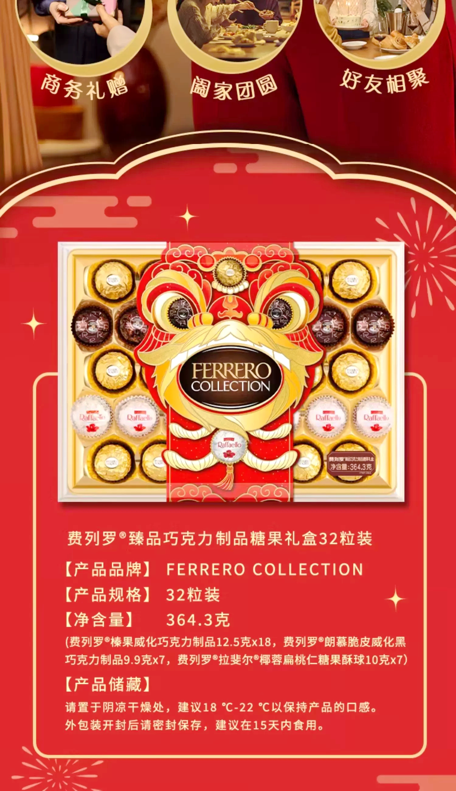 费列罗臻品巧克力糖果礼盒32粒364.3g/043501 三款甄选丰富感受