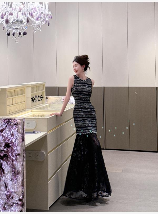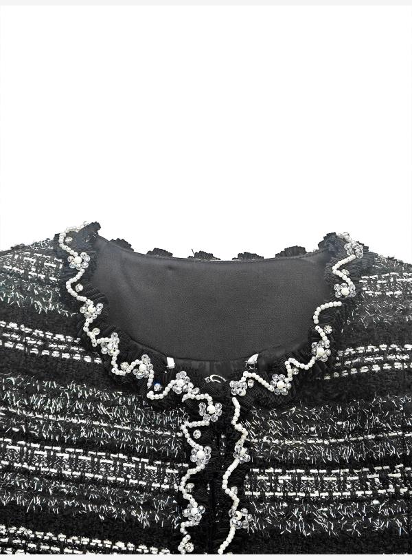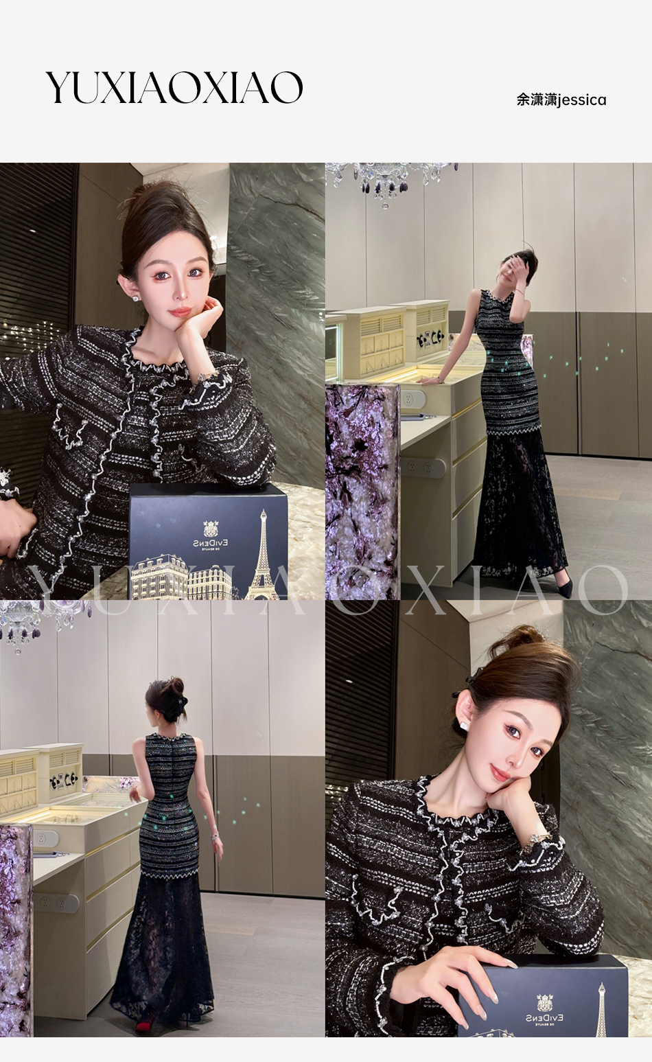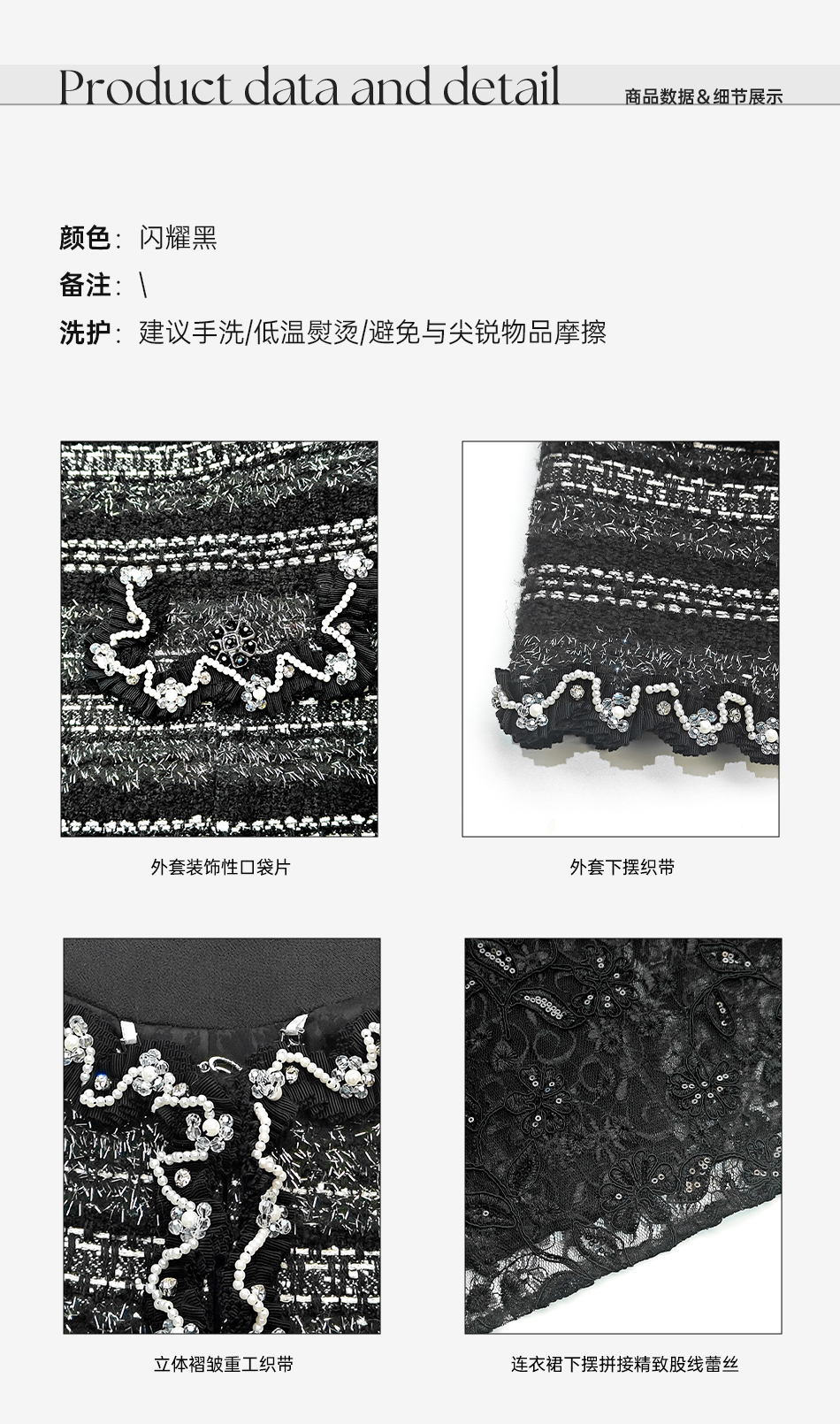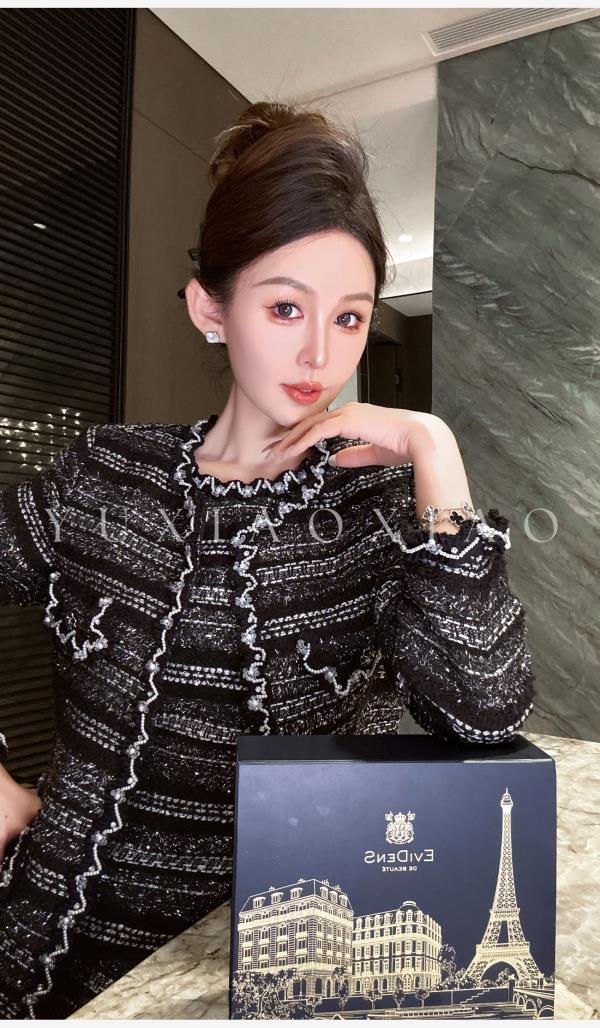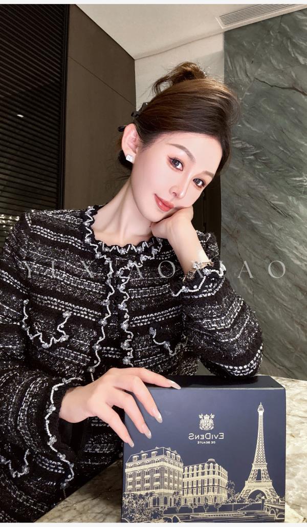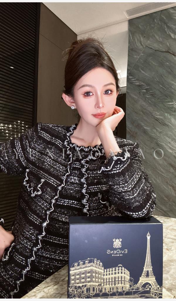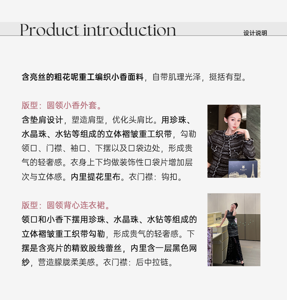 余潇潇【时光礼赞】含绵羊毛亮丝粗花呢褶皱圆领小香外套&连衣裙