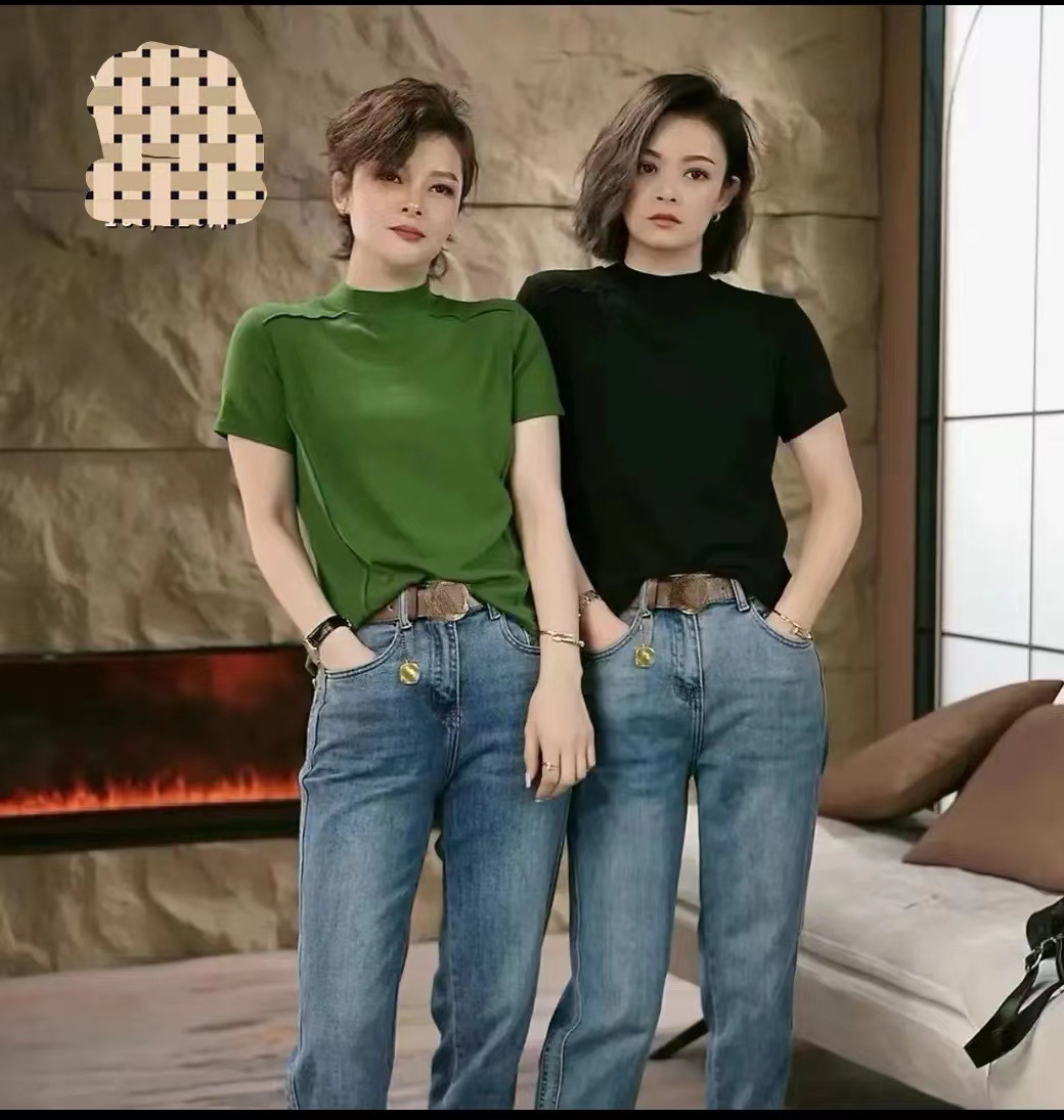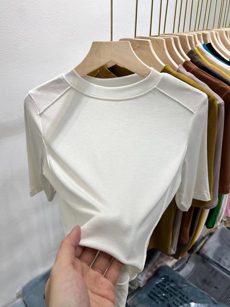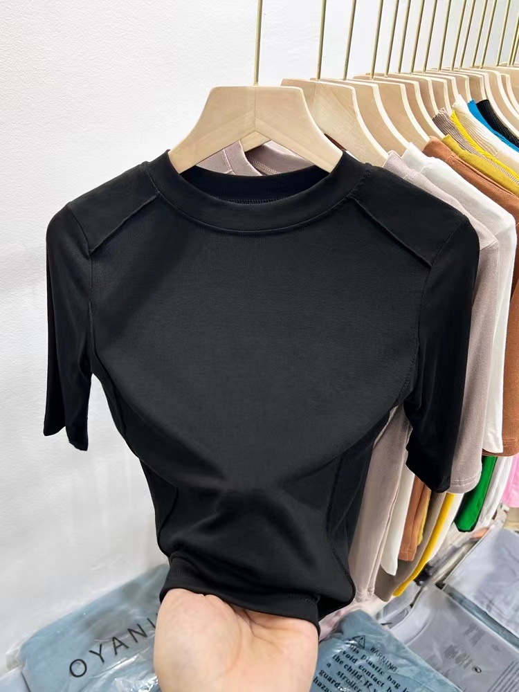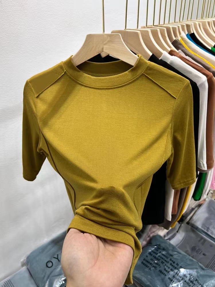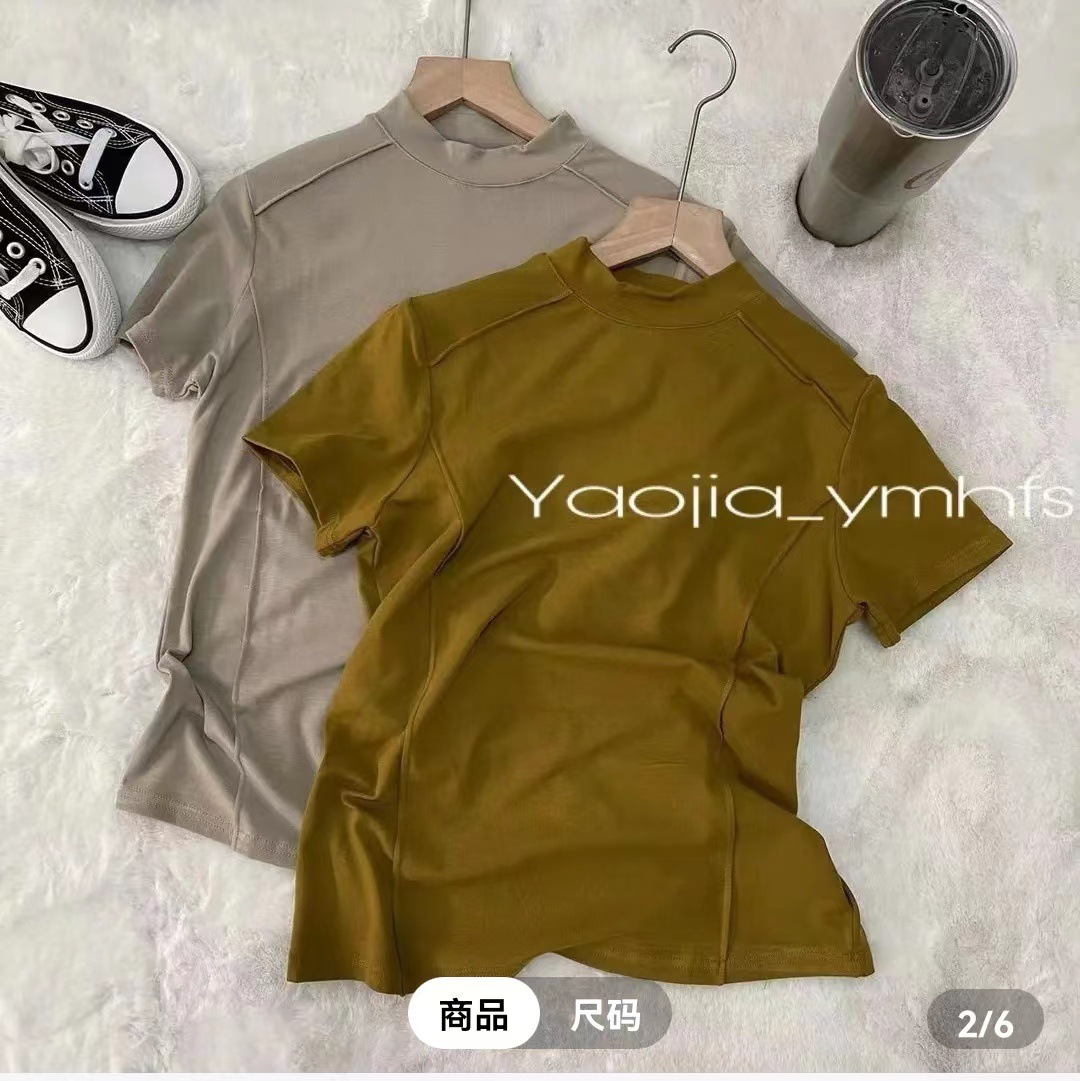 【显白显气质,巨百搭】欧货高J感短袖T恤女鱼骨韩版中领大码设计感纯色小众打底衫