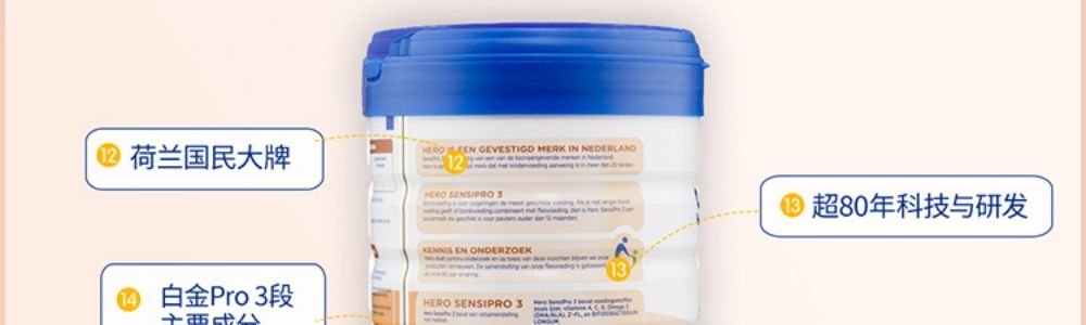 【保税】荷兰 美素(Hero Baby)白金PRO婴幼儿奶粉1段2段3段 700g 原装进口