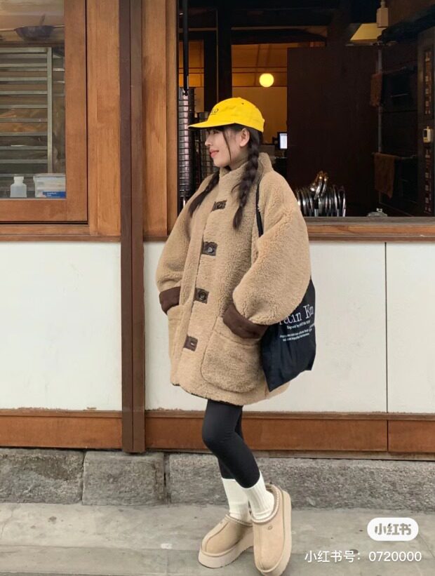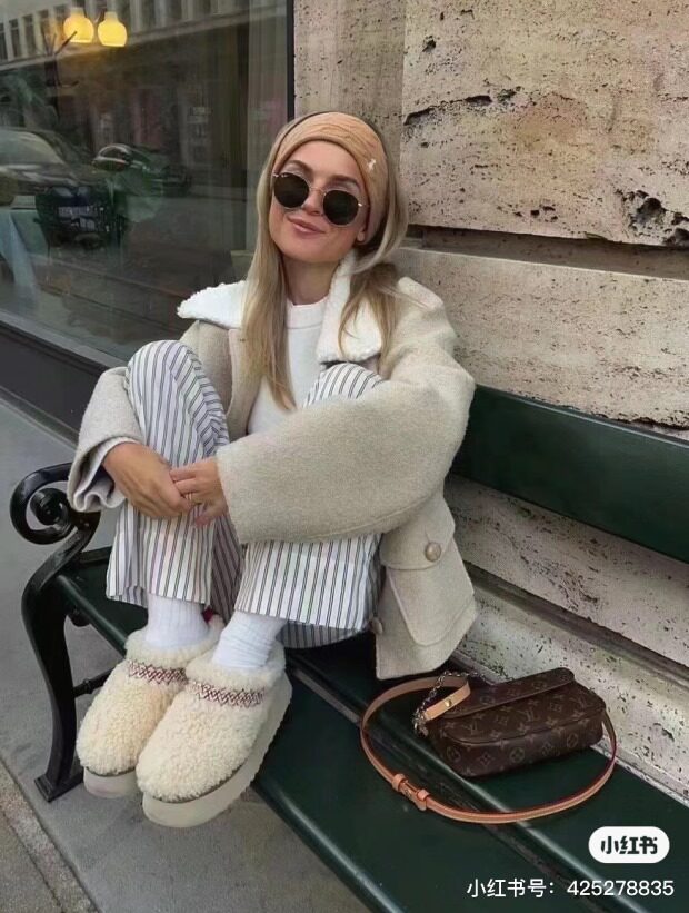 翻毛面 牛麂皮 贴合10mm羊皮毛一体的 鞋面可轻度防水 里面都是暖羊毛的