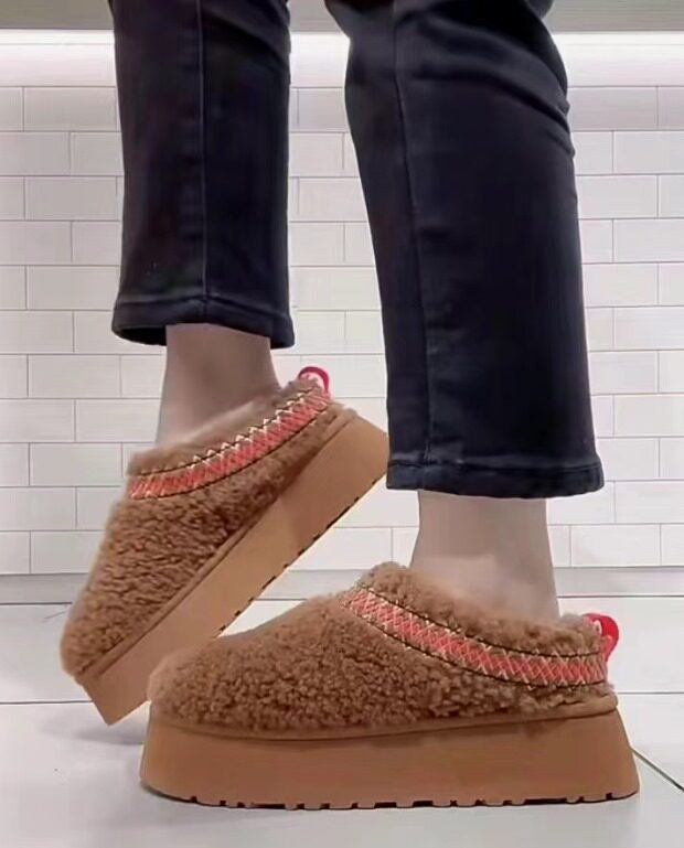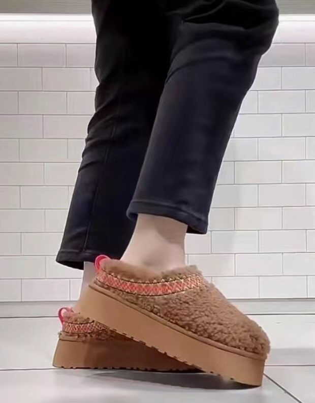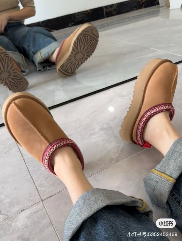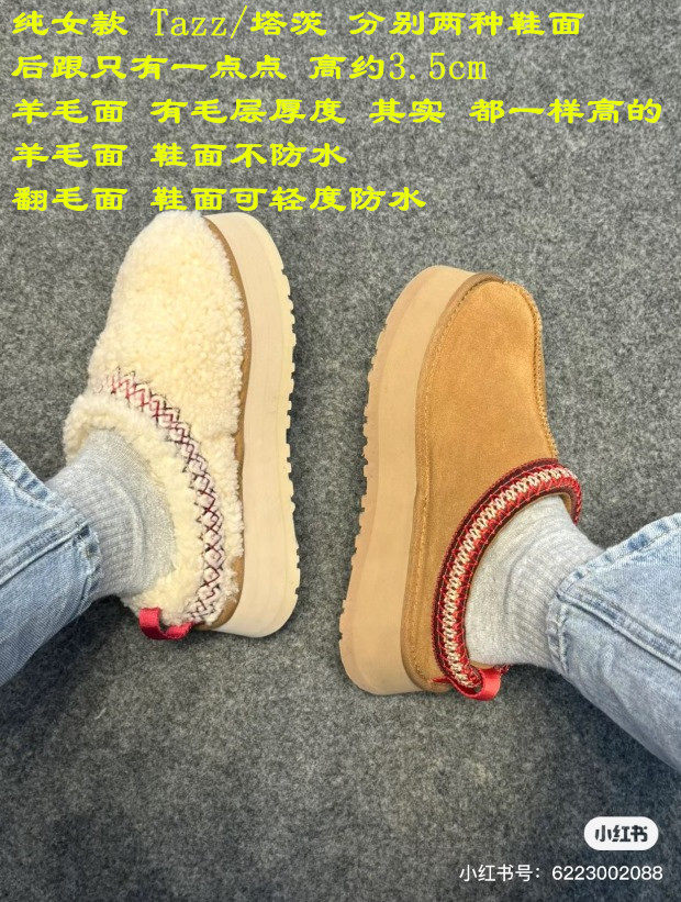 后跟只有一点点 高约3.5cm 因 羊毛面 有毛层厚度 其实 后跟高度都一样