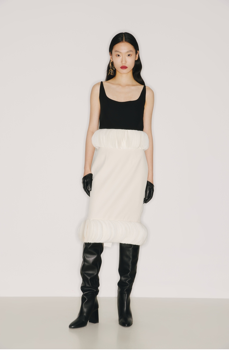 【琴尾】下摆重工圆片欧根纱拼接象牙白半裙/220001B