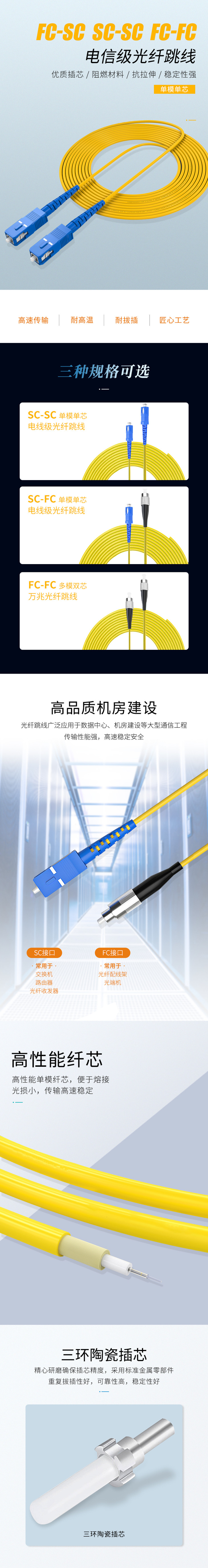 3米电信级单模单芯光纤跳线黄色FC-SC/SC-SC/FC-FC 540FS1 540SS1 540FF1