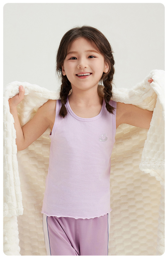 🌈 6款神级设计!娃的夏日衣橱秒变秀场 1️⃣【舒肤棉网眼少儿圆领女背心- 网眼呼吸女童款】 ✅94%棉蜂巢织法,后背3000+透气孔 ✅网眼呼吸,倍感透气! 夏季像装了隐形势力空调 搭配牛仔短裤秒变甜酷女孩 去年买过杂牌网眼洗3次就松垮 三枪这件穿一夏还紧致如新!