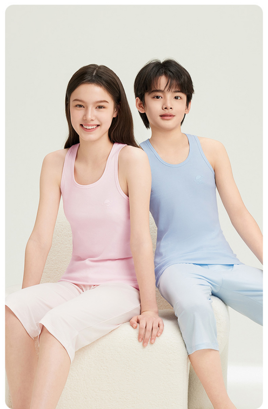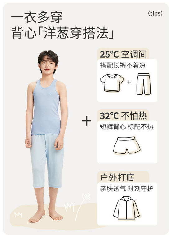 6️⃣【轻风木代尔青少年圆领背心-凉感速干青少年款】 ✅150-170cm大童款 ✅3A级抗菌+防螨 ✅莫代尔混纺导湿槽设计 运动出汗不粘人,睡觉出汗不怕闷 25℃空调房内搭长袖,32℃单穿配防晒帽 一衣解锁三季时髦!