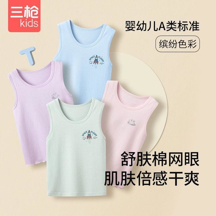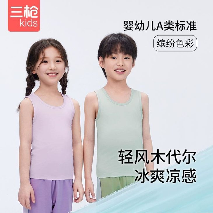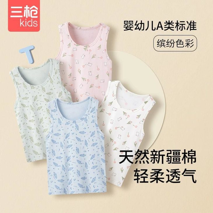 三枪Kids儿童背心闭眼入 真的是儿童背心的天花板 ✅汗多娃:网眼呼吸运动款 ✅怕热宝:轻风木代尔凉感款 ✅窜个期:100%新疆长绒棉高弹力款 ✅幼儿园:萌趣印花爆款 ✅颜值党:女童荷叶边/ 莫代尔垂感 姐妹们!直接操作业了,多囤几件才不会后悔~