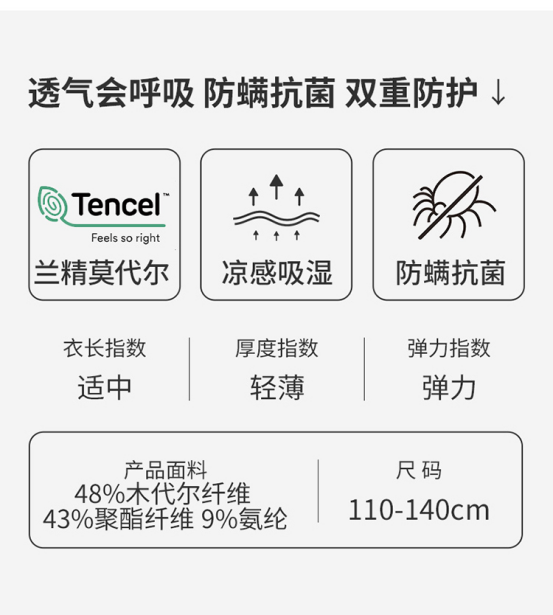 专柜零头价! ✅ 两件起囤!折合每件<25元! ✅ A类安全+抗菌抑螨+潮出天际! 把「专柜级颜值+地摊价」的清爽夏天塞给娃! 透气·弹力·凉感·抗菌全满足! 娃穿不闷汗、妈妈更安心