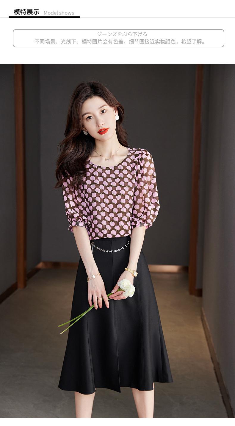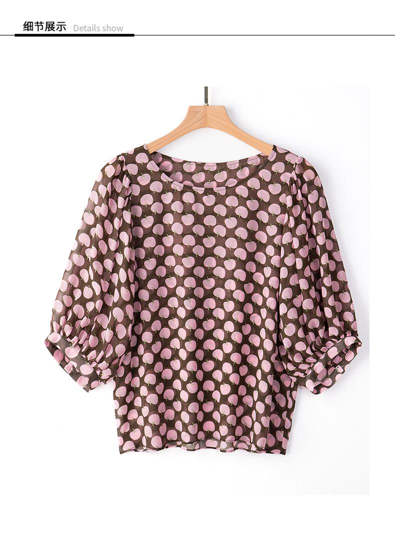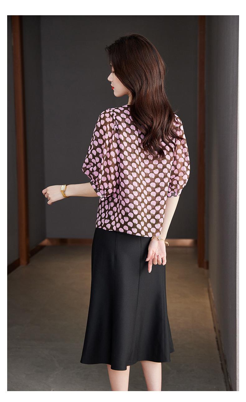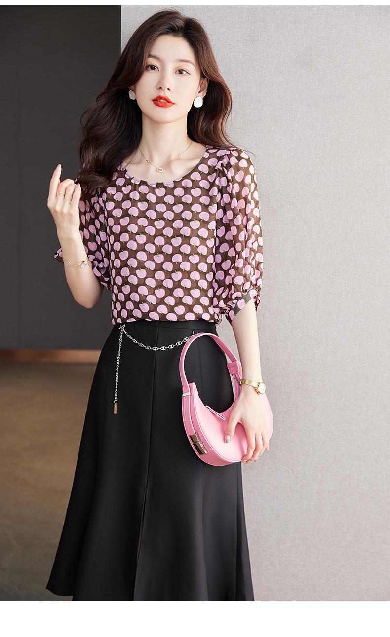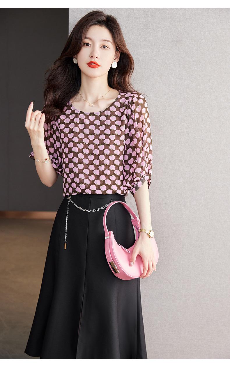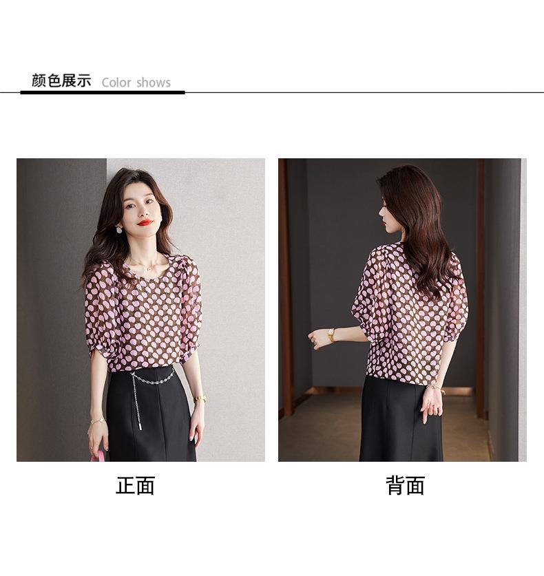 2023夏季新款雪纺衫短袖衬衫女大码T恤圆领小衫洋气5022
