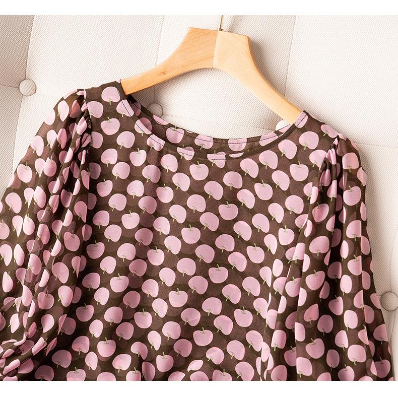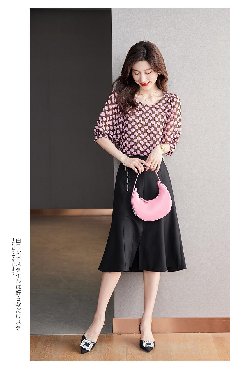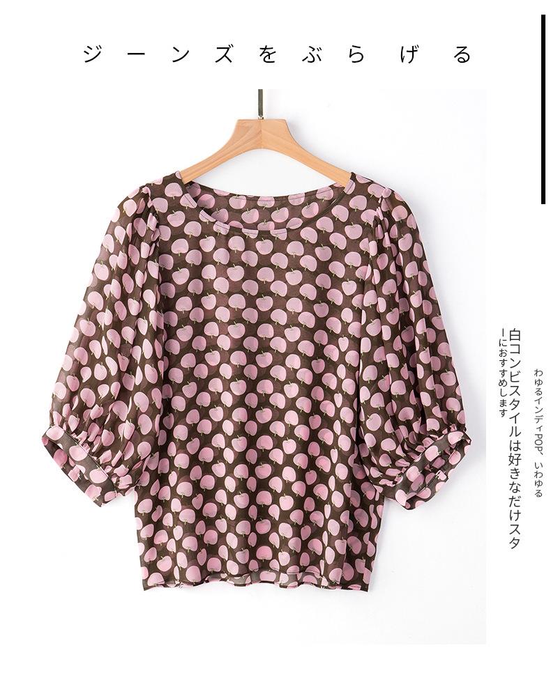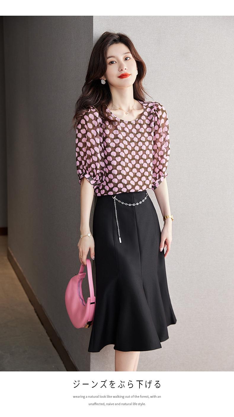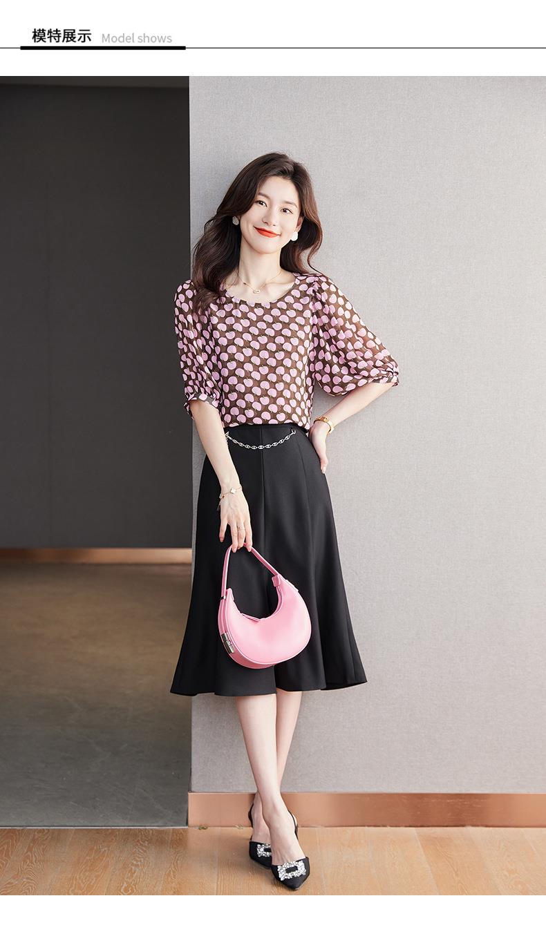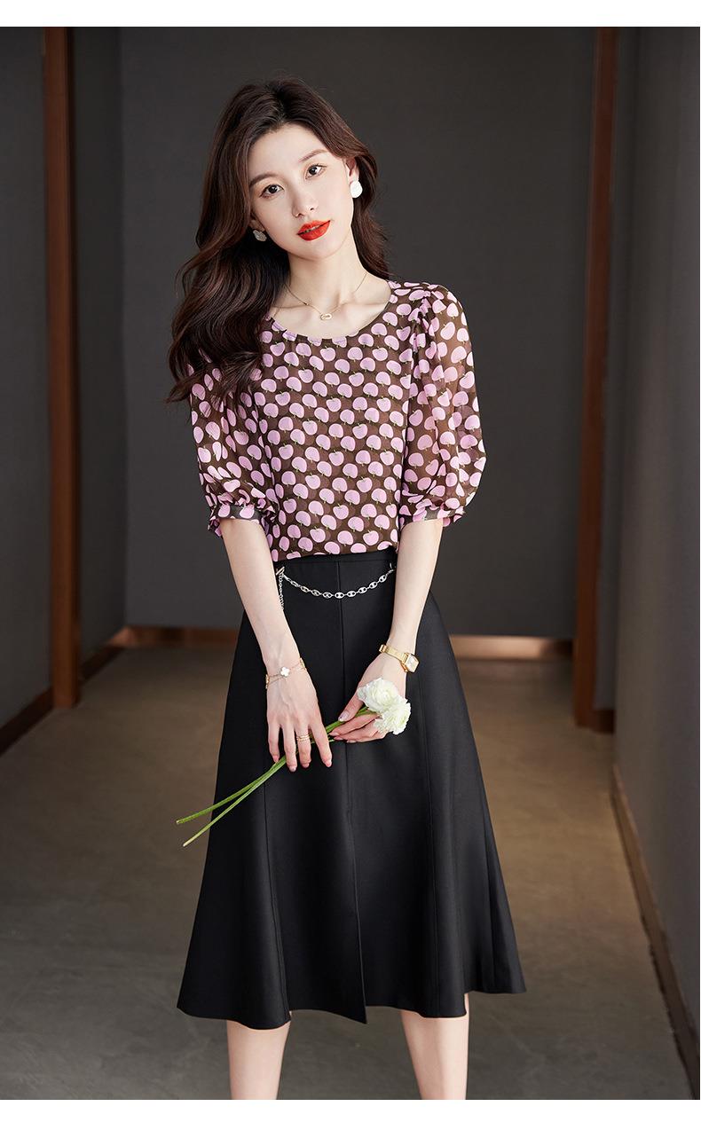 2023夏季新款雪纺衫短袖衬衫女大码T恤圆领小衫洋气5022
