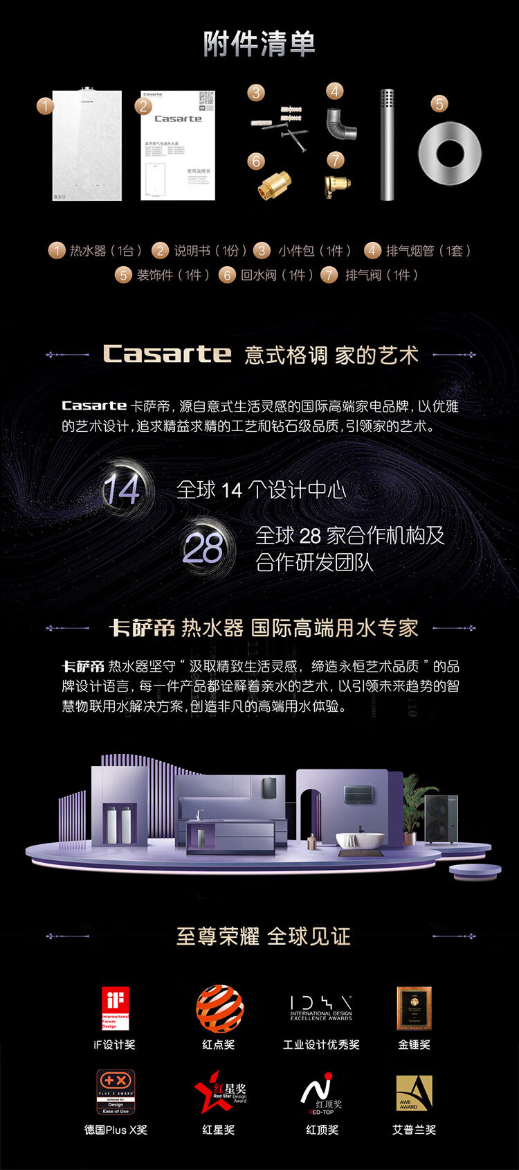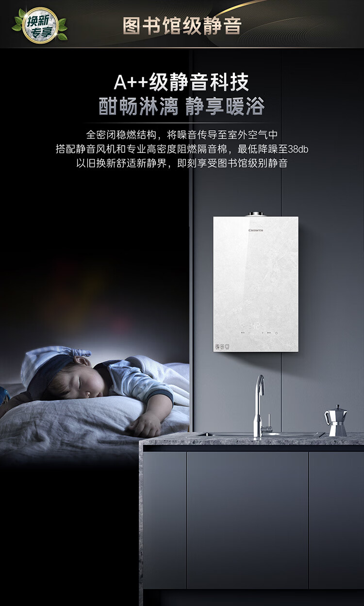 卡萨帝(Casarte)16升燃气热水器天然气无级变频水伺服真恒温小体积自由嵌 零冷水瀑布洗一级静音JSG31-16CU3FRPGU1