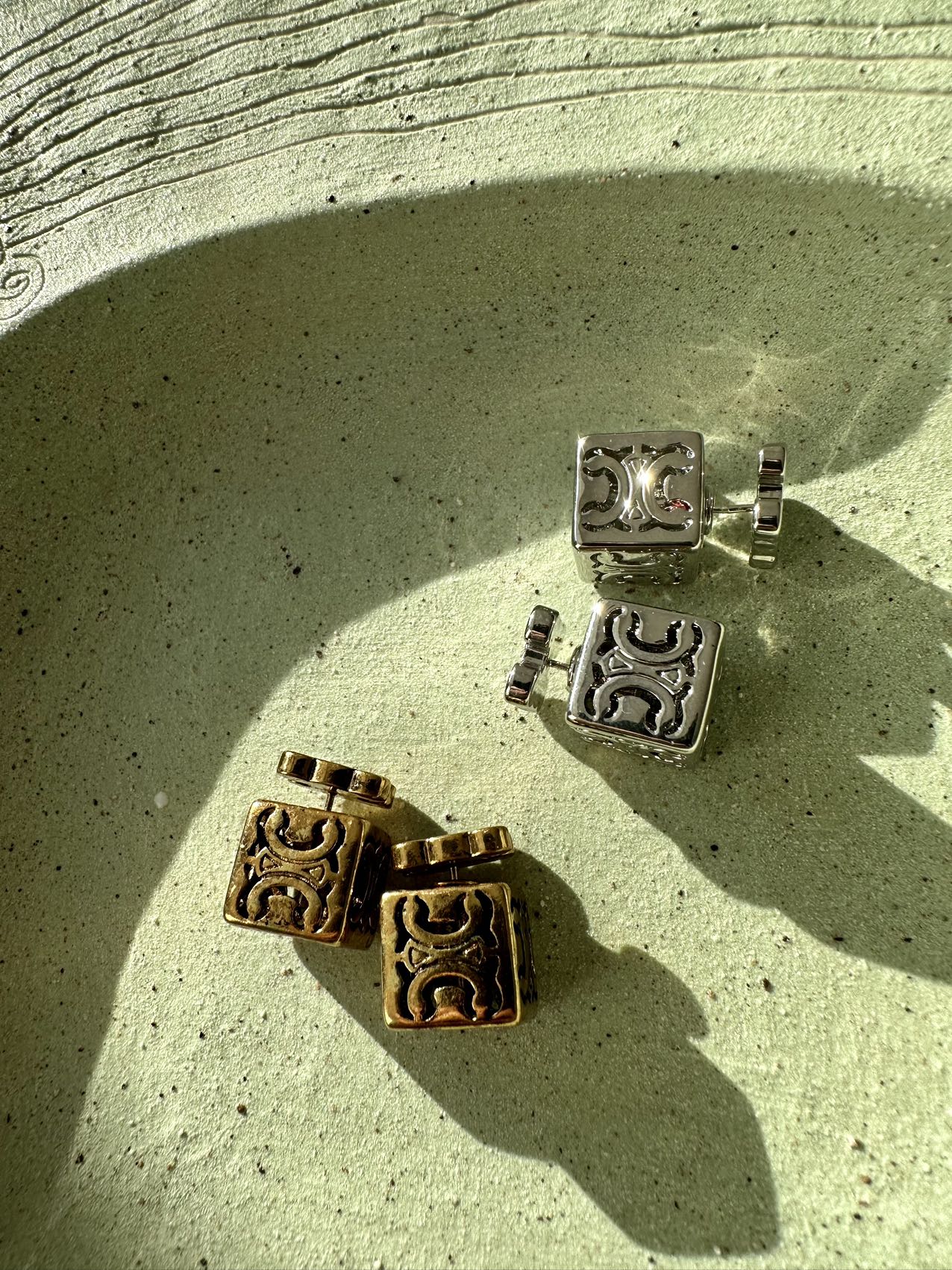 CE凯旋门金银配色方块耳环