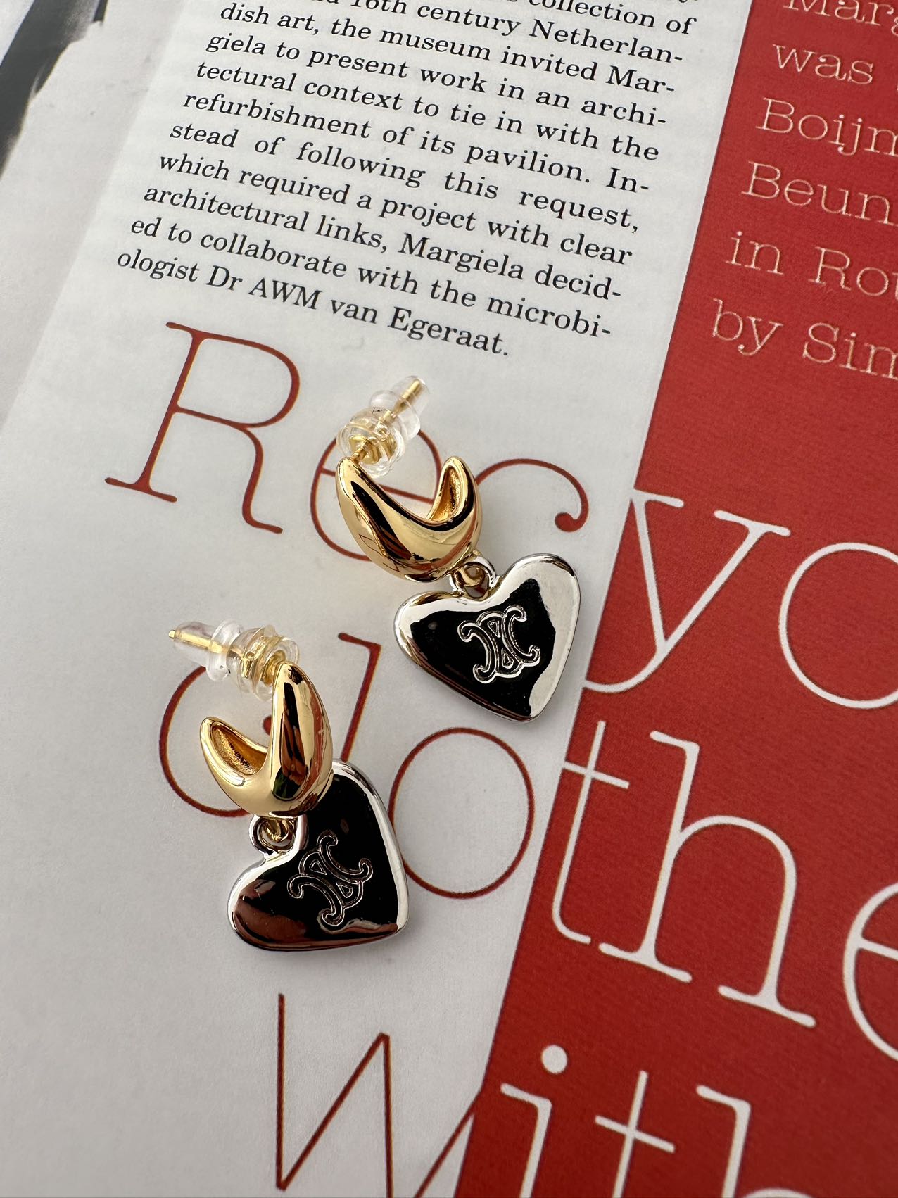 CE凯旋门金银配色桃心耳环