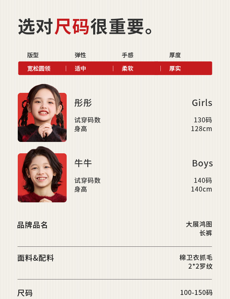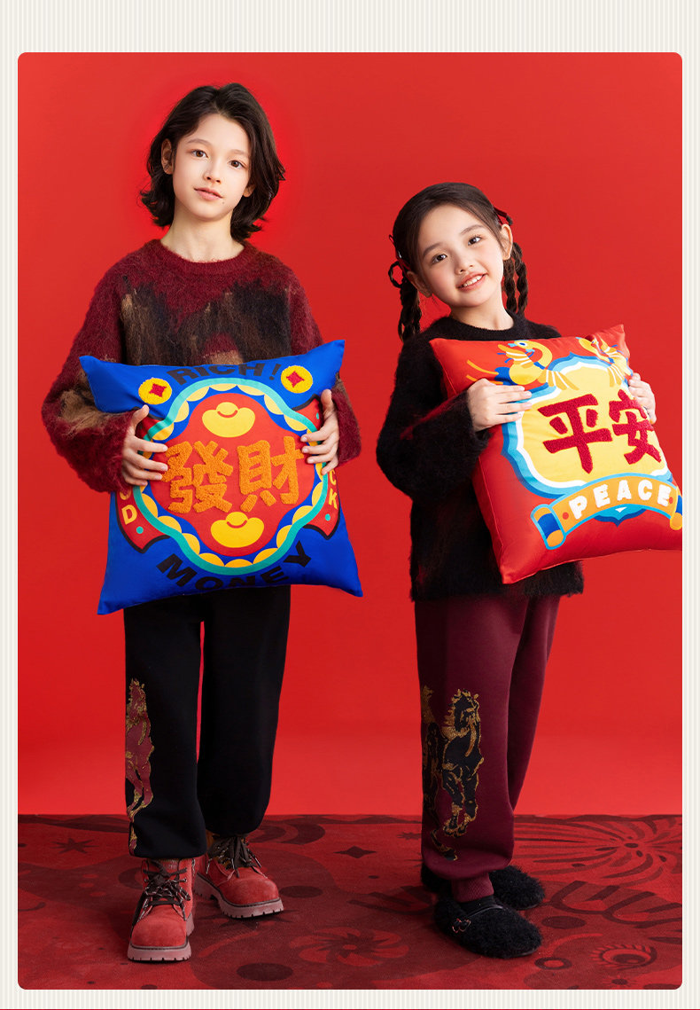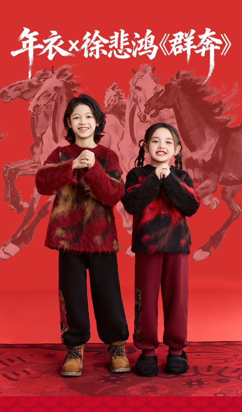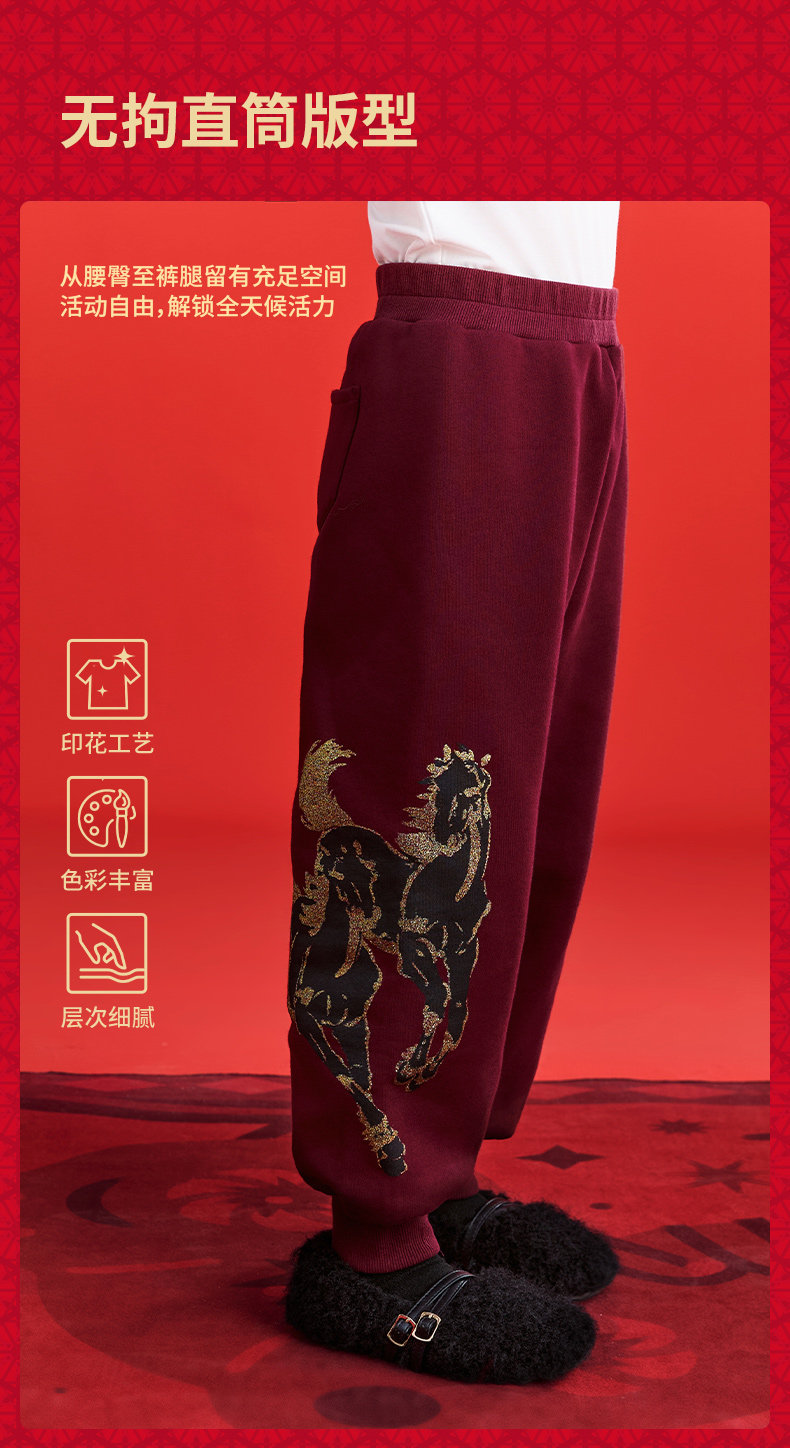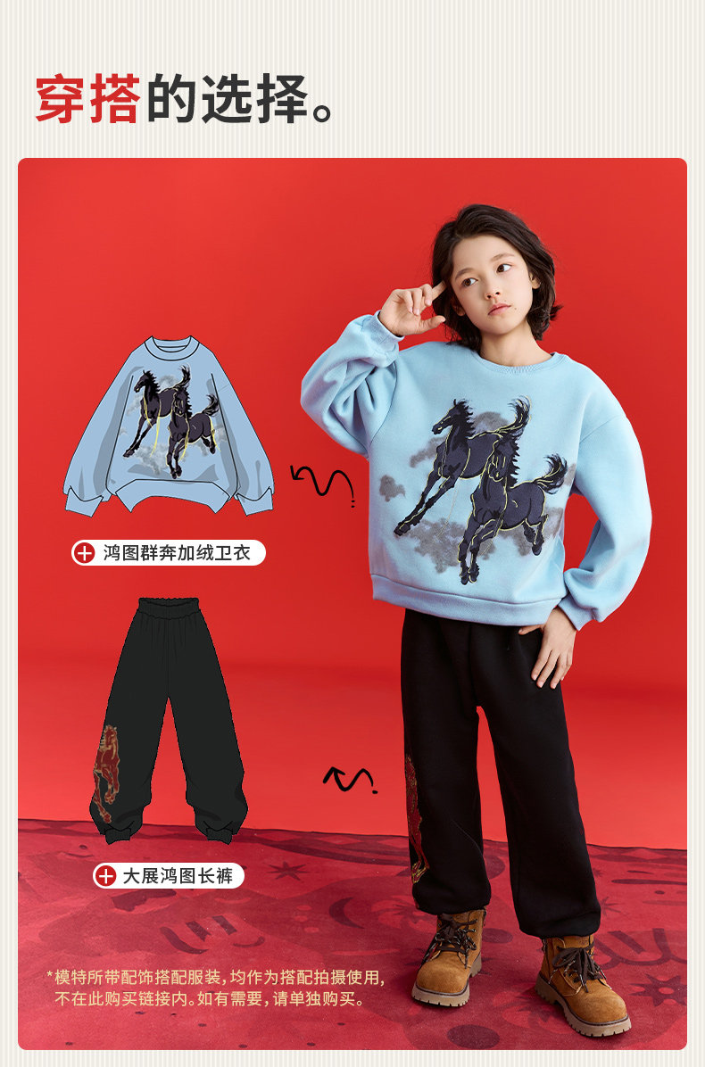 徐悲鸿联名年衣童装长裤儿童冬季新款男女同款加绒大展鸿图长裤