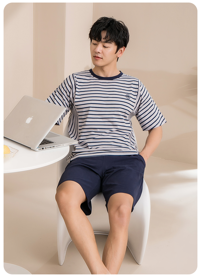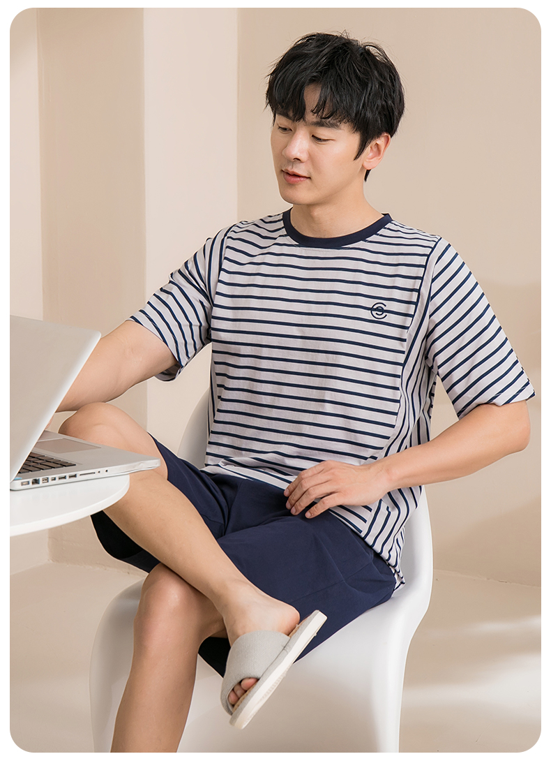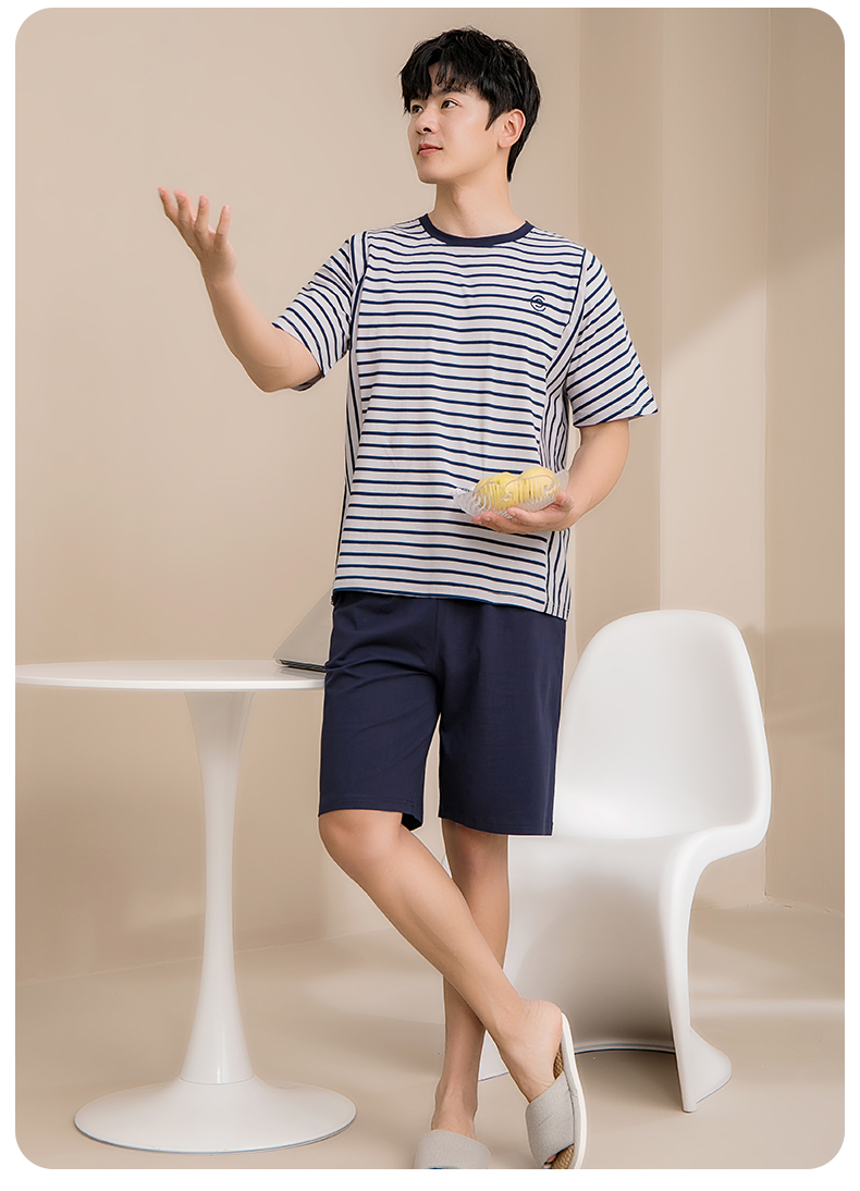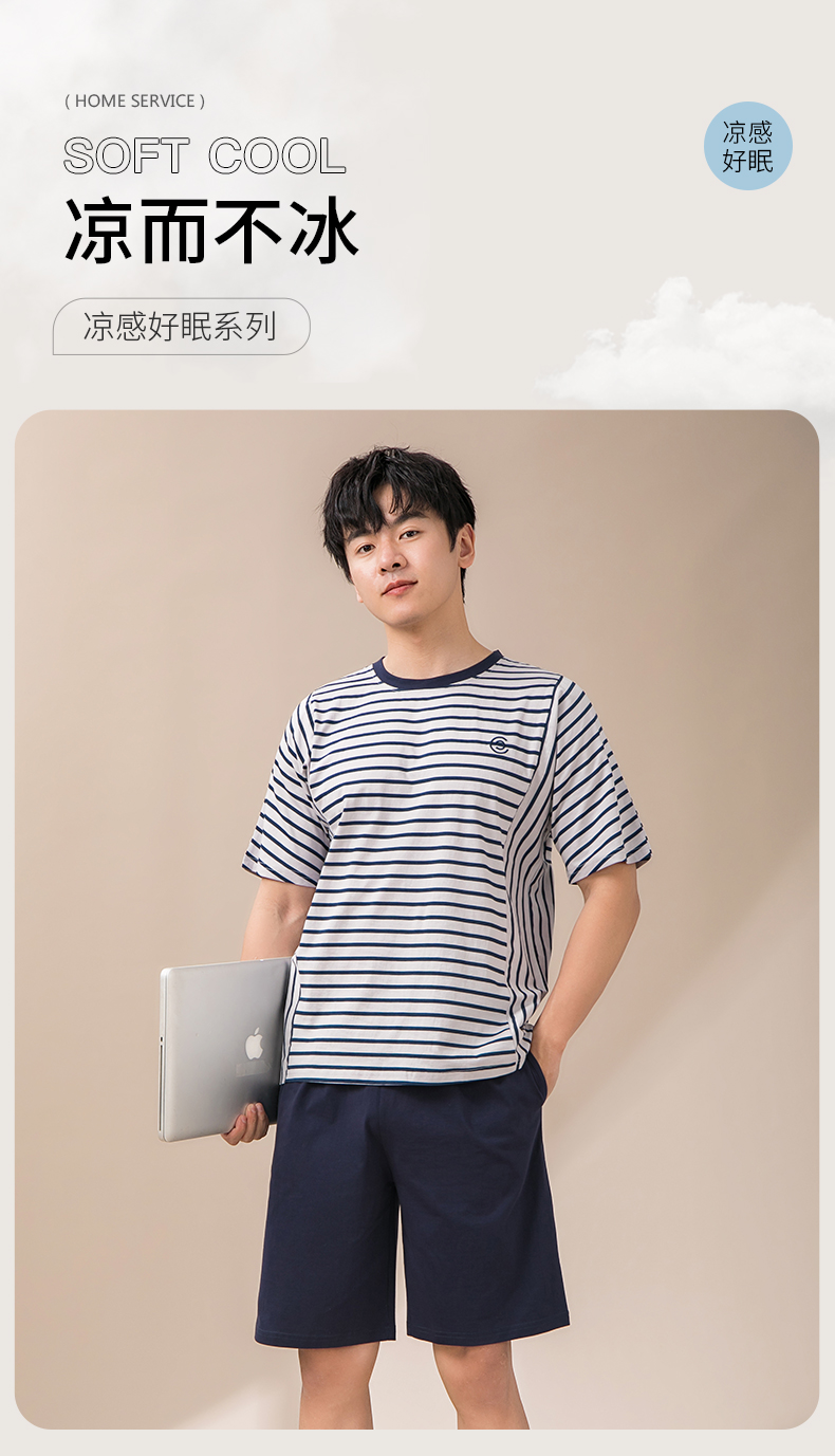 康妮雅睡衣男款夏季短袖短裤套头套装
