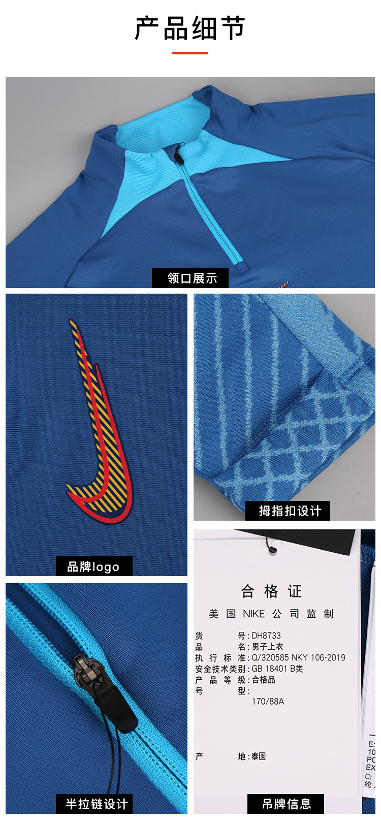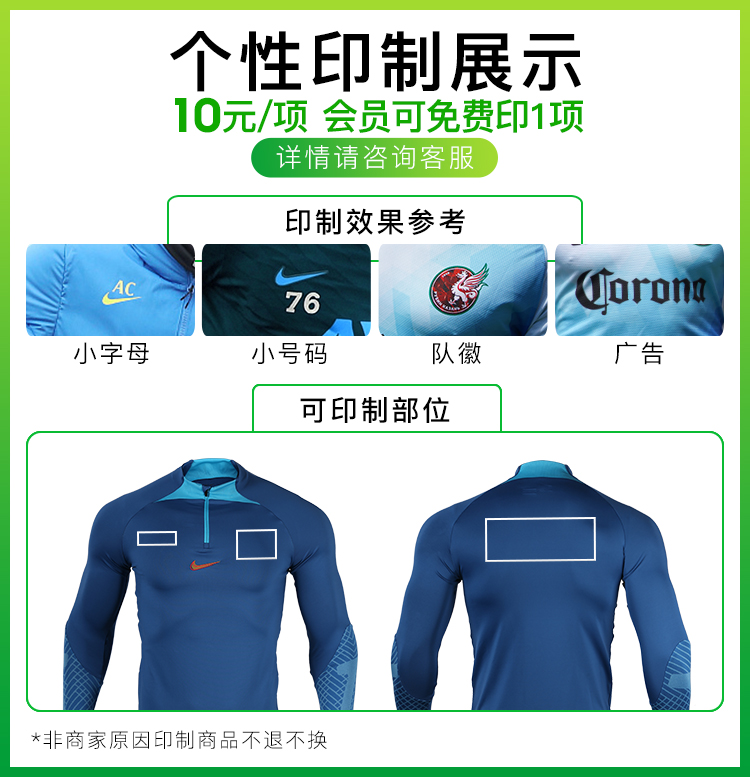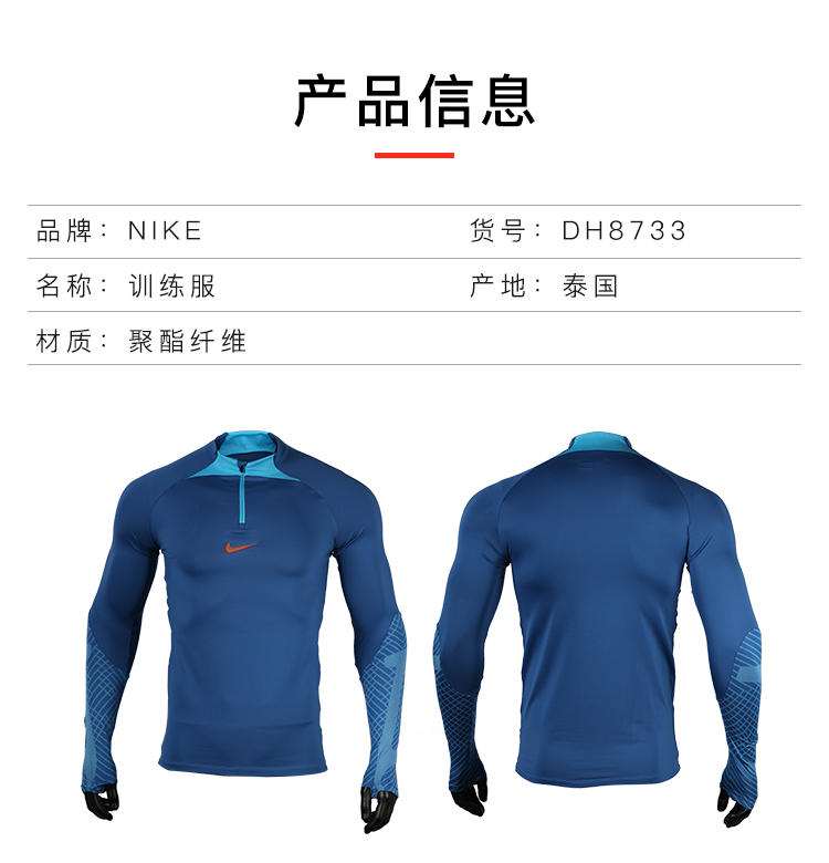 NIKE/耐克足球光板半拉链长袖套头训练服成人男DH8733407