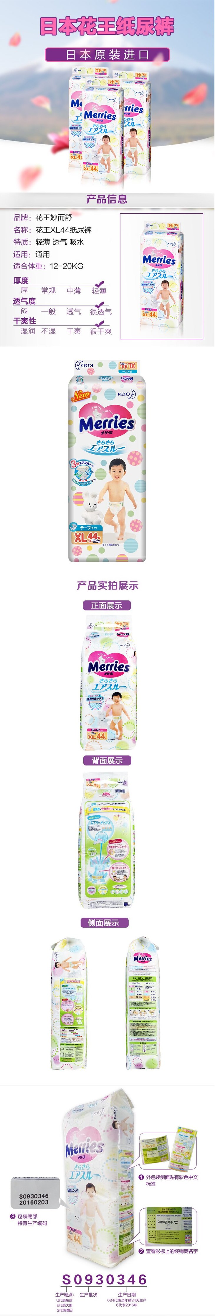 4包装|【中文标】日本花王彩标纸尿裤XL44(原箱)