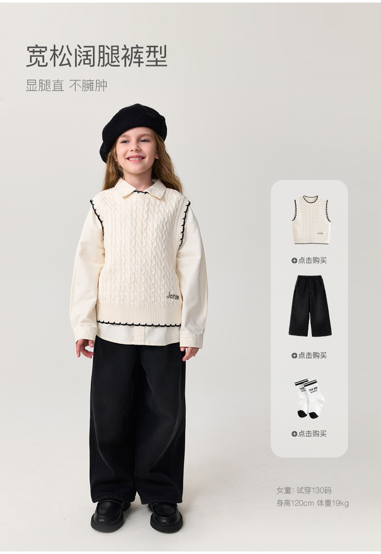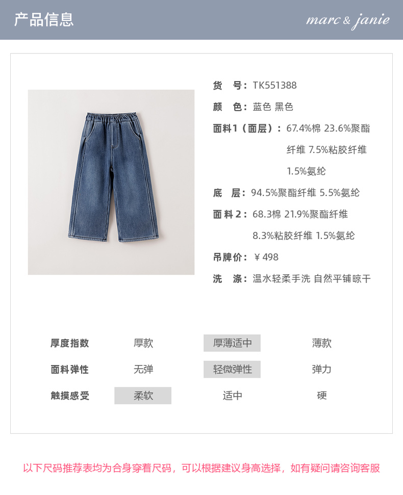 马克珍妮女童加绒加暖阔腿牛仔裤2025年秋冬新款551388