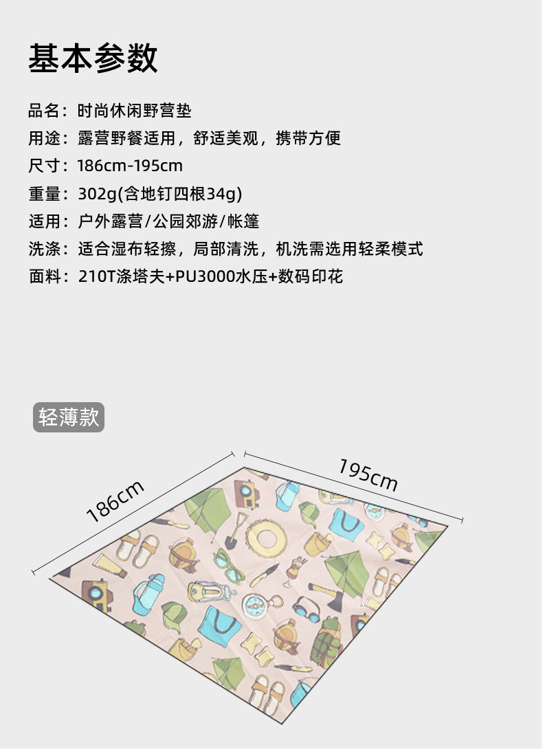 汉道野营地垫露营户外便携防水野餐垫野外地垫(薄款)