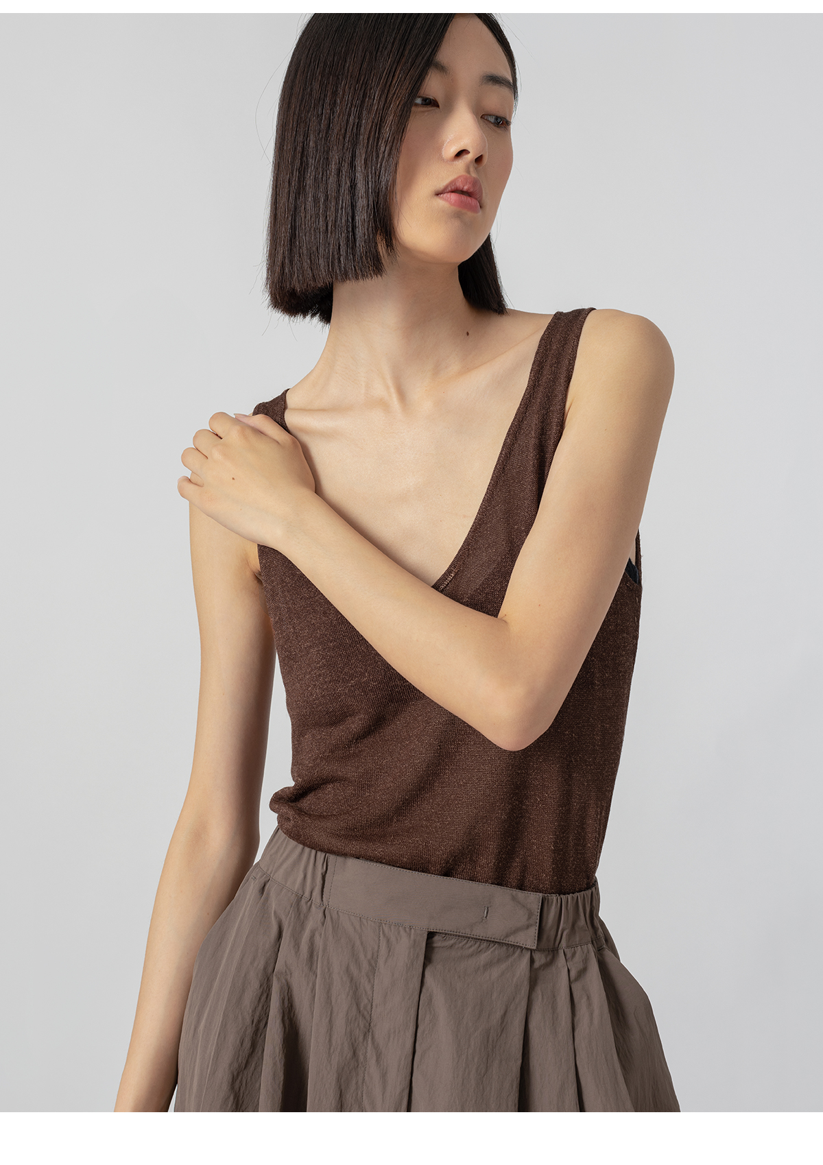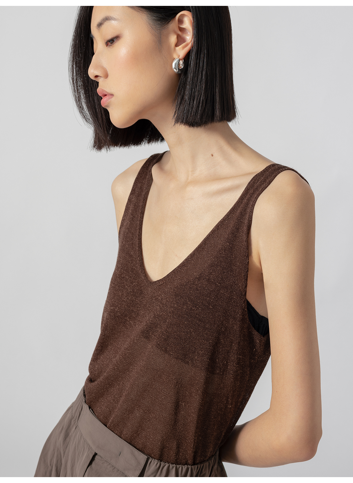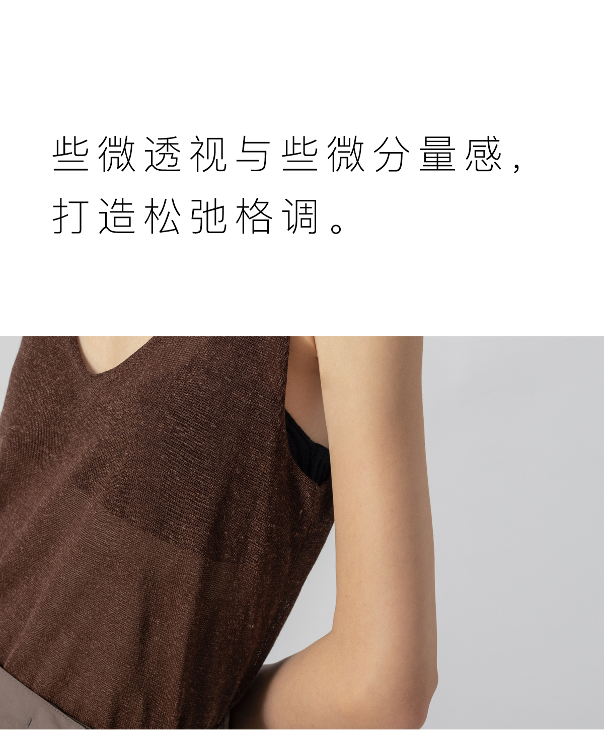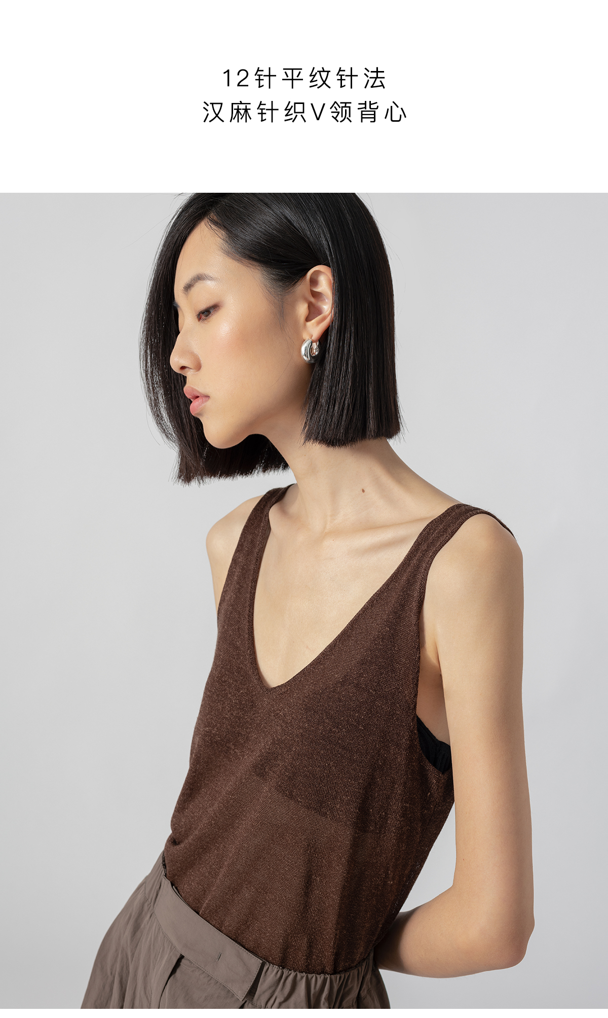 322工房经典再造汉麻针织V领背心2023春夏款百搭宽松无袖吊带B061