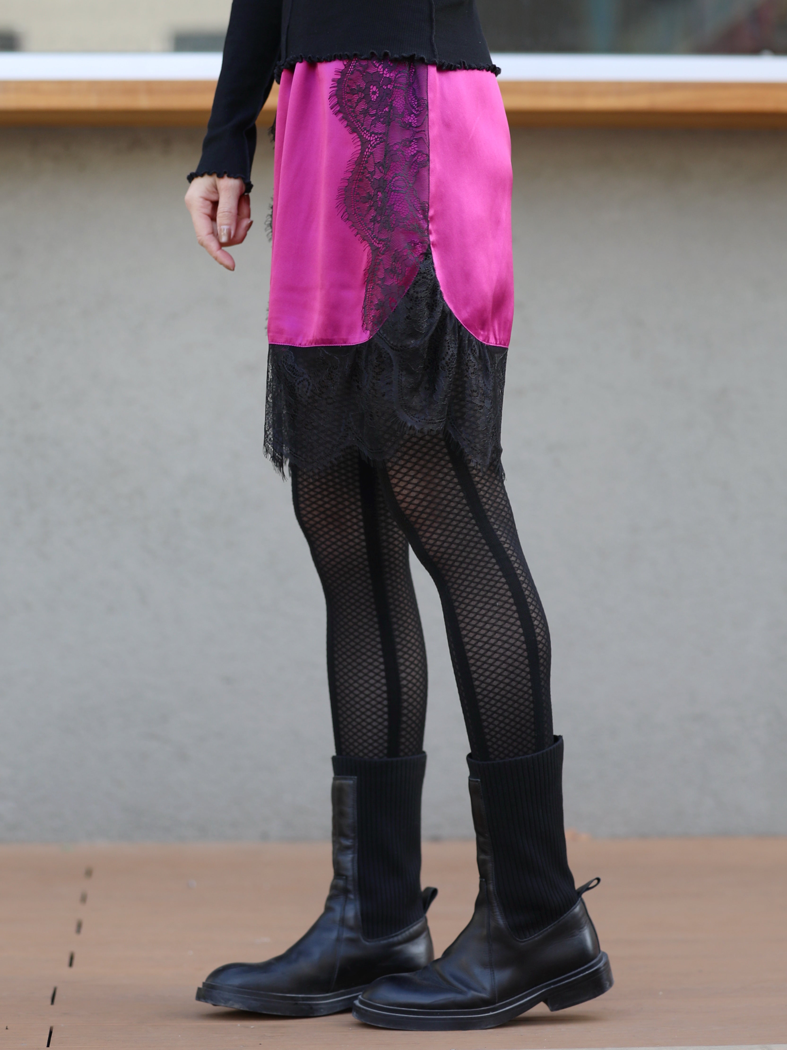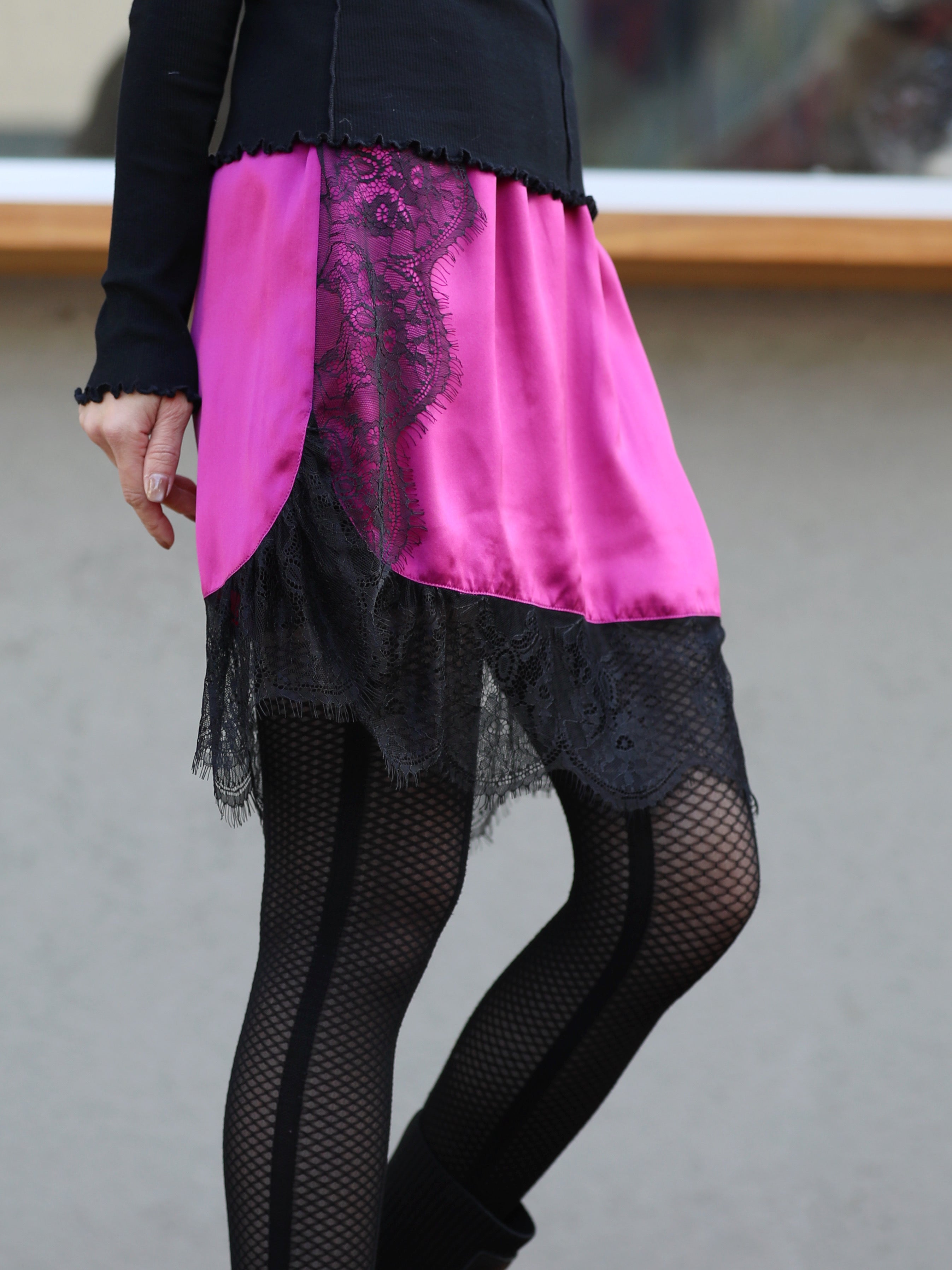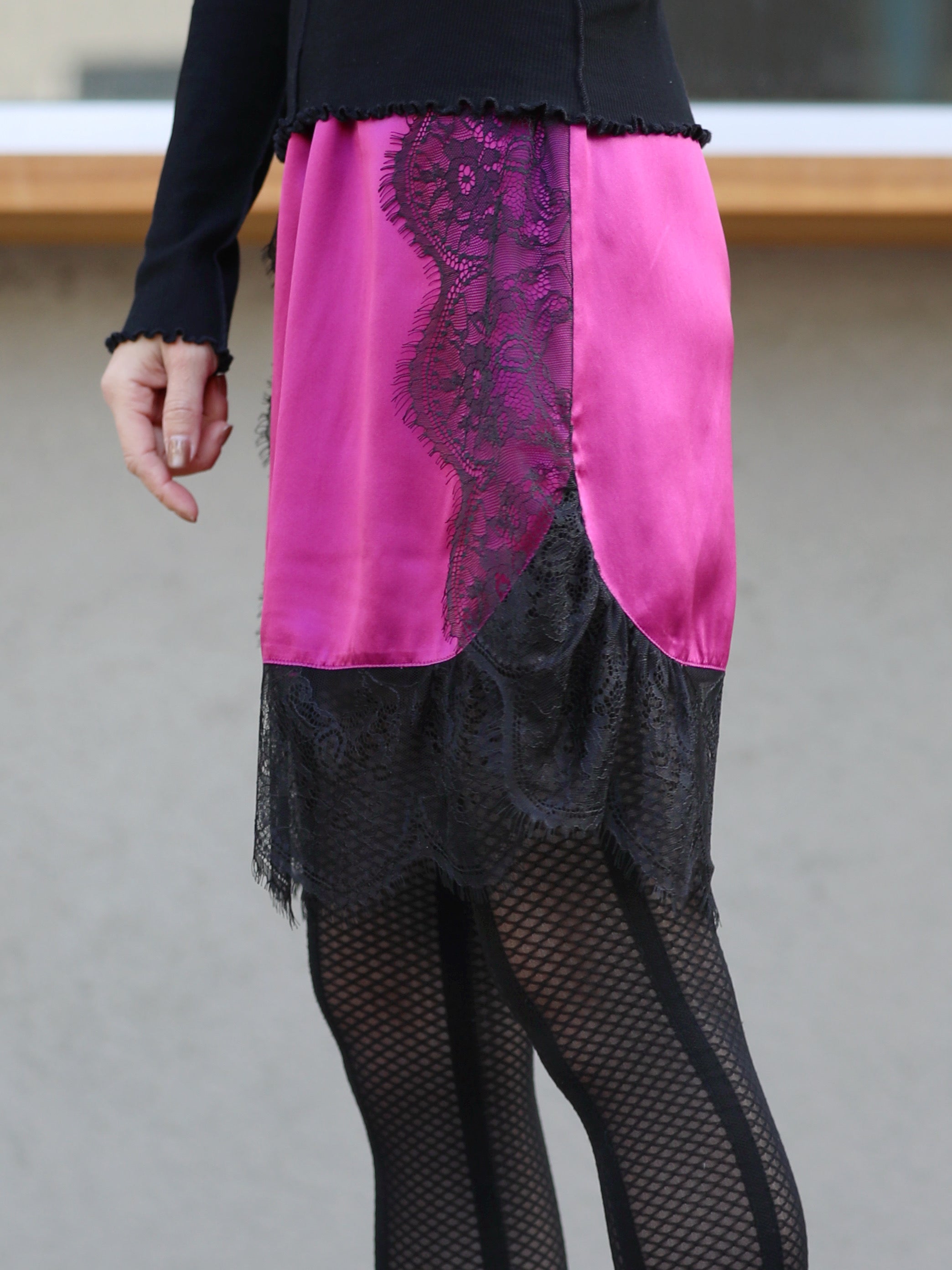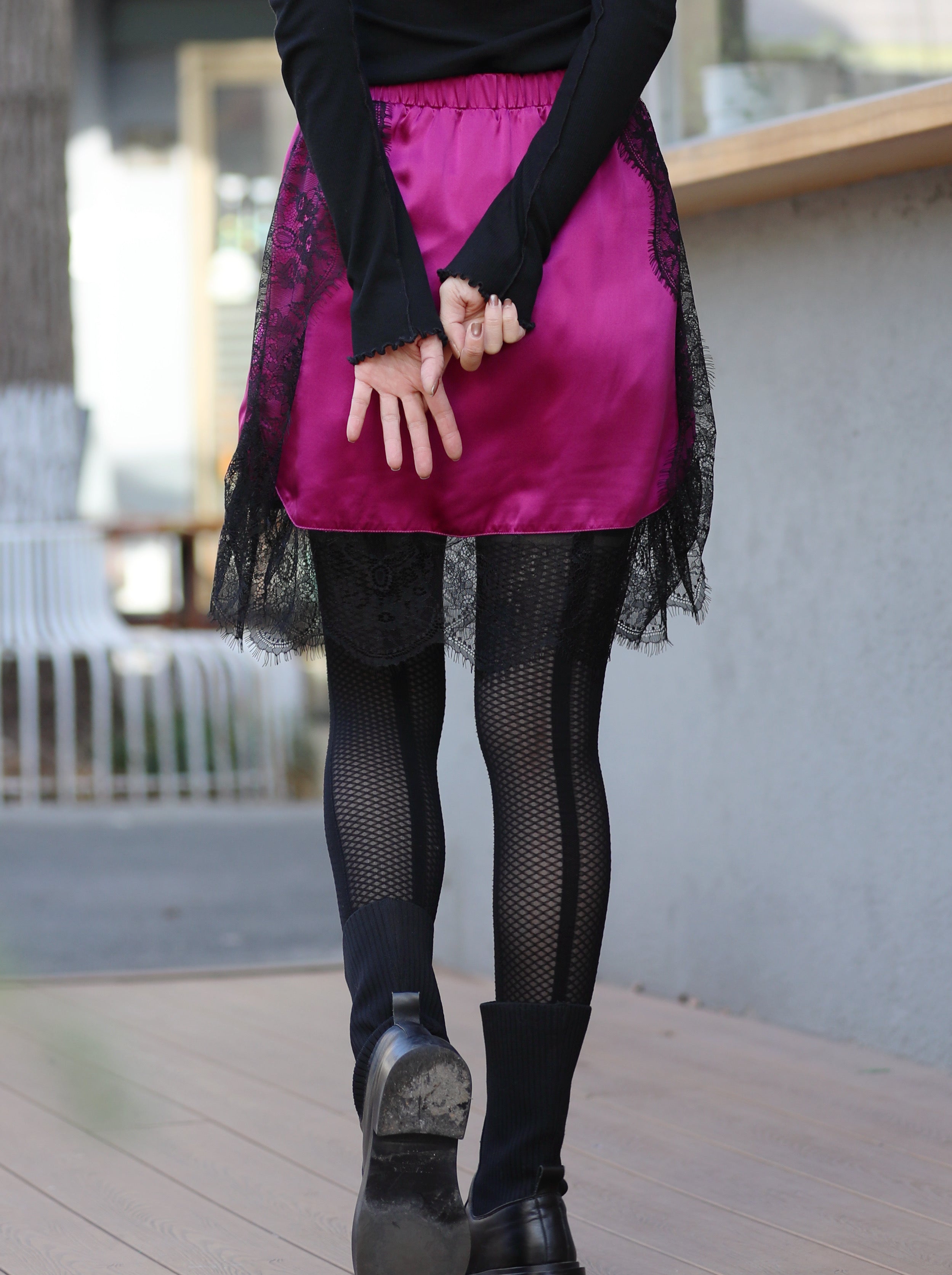 TYNVIE 缎面蕾丝边弹性束腰裙 - 紫红色