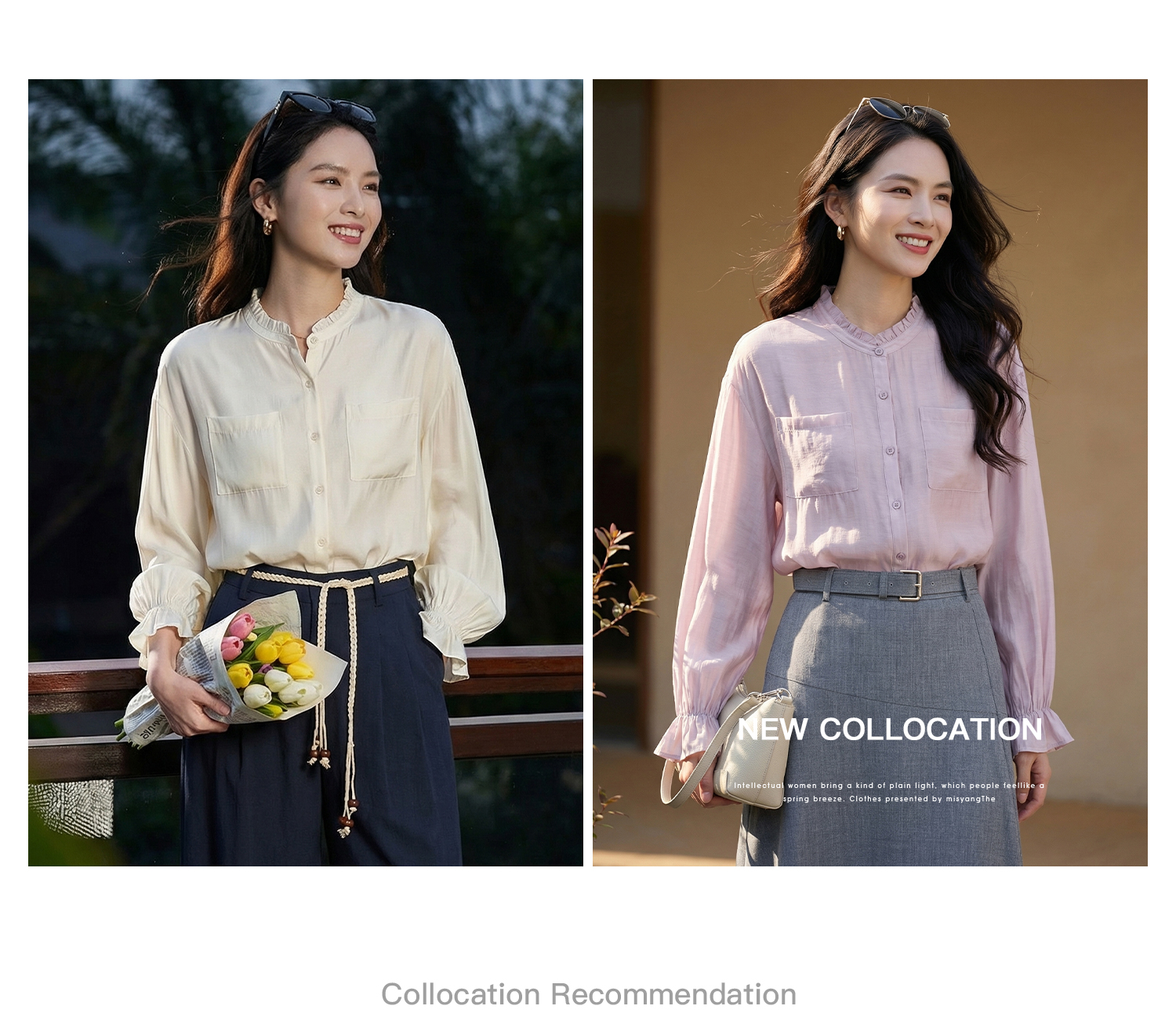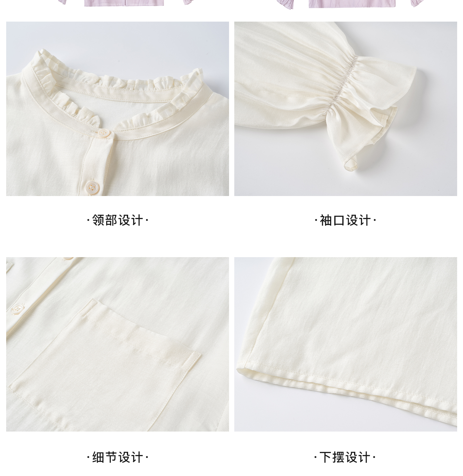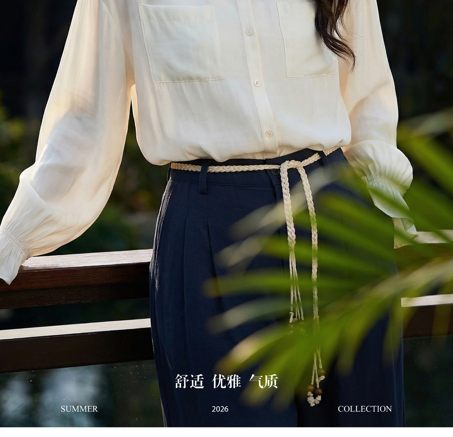 天丝亚麻真丝混纺防晒衬衫 米思阳2026春夏新款罩衫衬衣白色可外搭可单穿衬衫上衣女1181