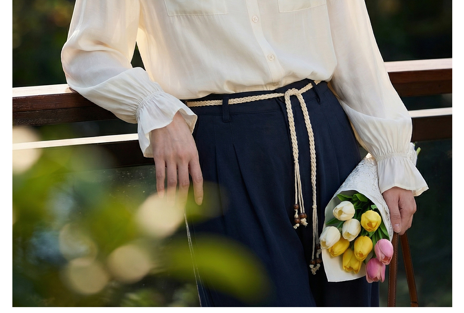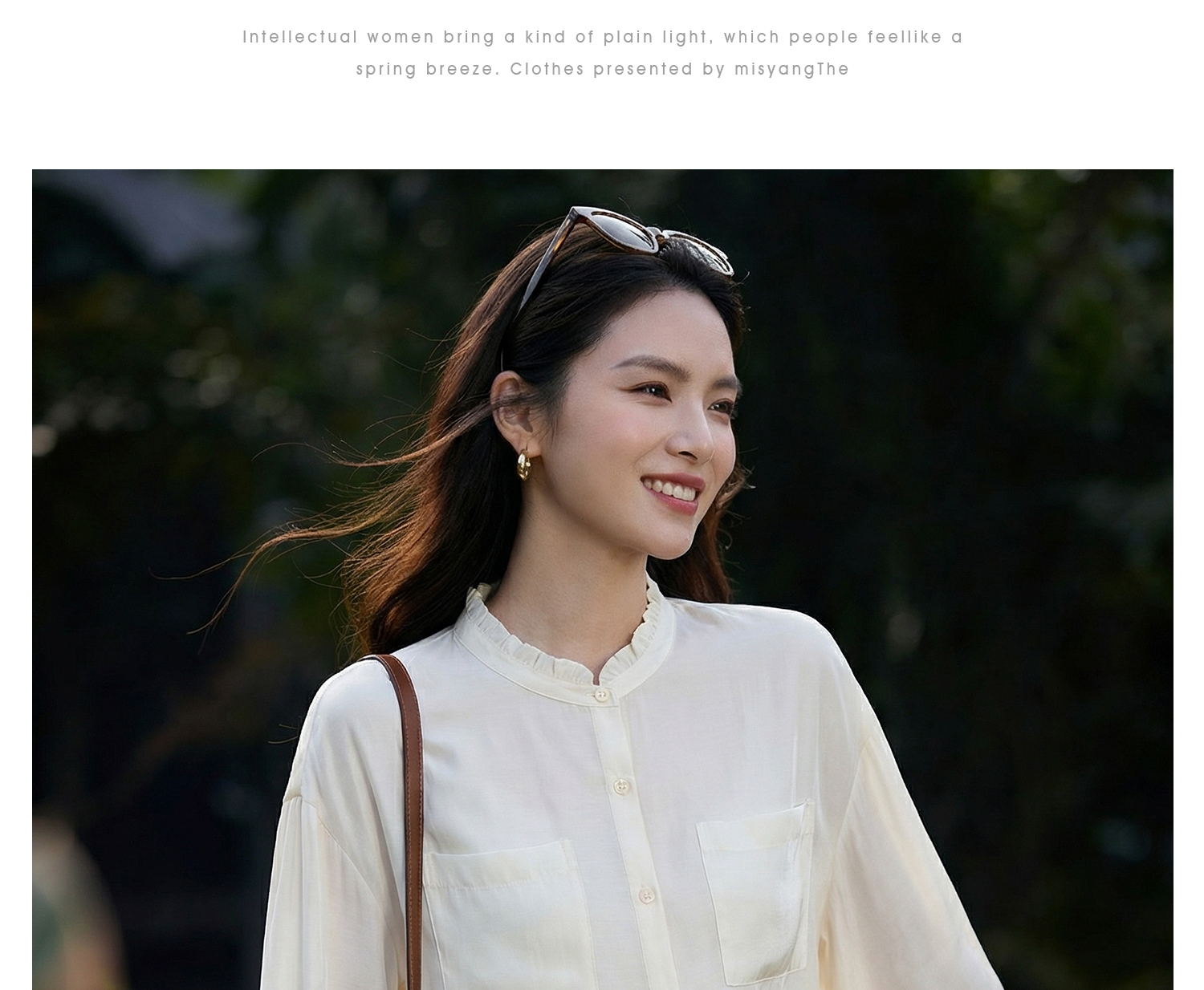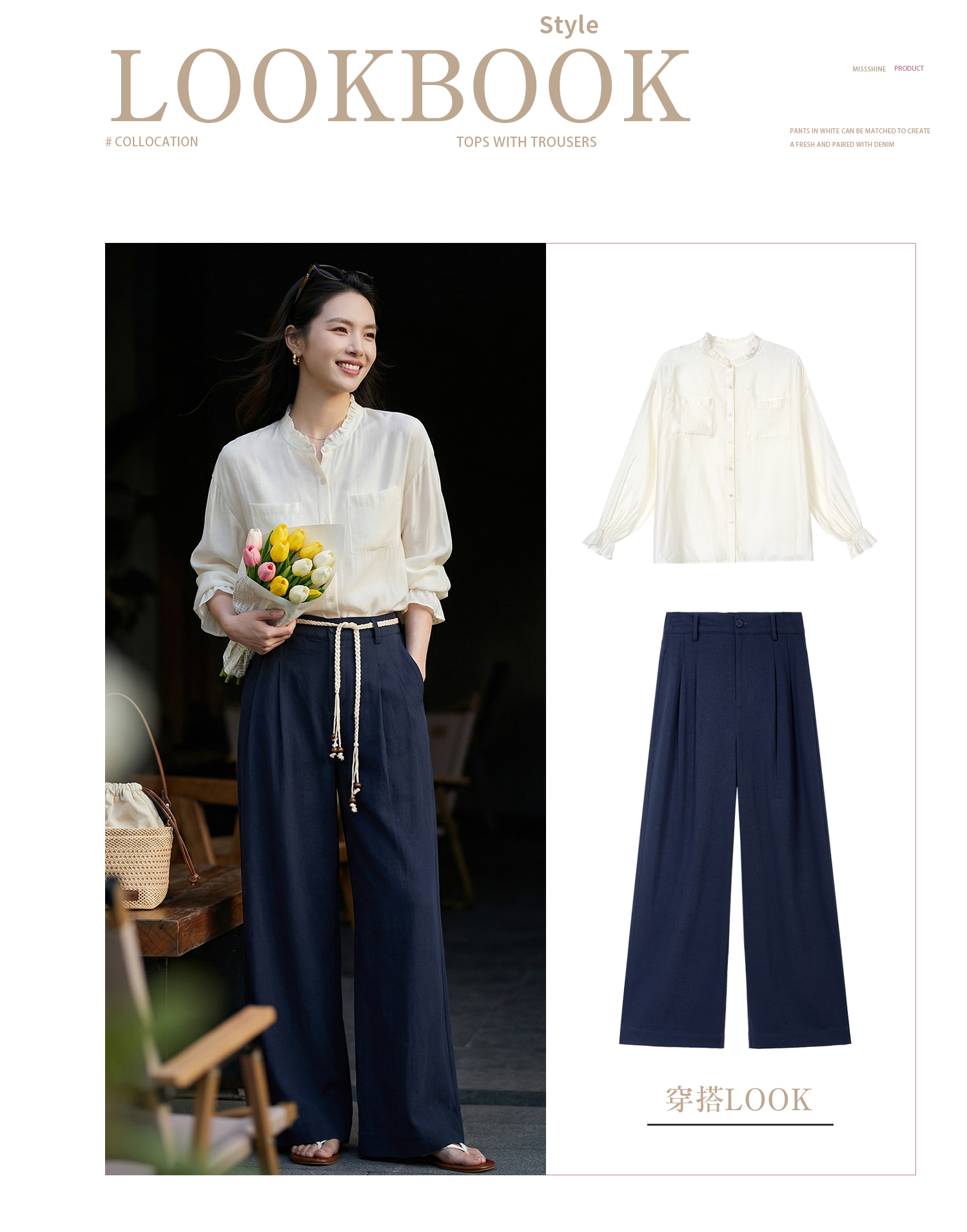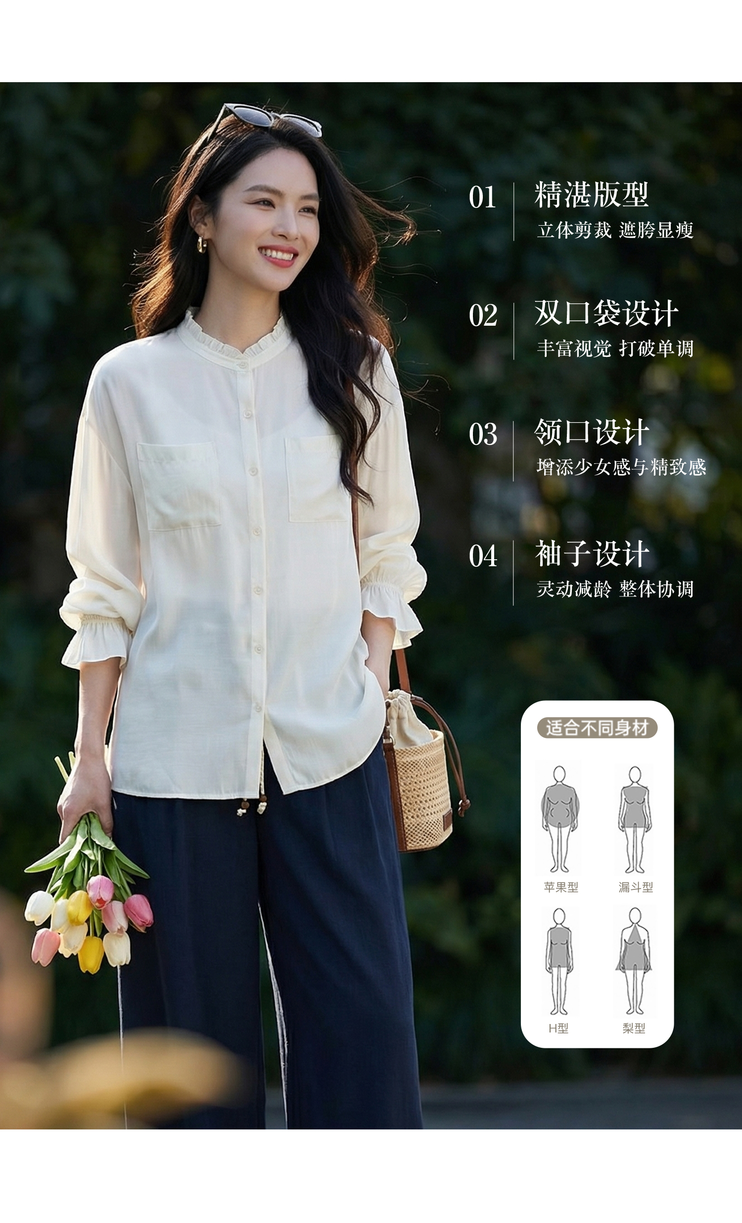 天丝亚麻真丝混纺防晒衬衫 米思阳2026春夏新款罩衫衬衣白色可外搭可单穿衬衫上衣女1181