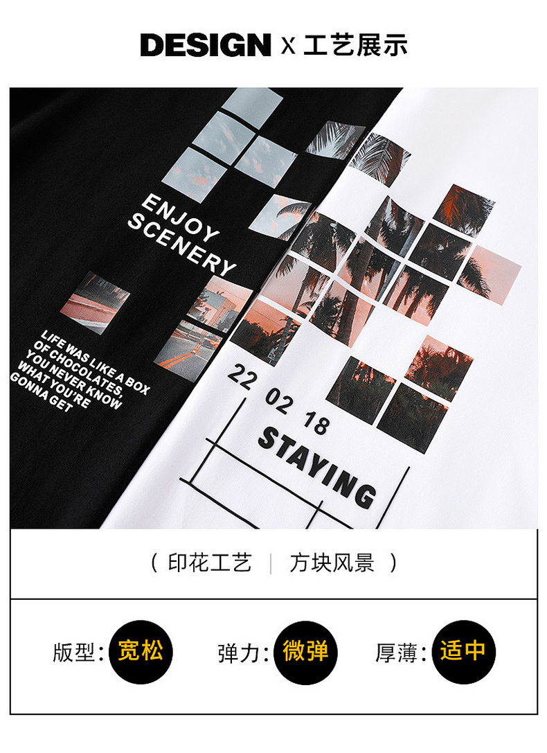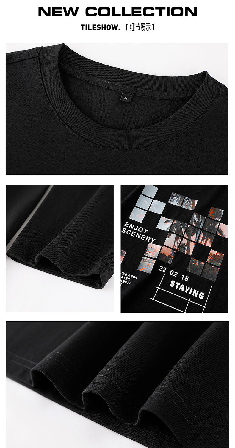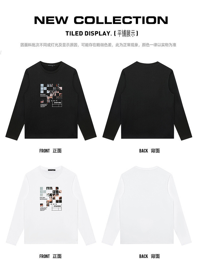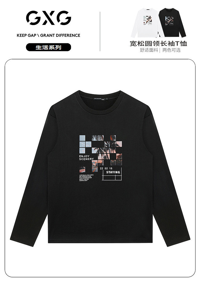 GXG男装【方块风景】秋季经典休闲款男士时尚百搭圆领t恤K&C