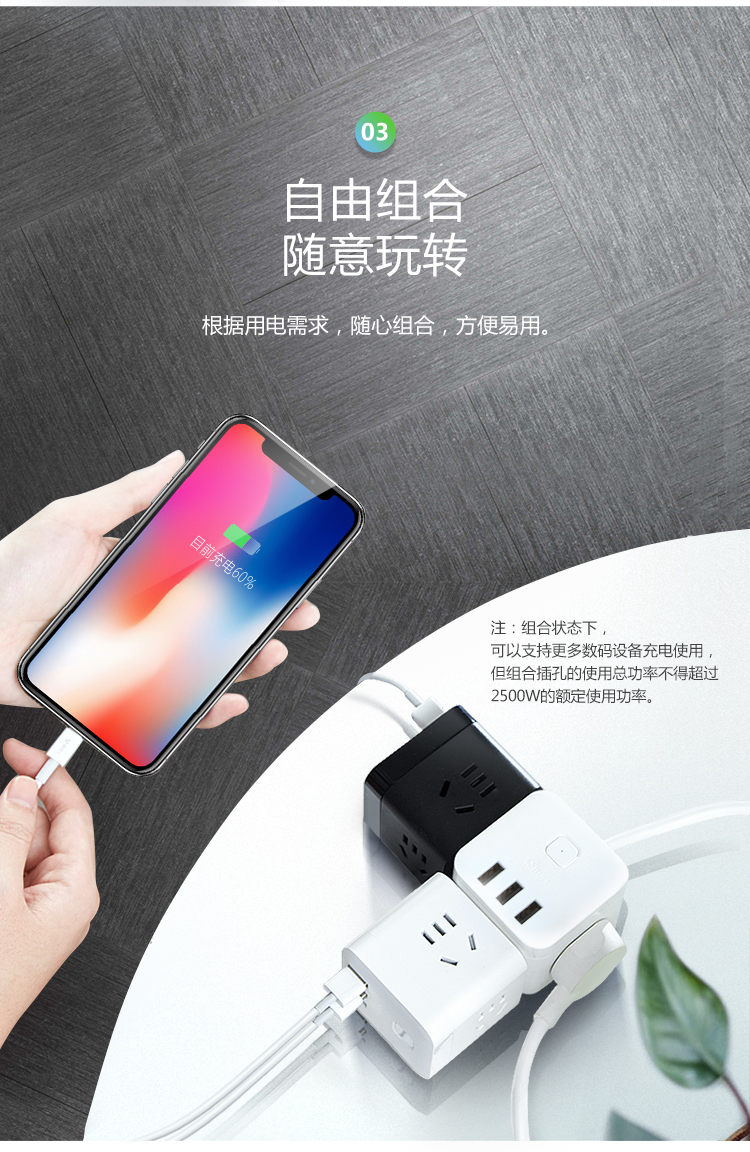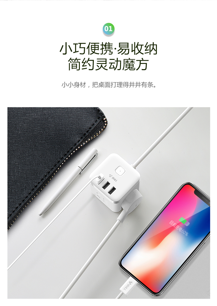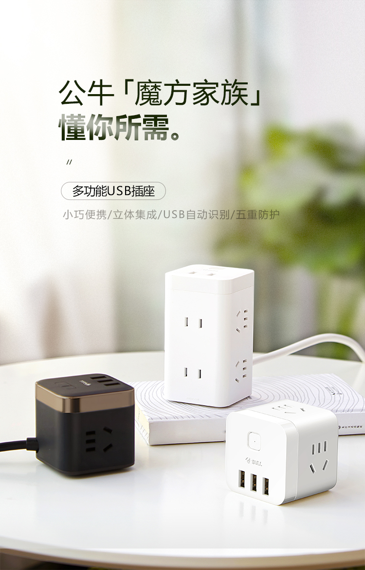 公牛(BULL) 魔方插座 插线板/插排/排插/接线板/拖线板 4插孔无线魔方插座 GNV-UEB04W