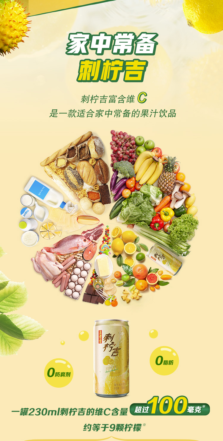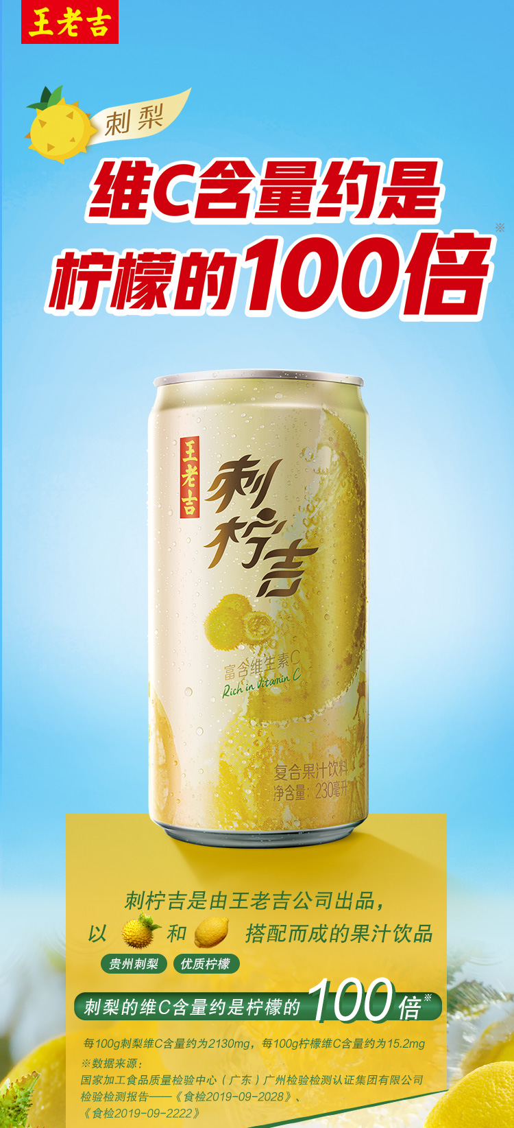 王老吉刺柠吉复合果汁饮料富含维生素C 230ml*12罐整箱装企业团购