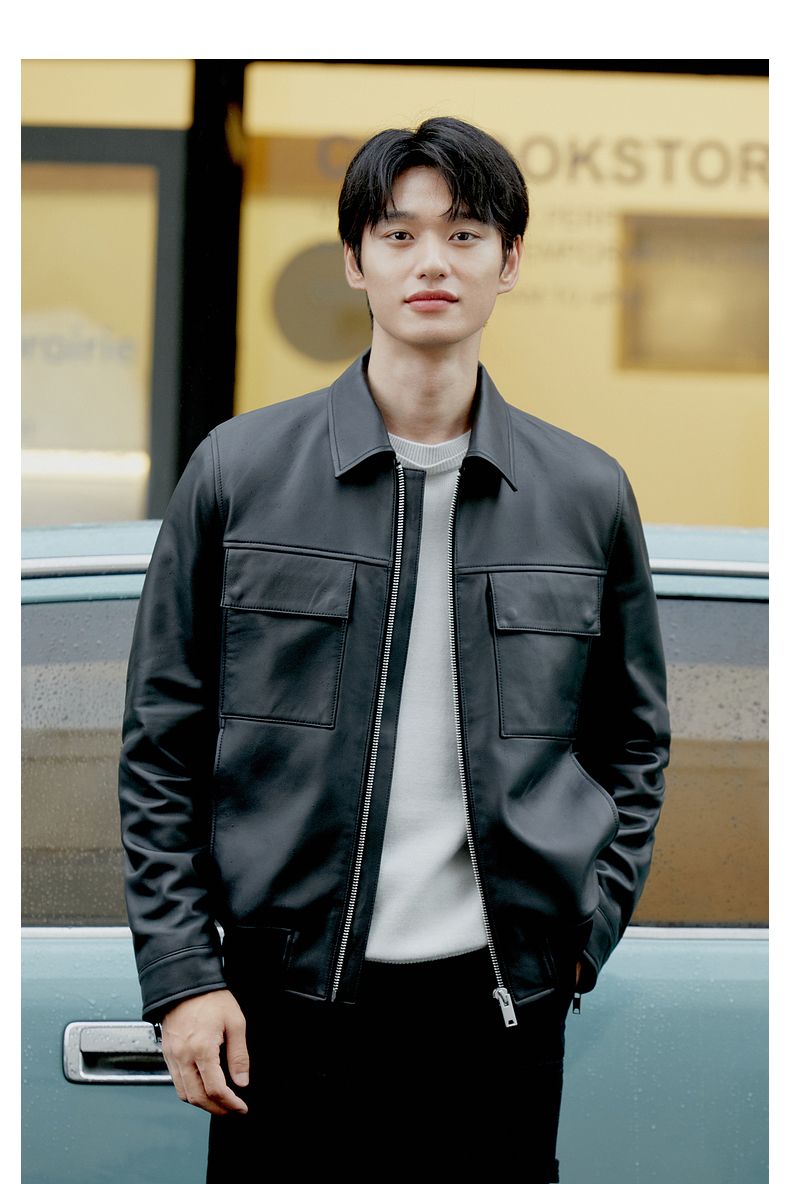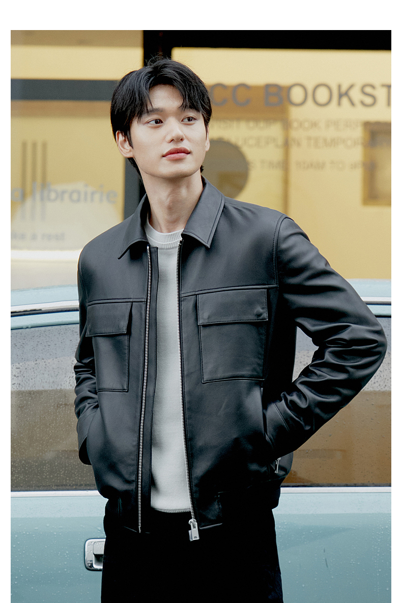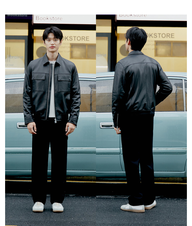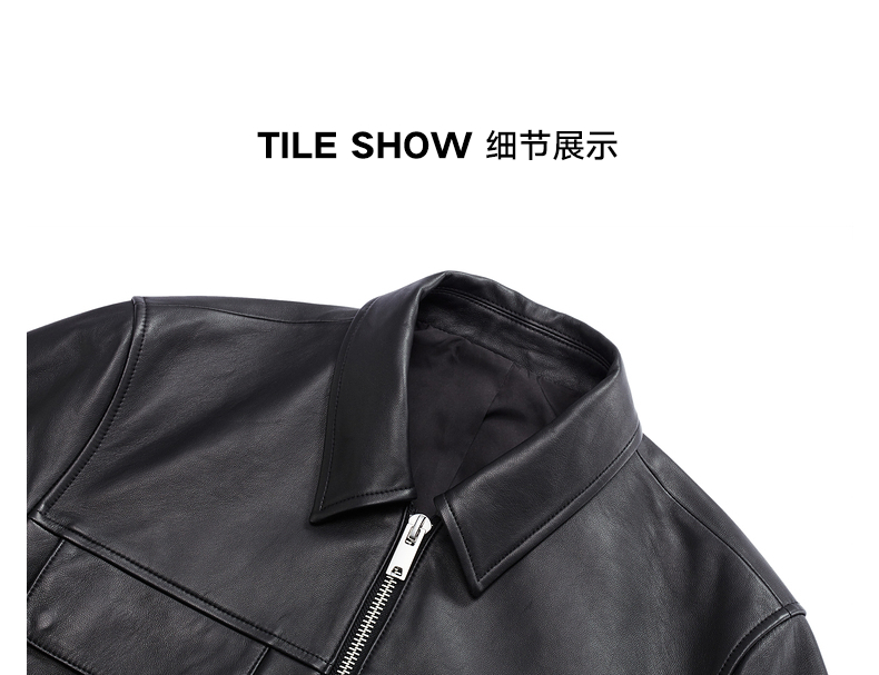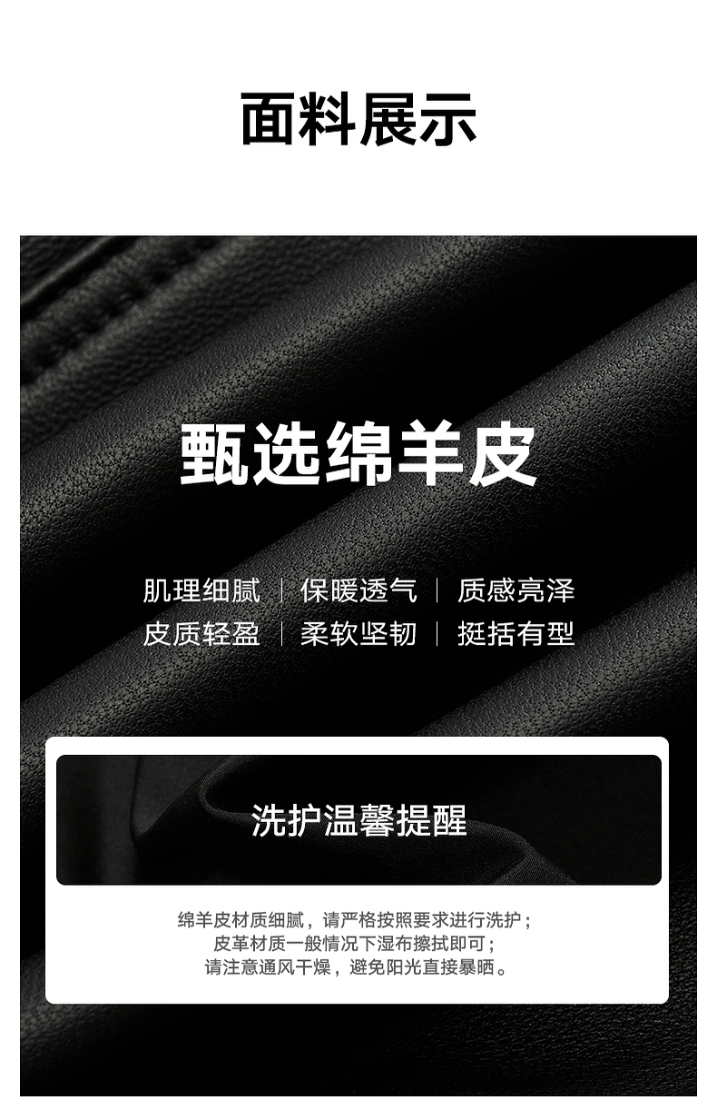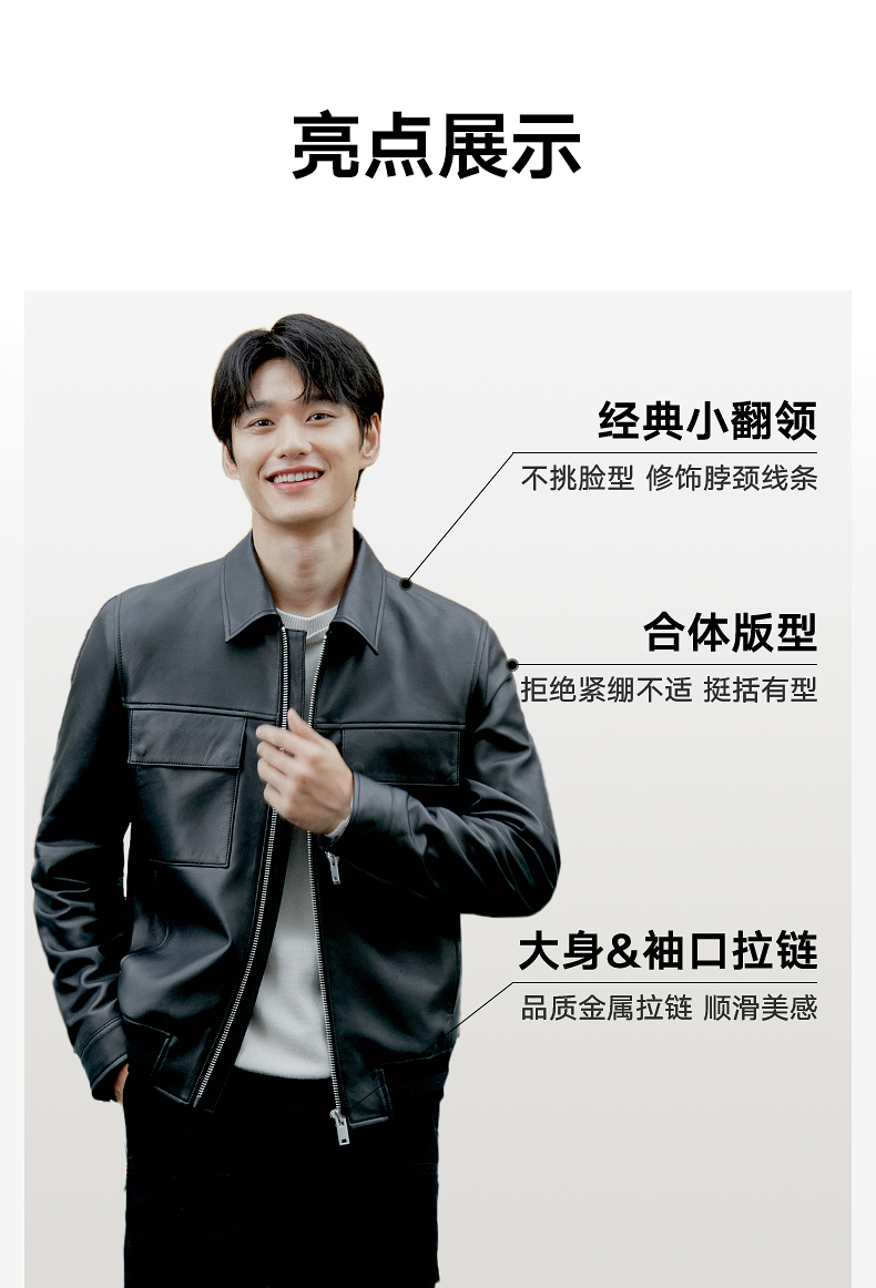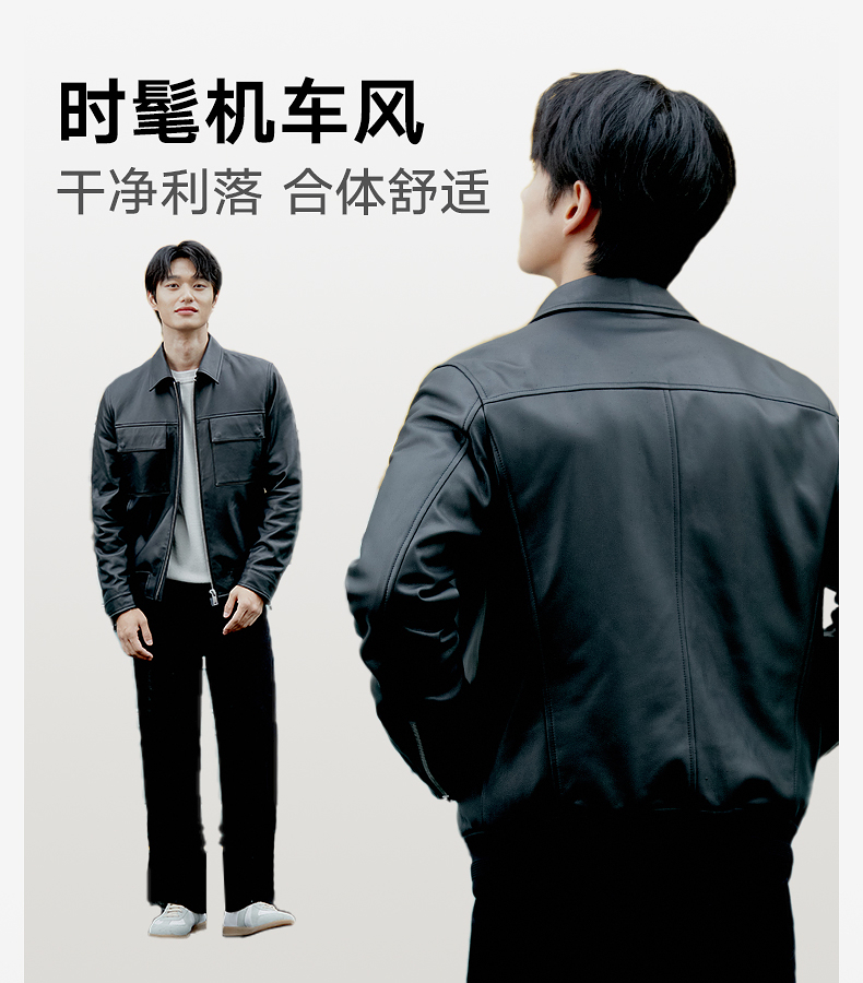 gxg.jeans男装 皮衣夹克春秋季绵羊皮夹克黑色翻领外套男JED11208964