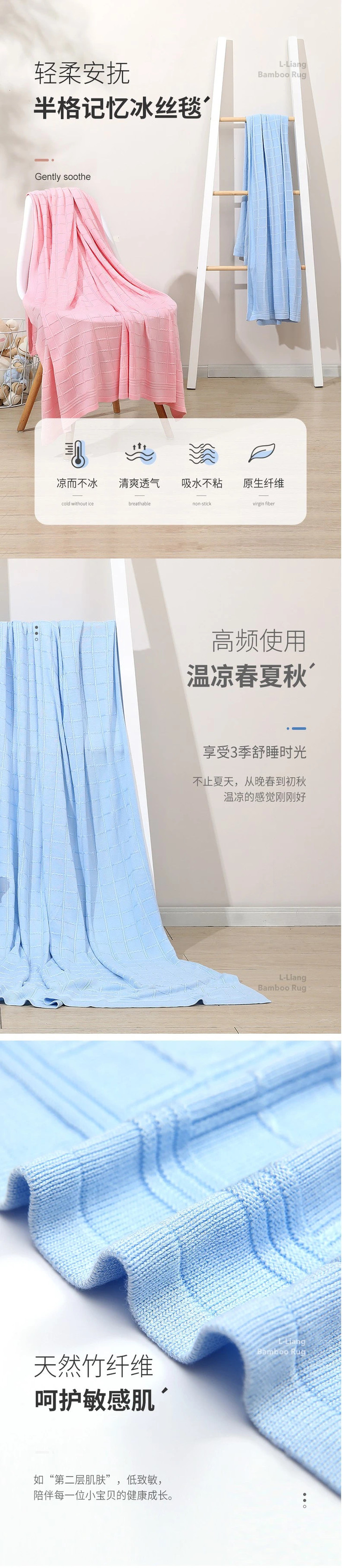 (超值)良良 2020新款半格记忆冰丝毯 蓝色/粉色款 125*115cm