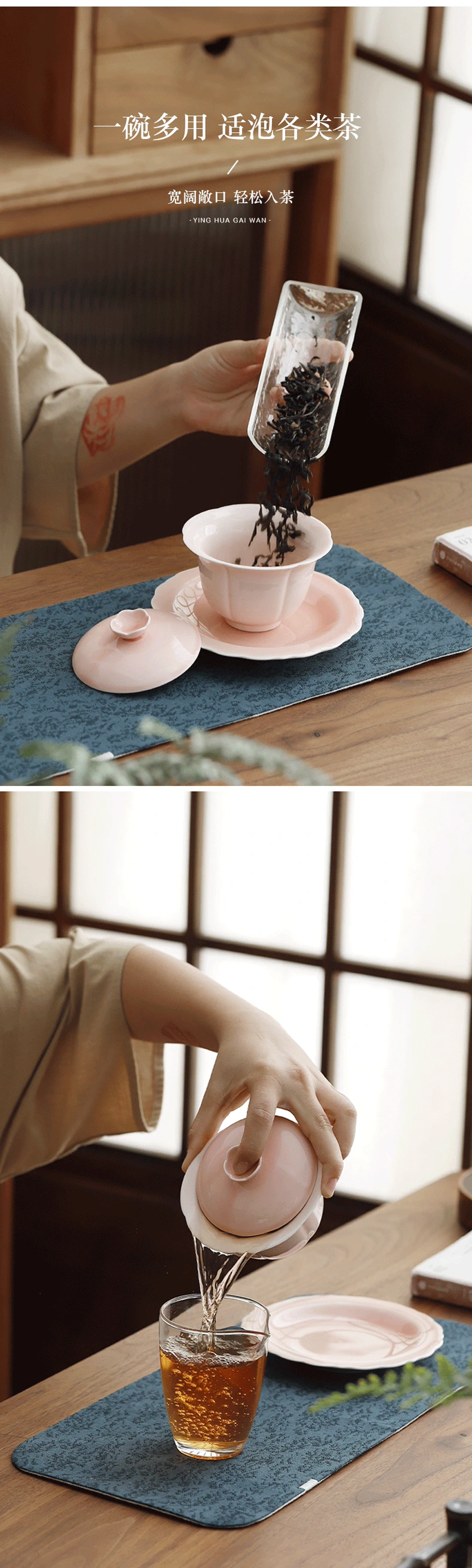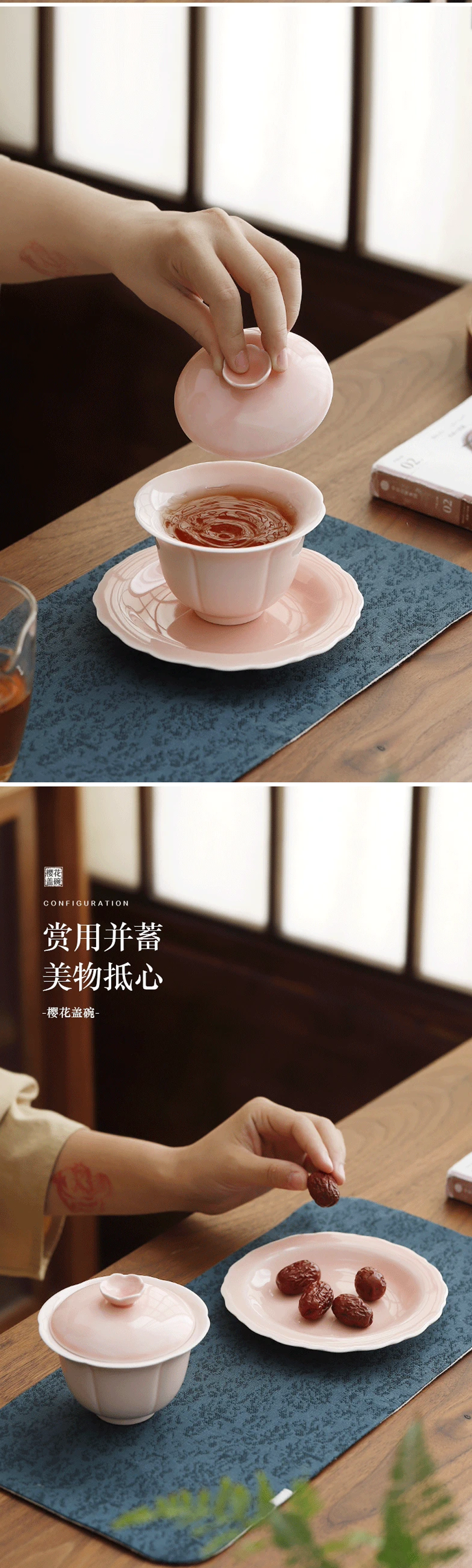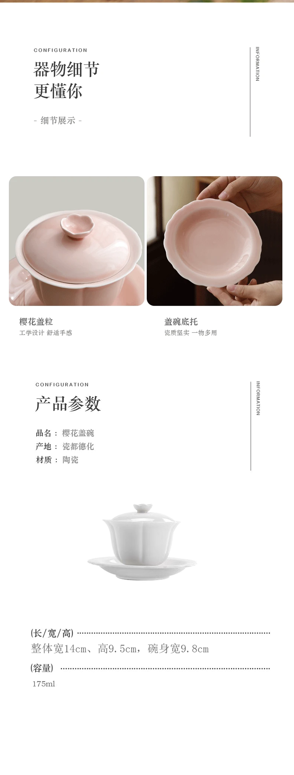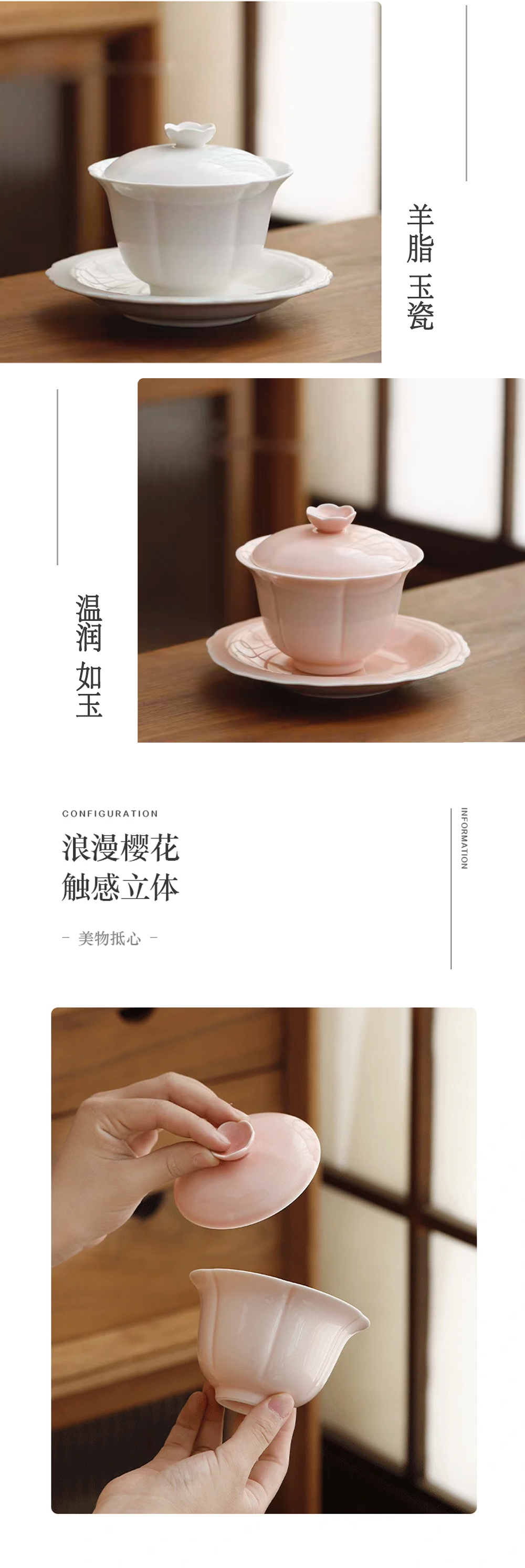 沁茶悦旅羊脂玉瓷樱花三才盖碗礼盒装
