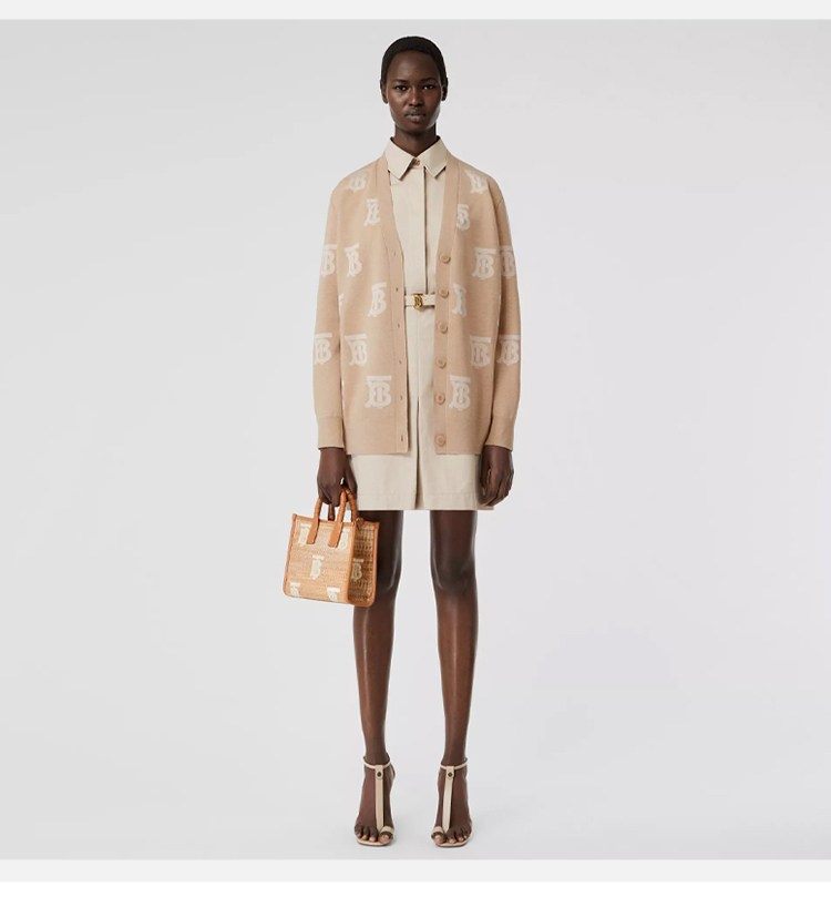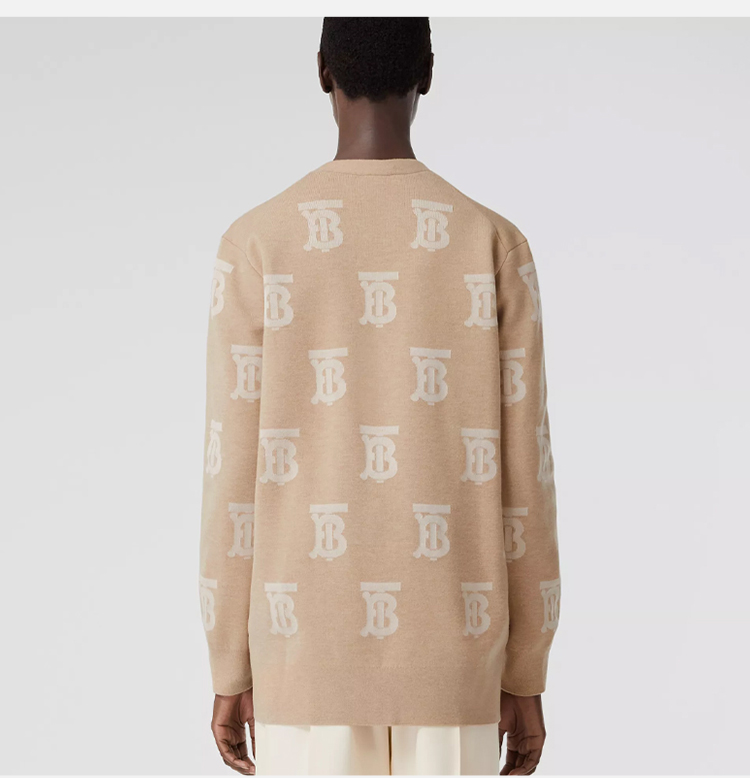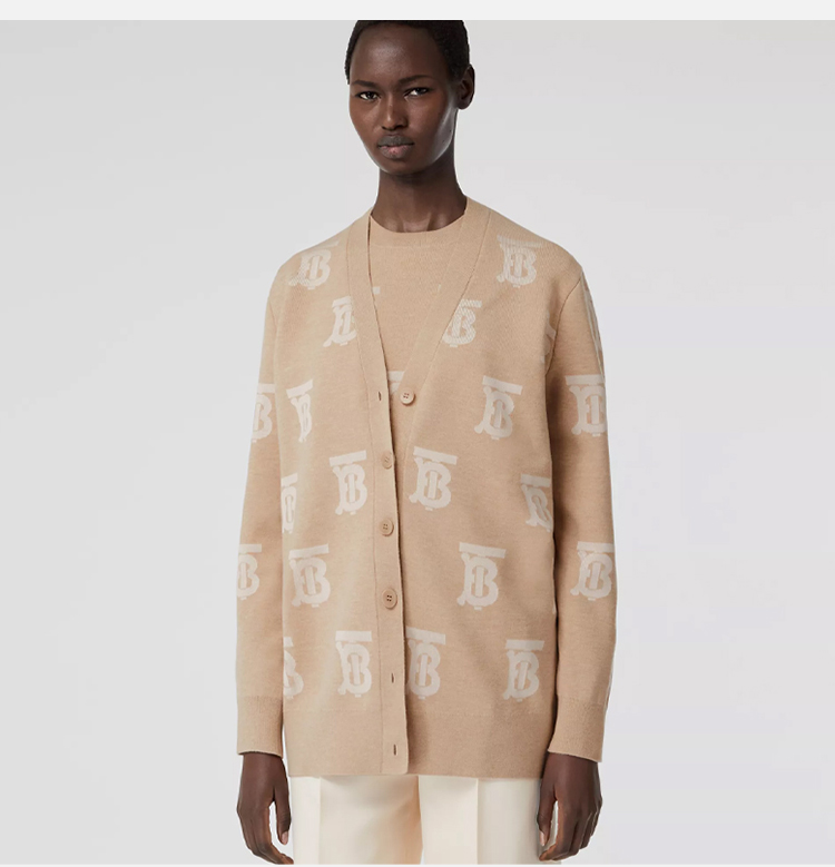 BURBERRY 巴宝莉 女士 Monogram TB专属标识羊毛真丝混纺大廓形针织开衫 卡其色 8052407 A1381