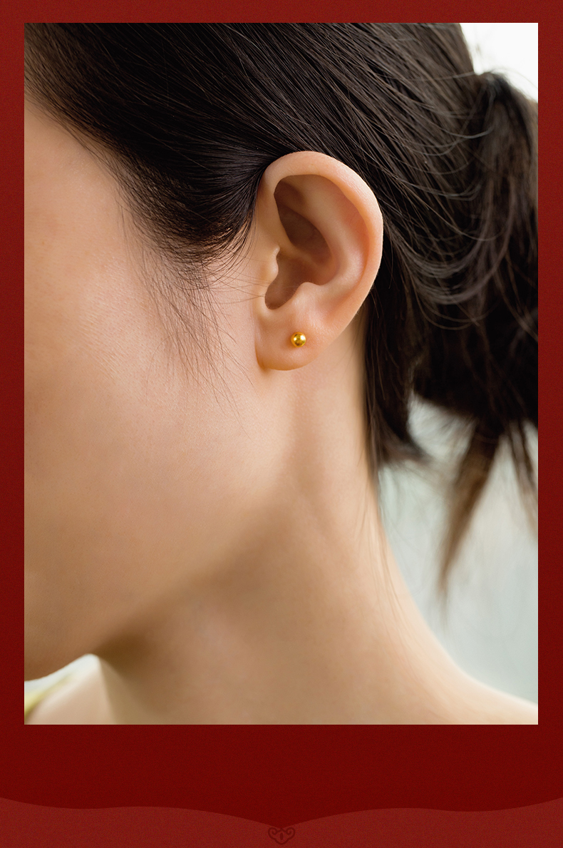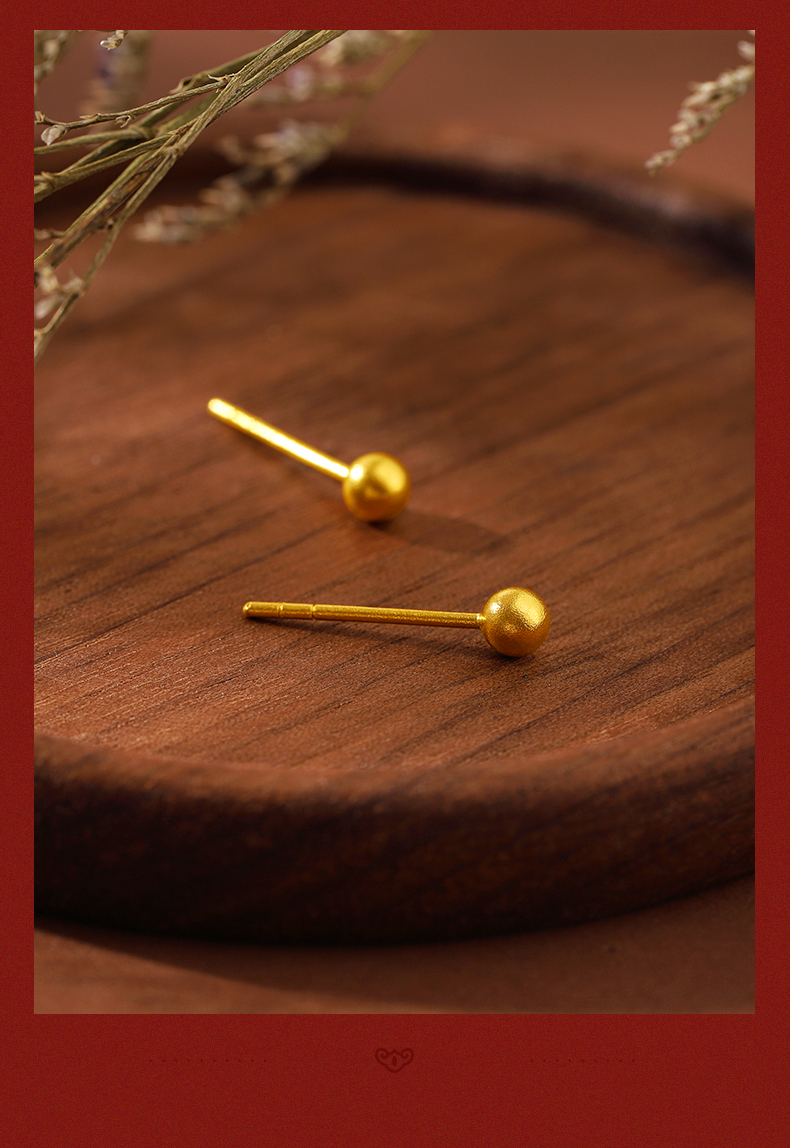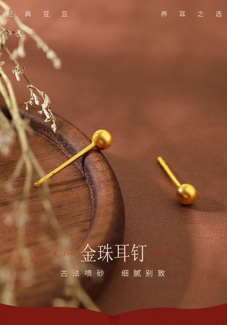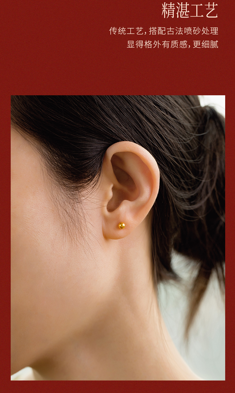 黄金耳钉女款古法足金圆珠养耳棒经典小金珠耳饰计价【按克计价黄金1】MEMORA诗普琳GEE01701(线上专供)