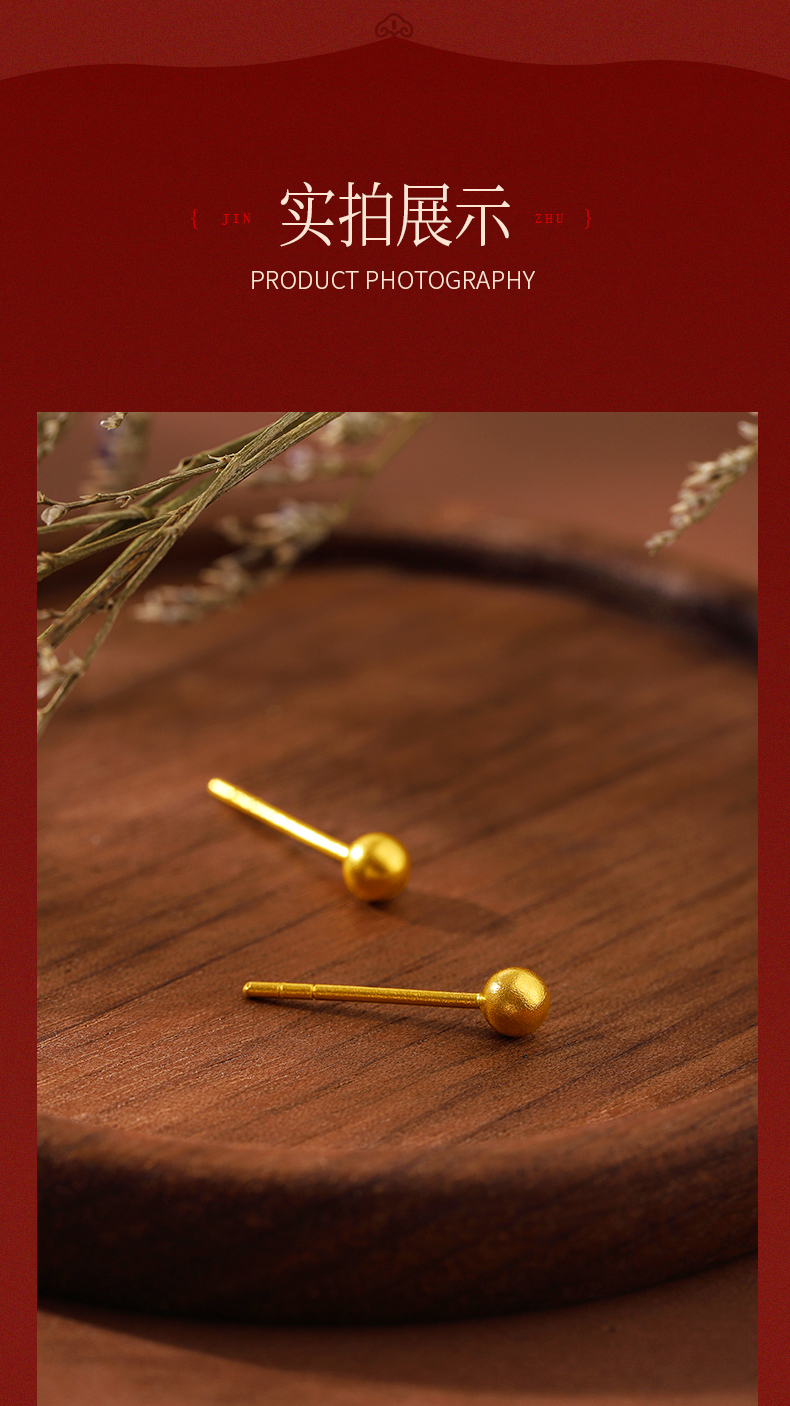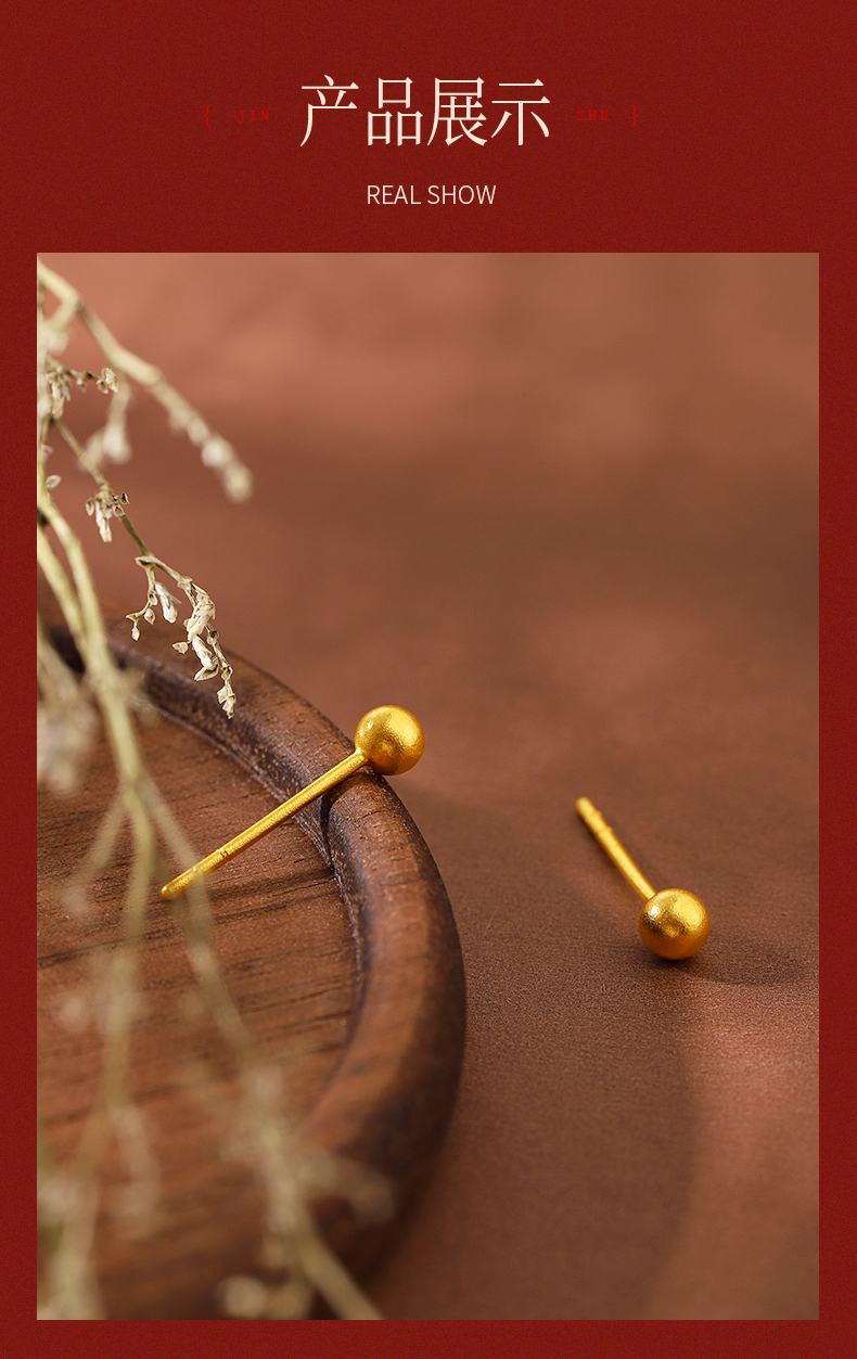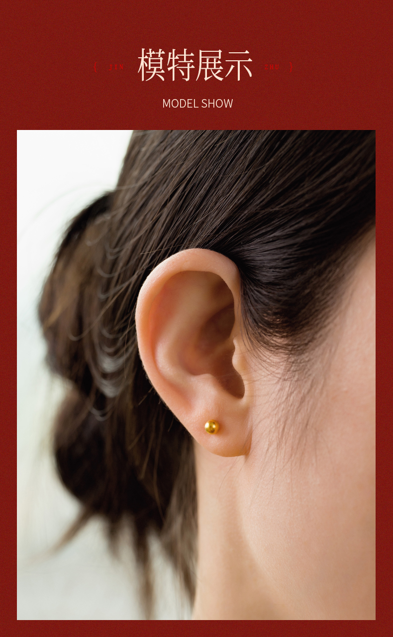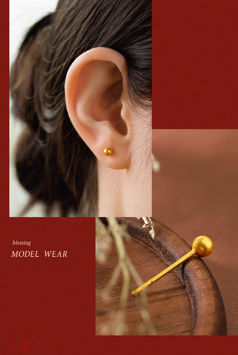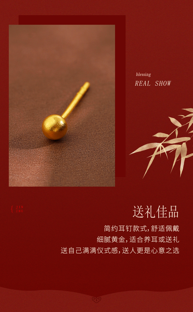黄金耳钉女款古法足金圆珠养耳棒经典小金珠耳饰计价【按克计价黄金1】MEMORA诗普琳GEE01701(线上专供)