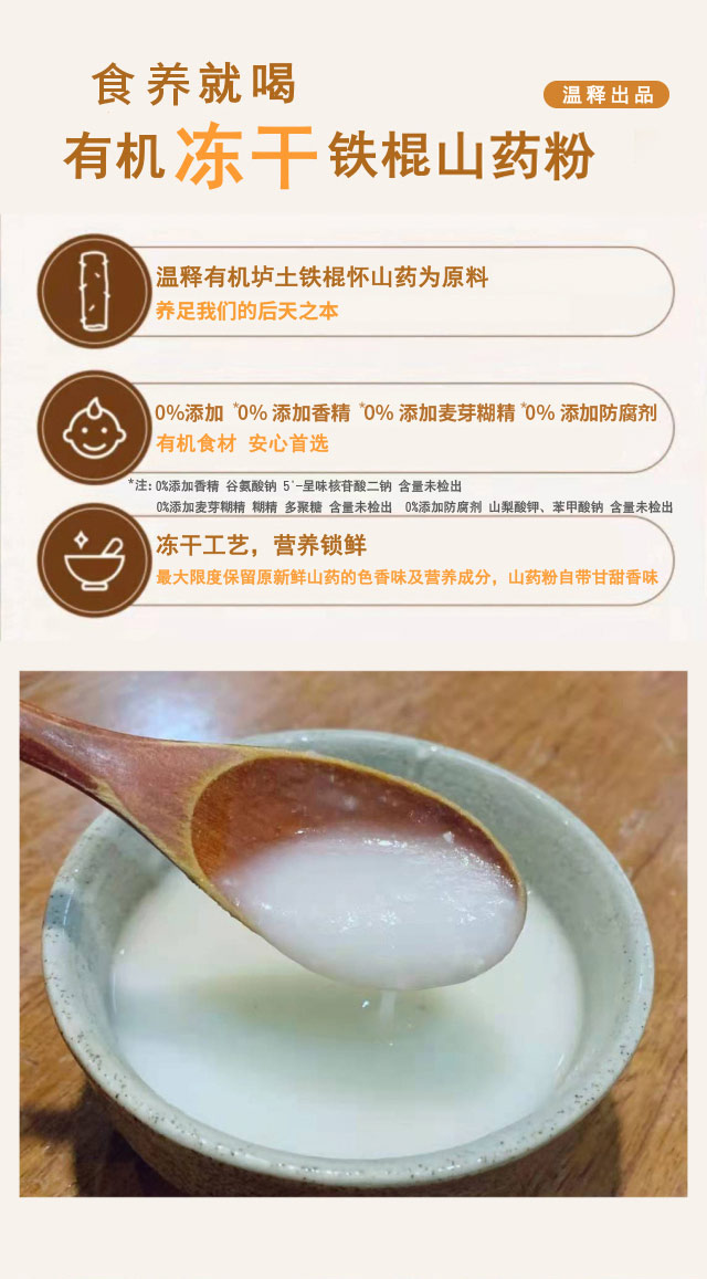 【有机冻干铁棍山药粉】温释自有有机种植基地 药食同源 养后天之本 中国双有机认证 道地食材 温养更可持续[漳州仓]